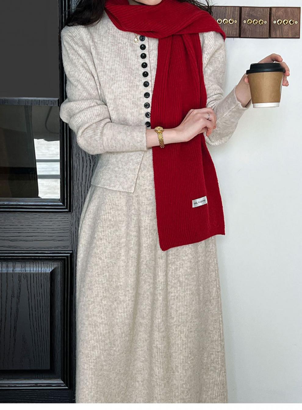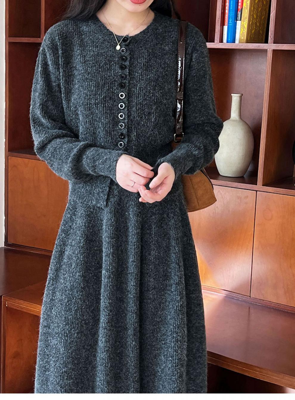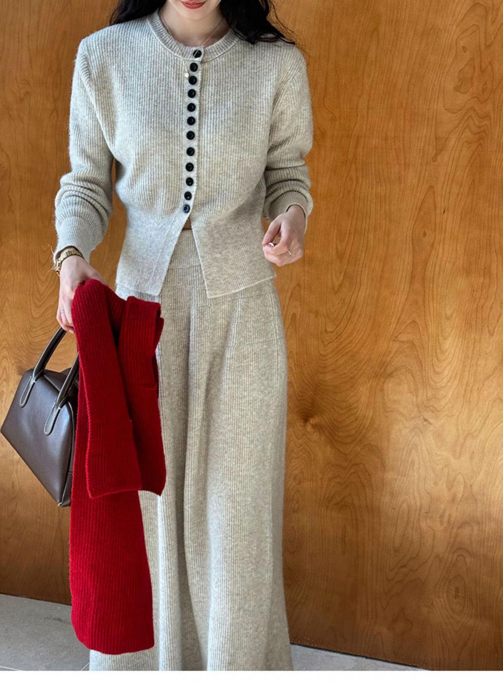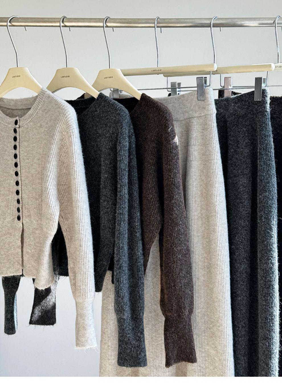 Falda de traje estilo coreano, cárdigan tipo suéter para mujer, falda de punto, atuendo elegante y femenino, conjunto de dos piezas atrevido 2024