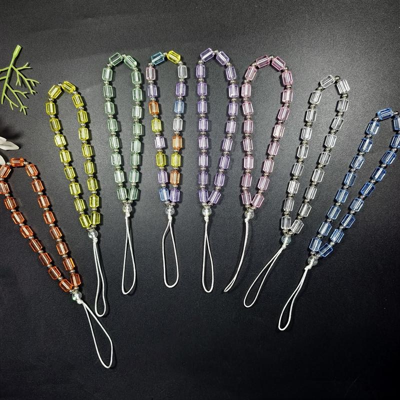 Cordón para teléfono móvil con cuentas verdes secas, hecho a mano, para funda de móvil, llavero antipérdida con cuentas