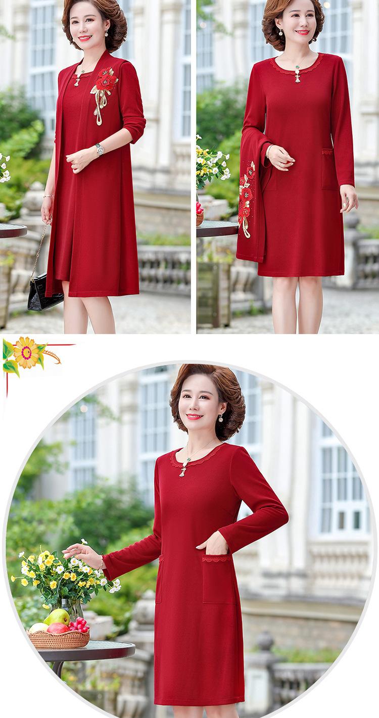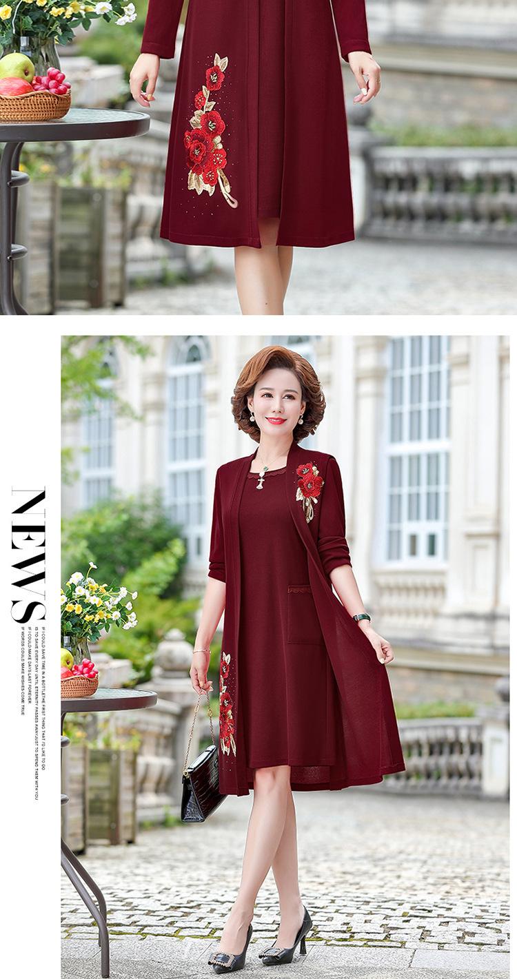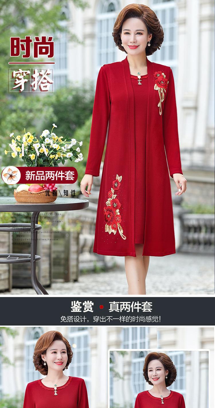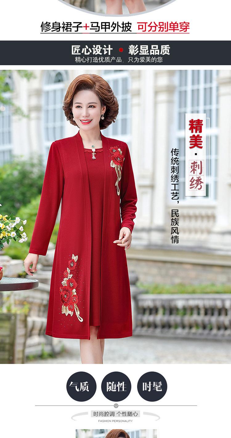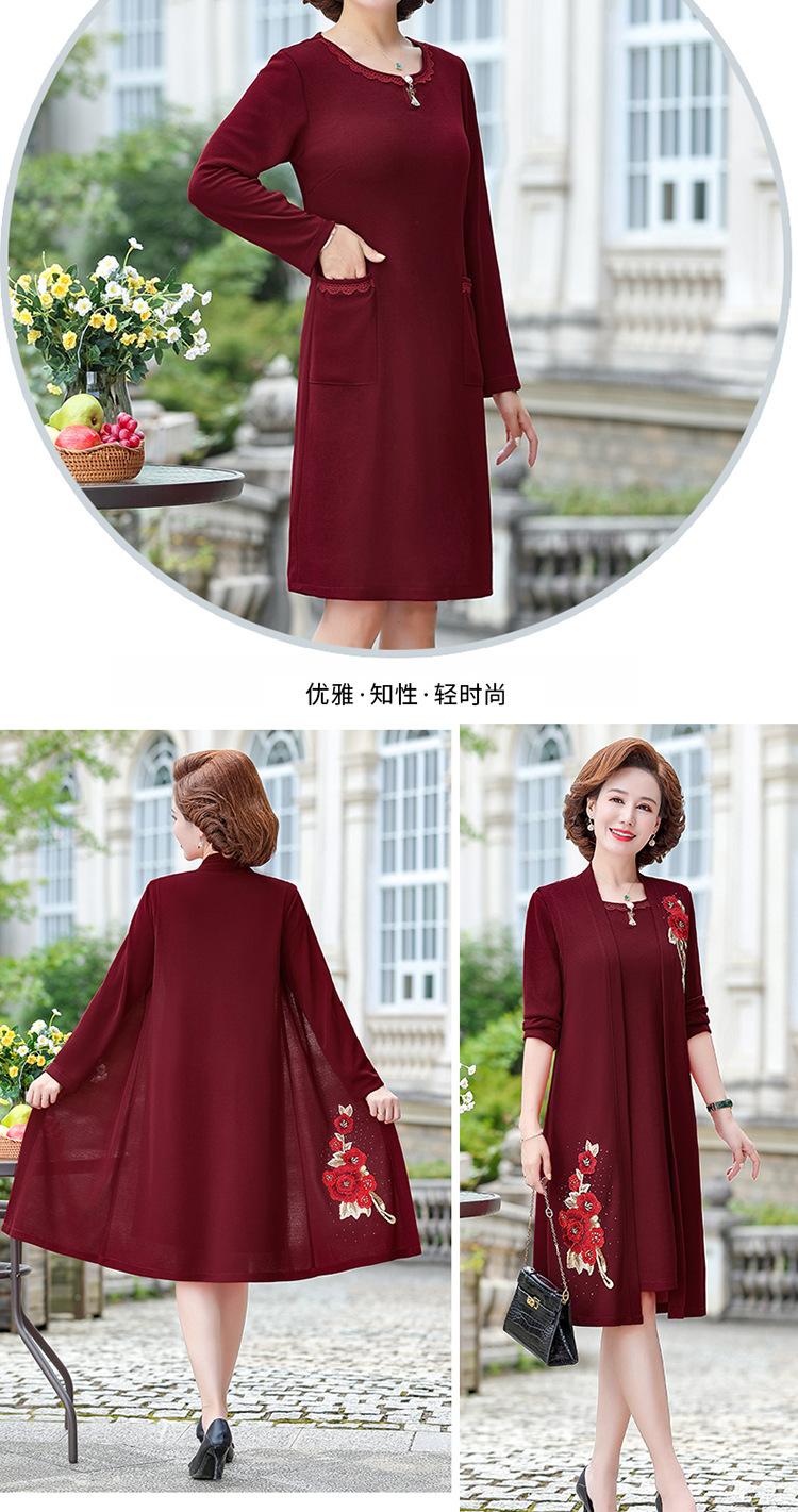 Ropa Nueva para Mujeres de Mediana Edad y Mayores 4050 Vestido Interior de Manga Larga Bordado Exterior Set de Dos Piezas de Primavera y Otoño para Madre
