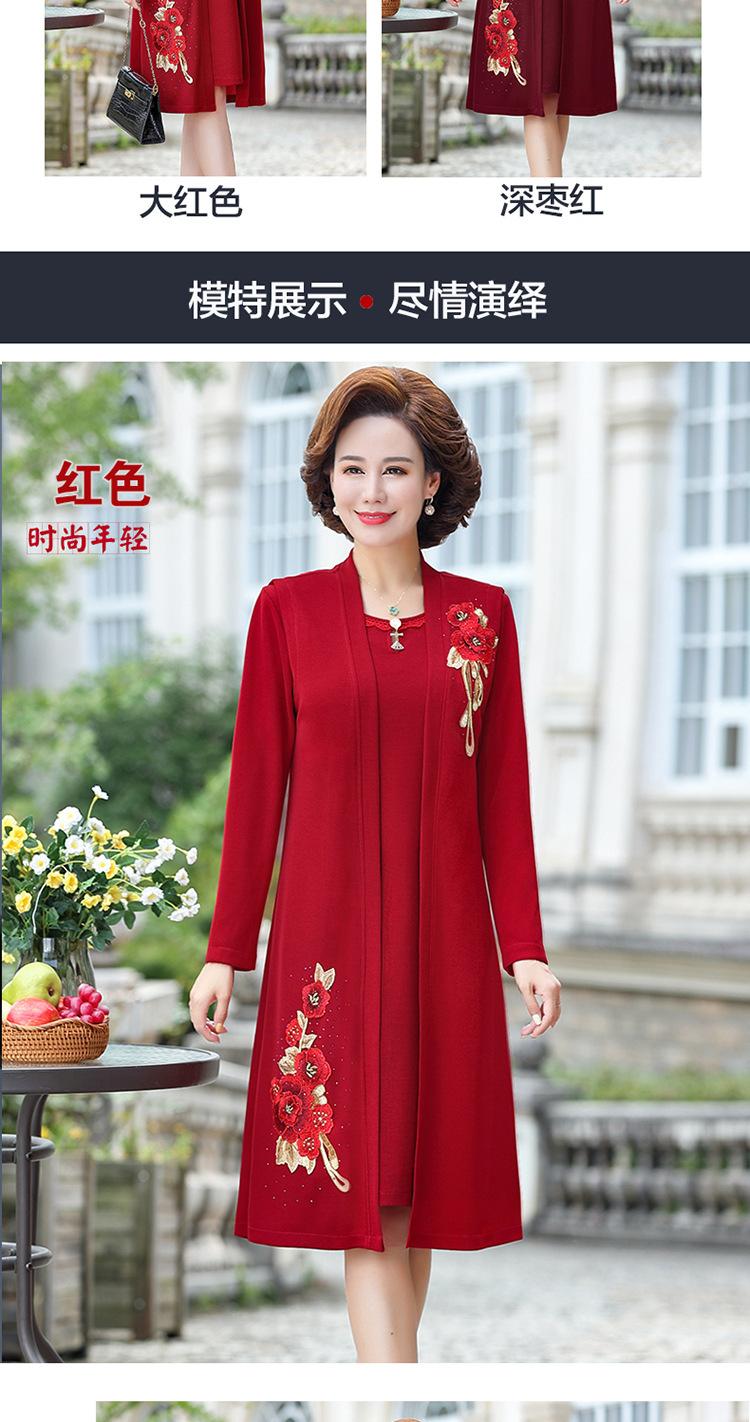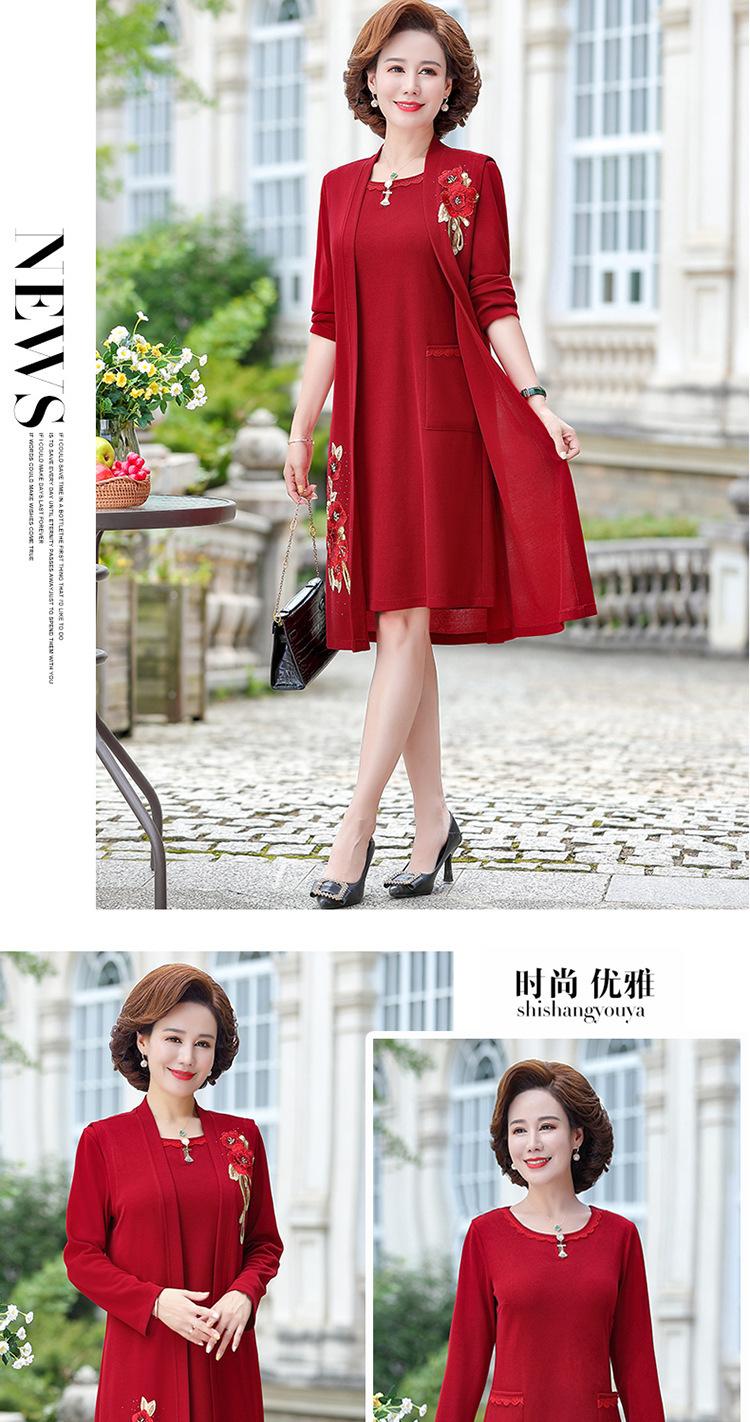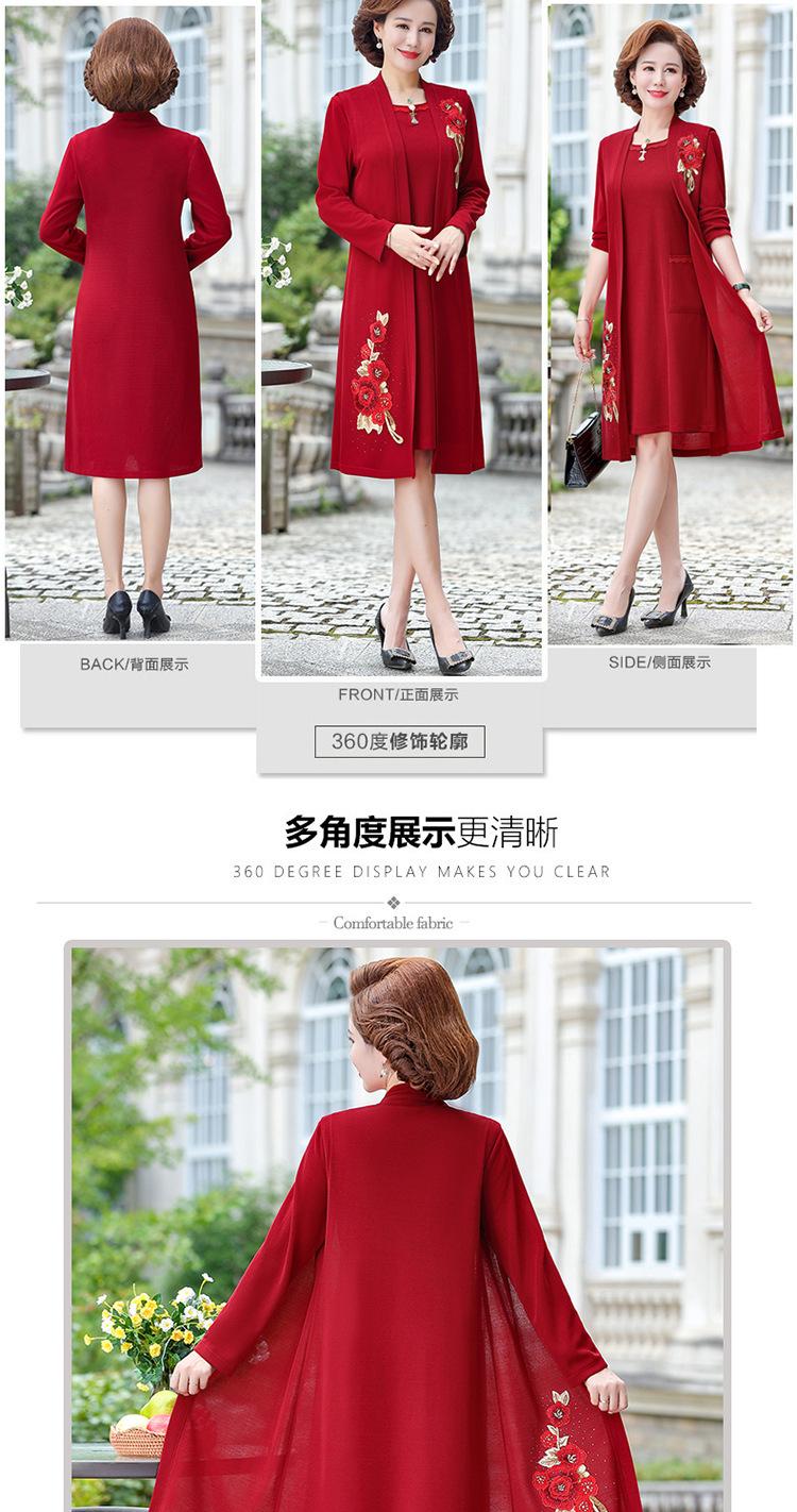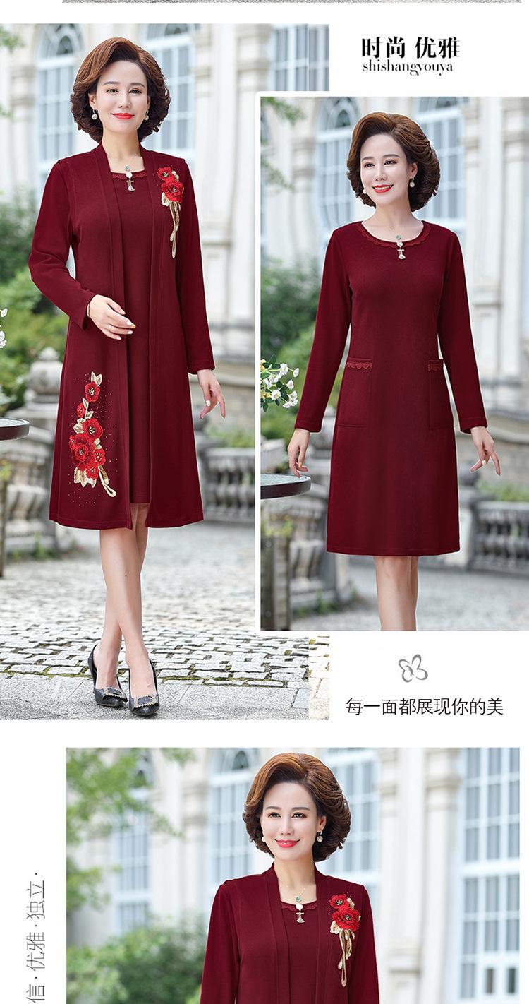 Ropa Nueva para Mujeres de Mediana Edad y Mayores 4050 Vestido Interior de Manga Larga Bordado Exterior Set de Dos Piezas de Primavera y Otoño para Madre
