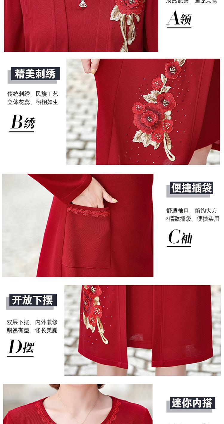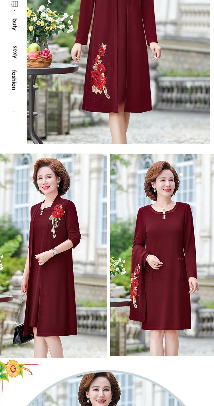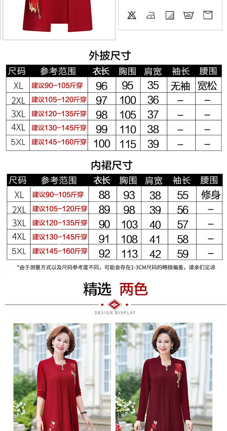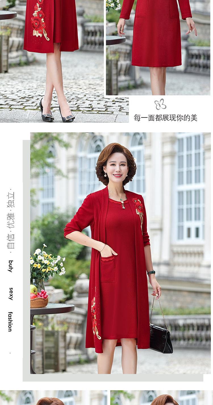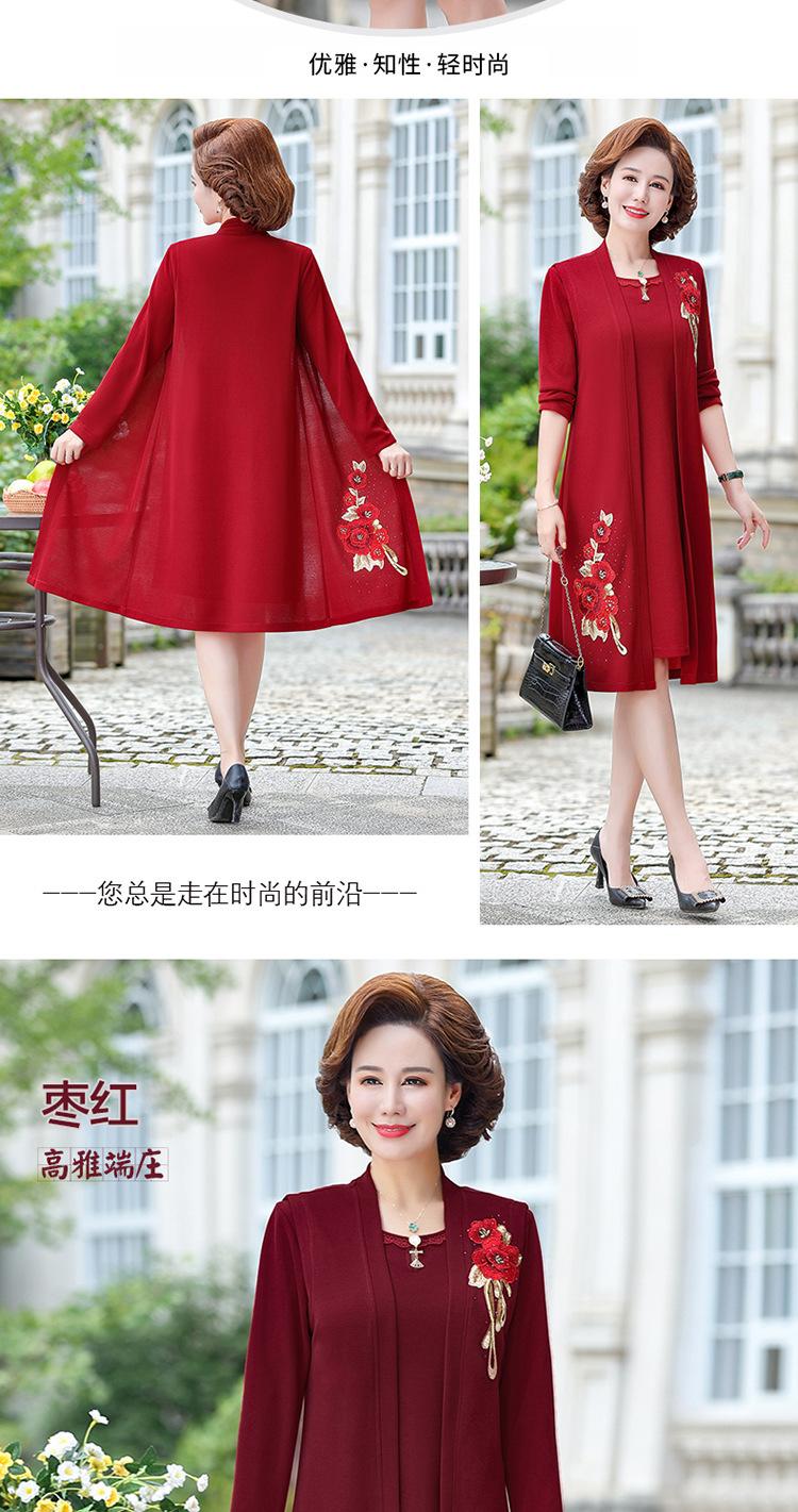 Ropa Nueva para Mujeres de Mediana Edad y Mayores 4050 Vestido Interior de Manga Larga Bordado Exterior Set de Dos Piezas de Primavera y Otoño para Madre
