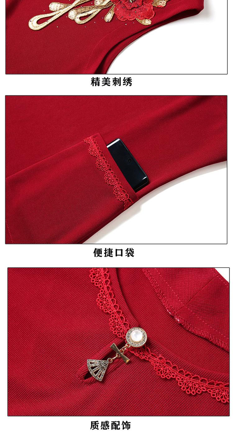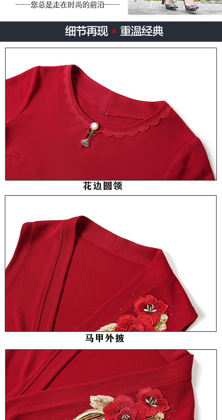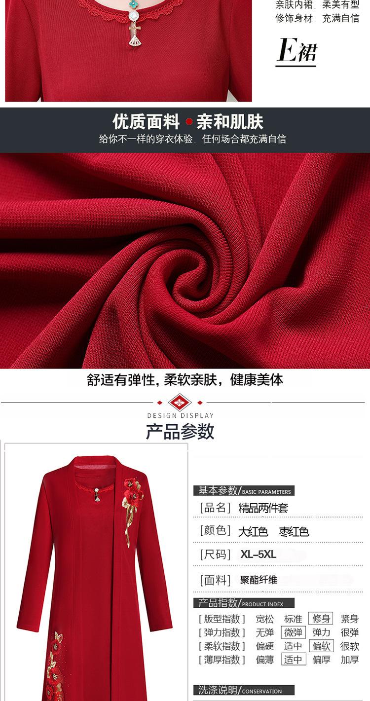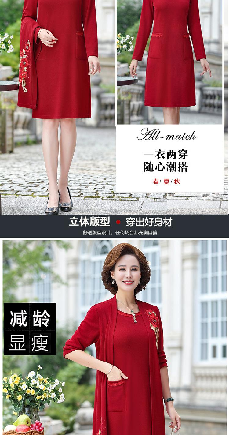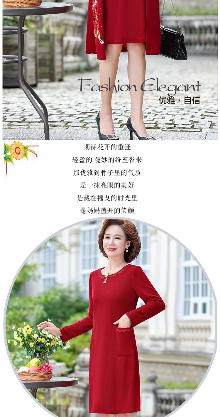 Ropa Nueva para Mujeres de Mediana Edad y Mayores 4050 Vestido Interior de Manga Larga Bordado Exterior Set de Dos Piezas de Primavera y Otoño para Madre
