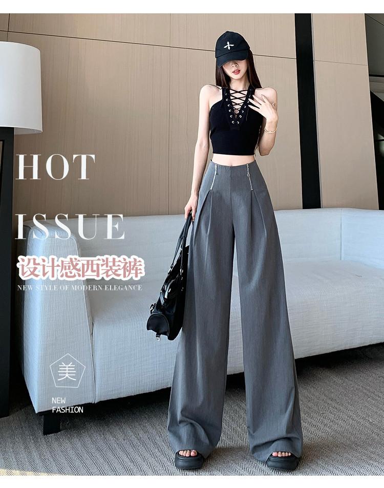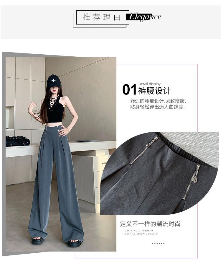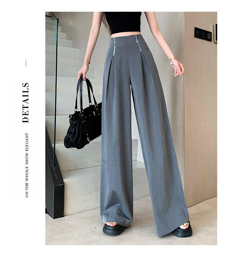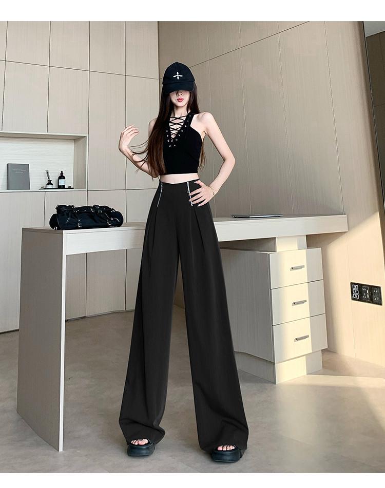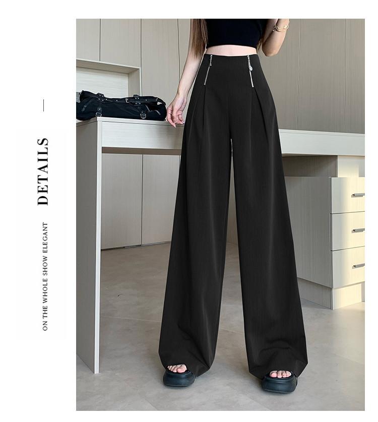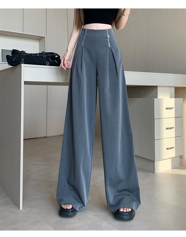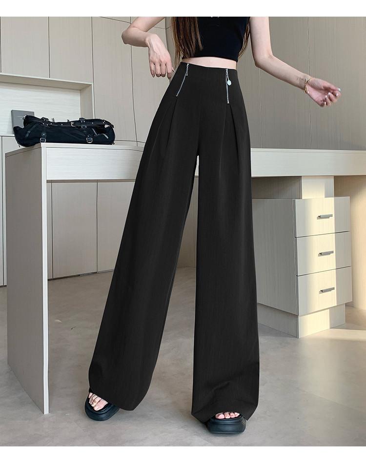 Pantalones anchos con cremallera y diseño transfronterizo Sense 2025, nuevos pantalones rectos elegantes, adelgazantes, de cintura alta y de alta gama.