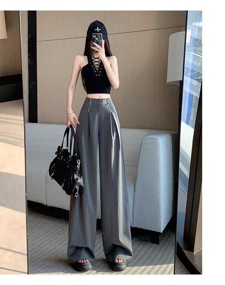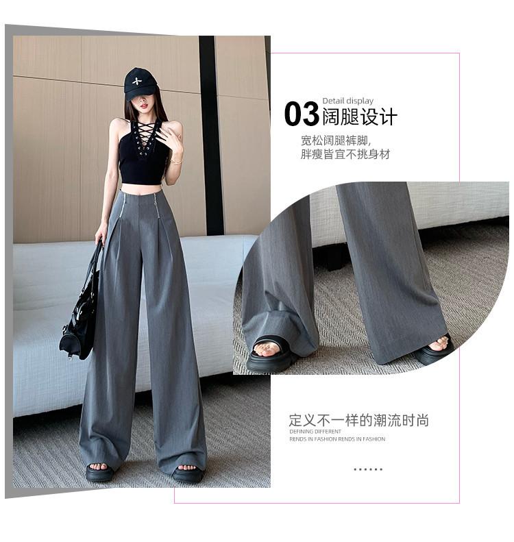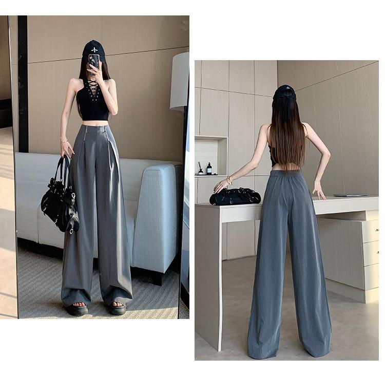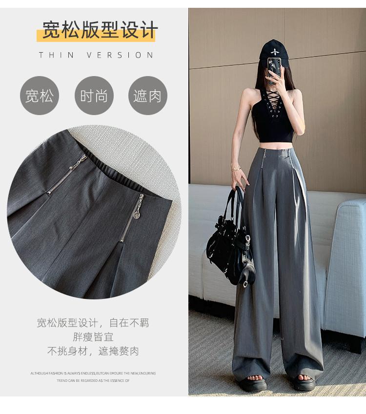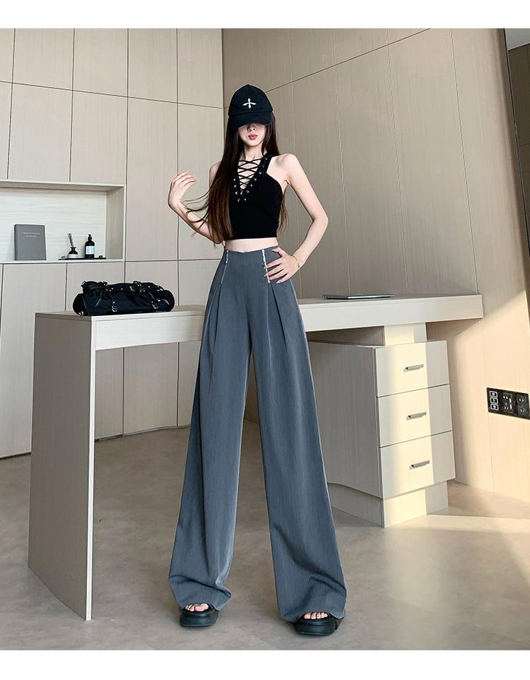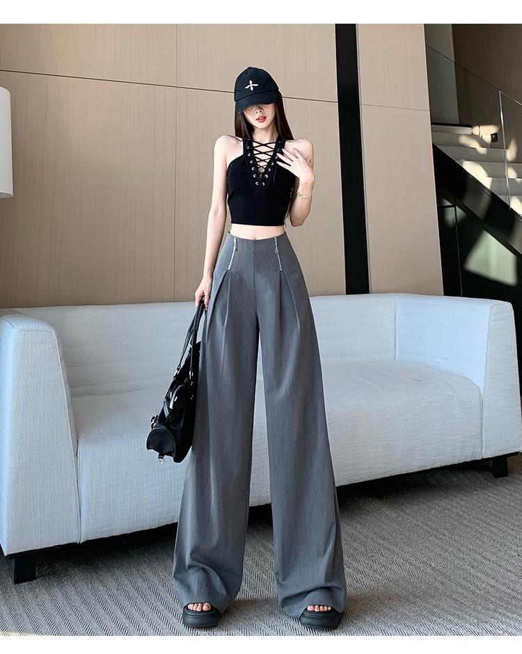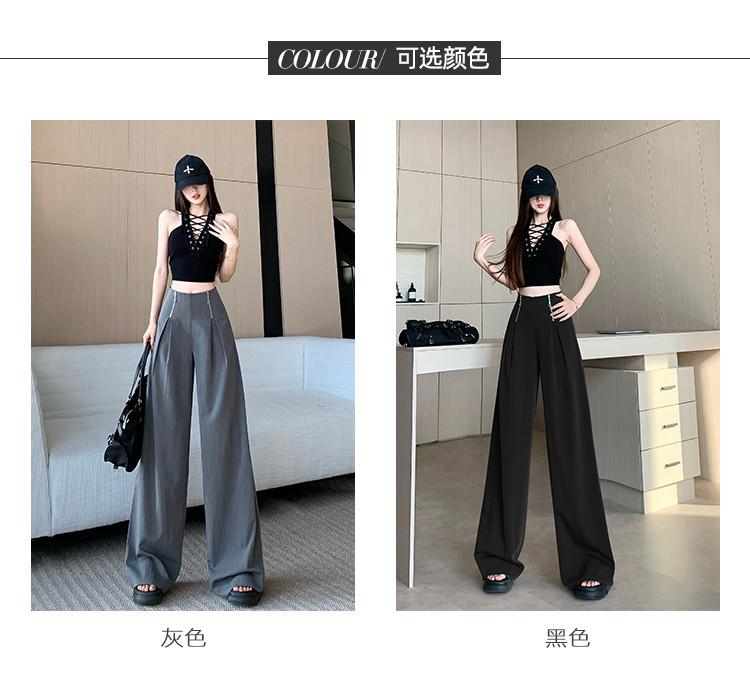 Pantalones anchos con cremallera y diseño transfronterizo Sense 2025, nuevos pantalones rectos elegantes, adelgazantes, de cintura alta y de alta gama.