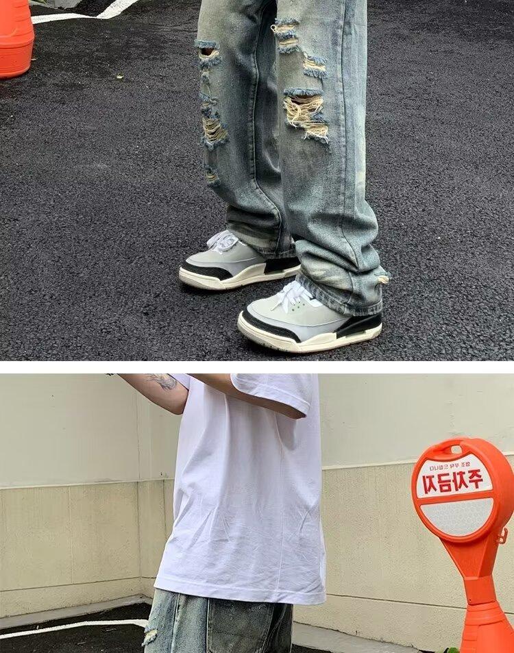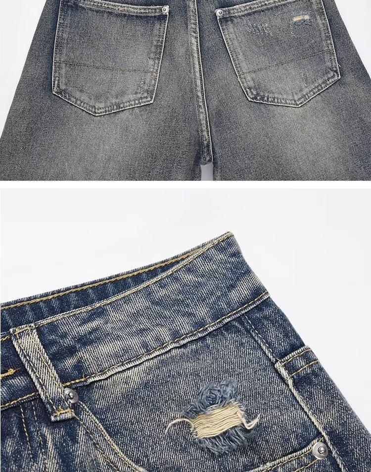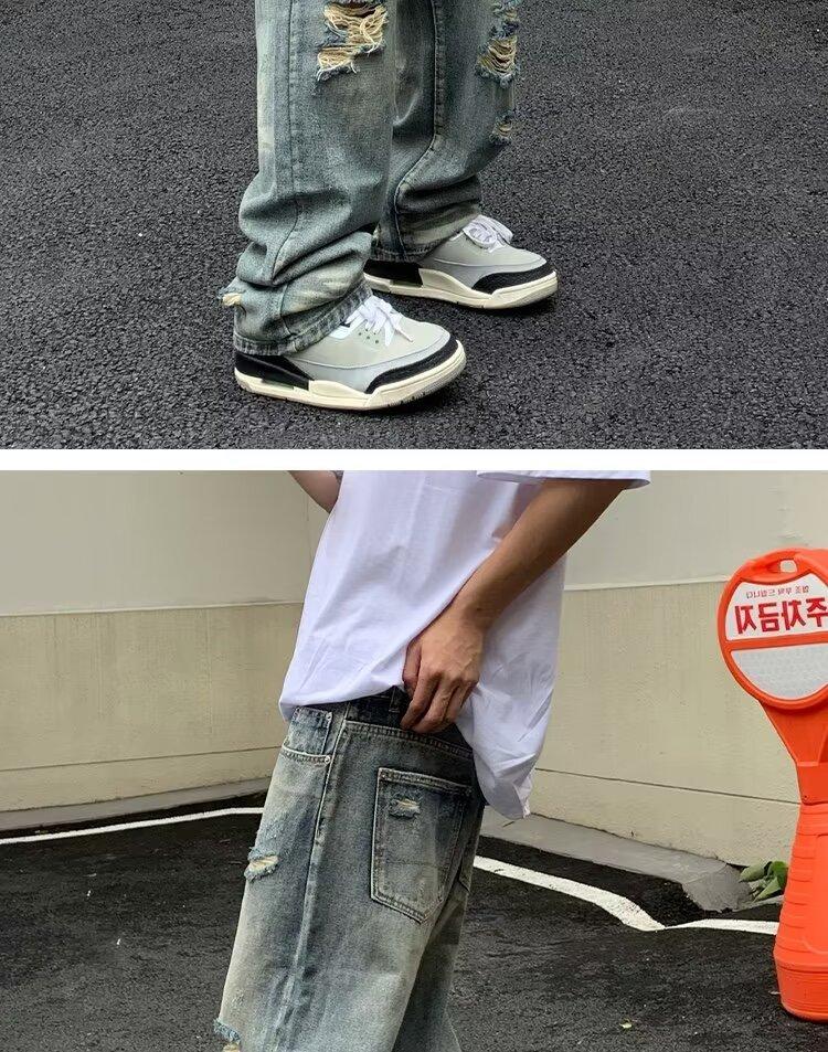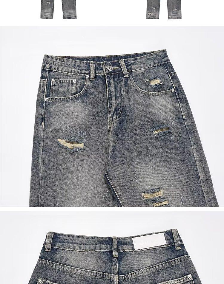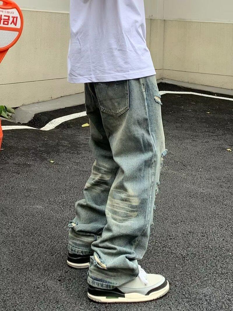 Compra Pantalones vaqueros rotos para hombre, primavera y otoño, verano, finos, estilo americano, retro, de marca, de calle, holgados, rectos, informales, largos al por mayor en Joom.pro