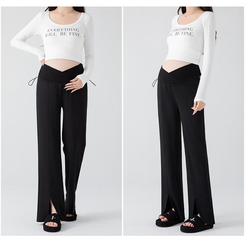 Pantalones de mujer embarazada primavera y verano Pantalones casuales rectos de mujer embarazada Pantalones de pierna ancha de cuerno Ropa occidental Pantalones de mujer embarazada de talla grande Primavera