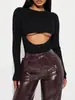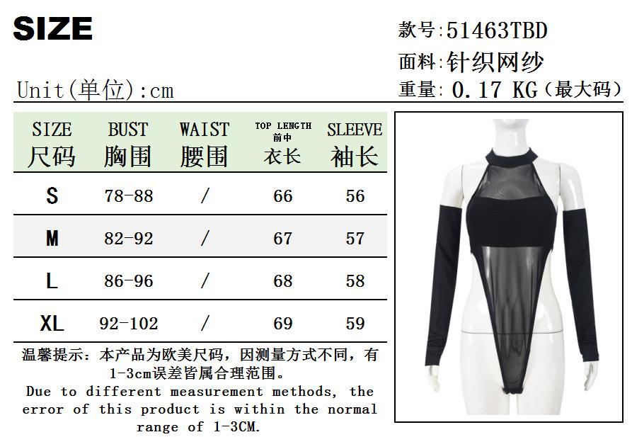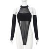 51463 Otoño e Invierno Europeo y Americano Exportación Nuevo Sexy Abertura Manga Larga Entrepierna Malla Recorte Alta Elasticidad Top Enterizo para Mujer