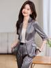 Chaqueta de traje gris con cuello pequeño y mangas de siete puntos para mujer, pantalones de primavera, verano y otoño, traje profesional informal de dos piezas de alta moda.