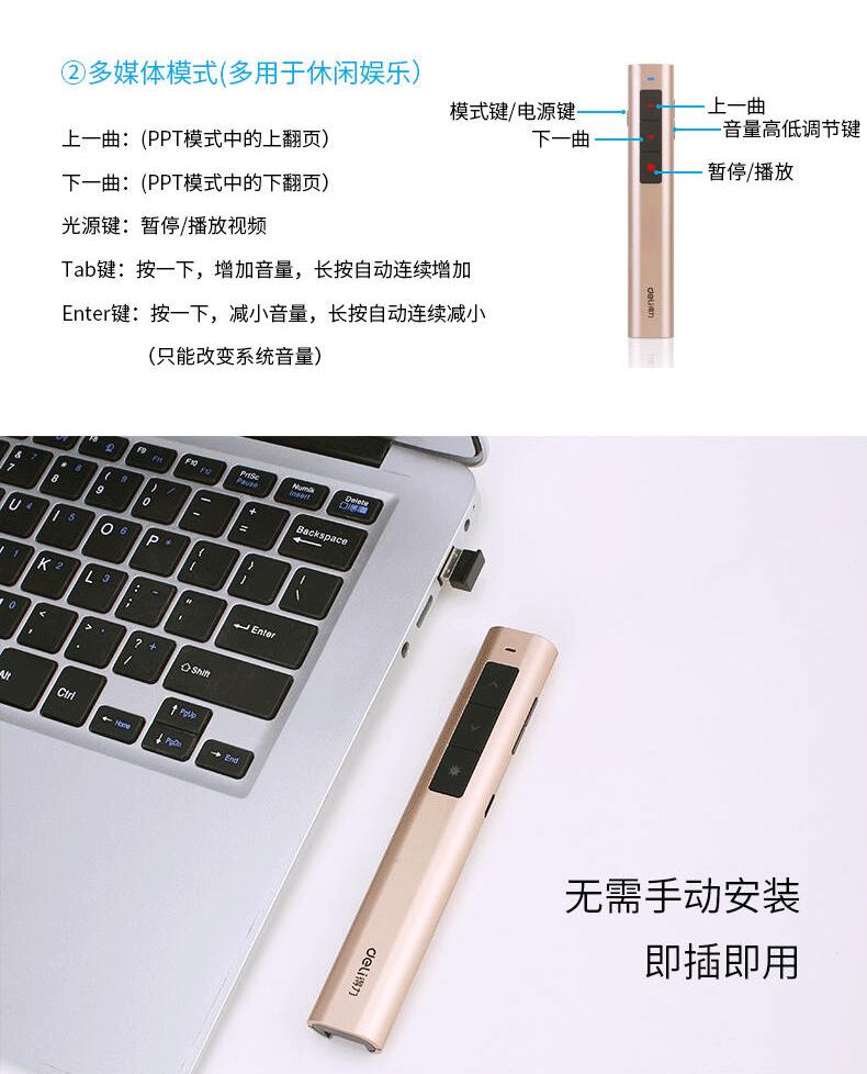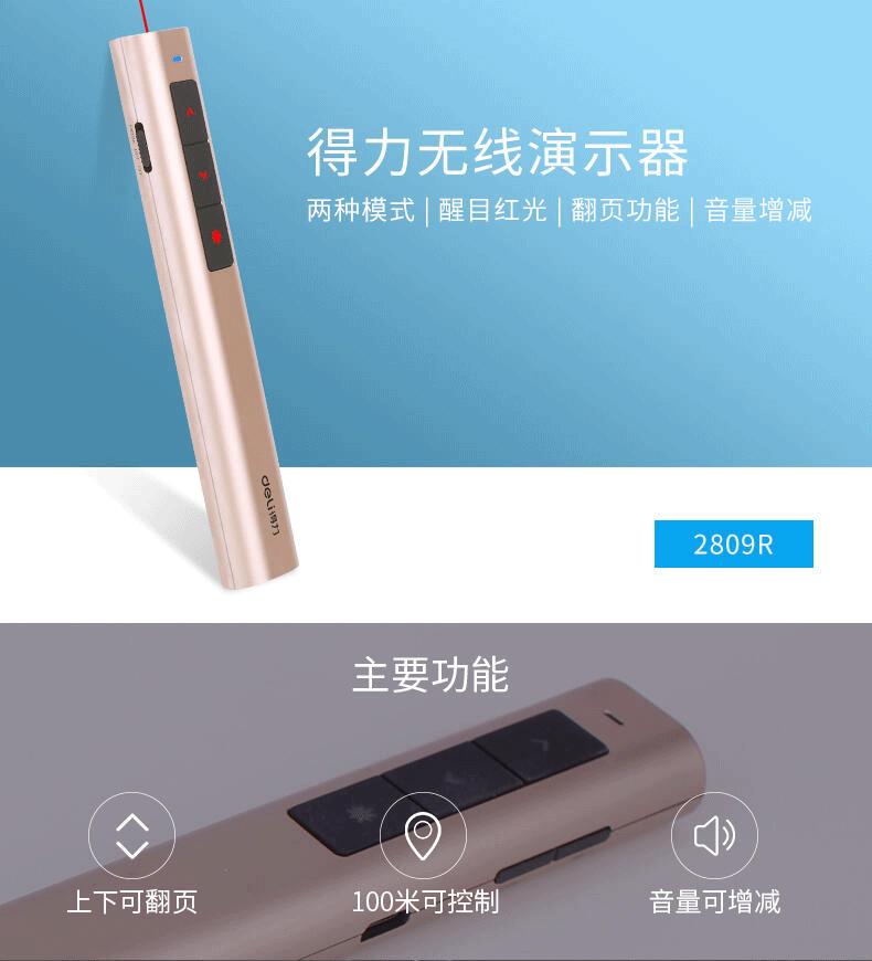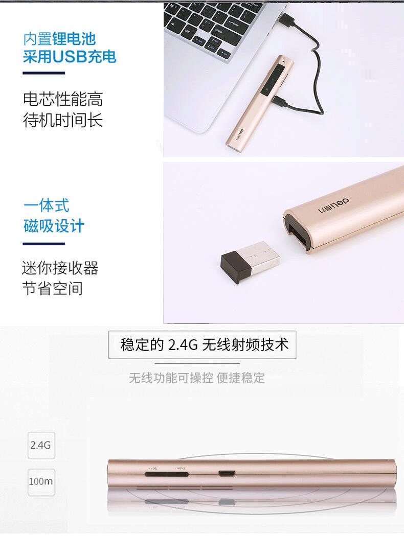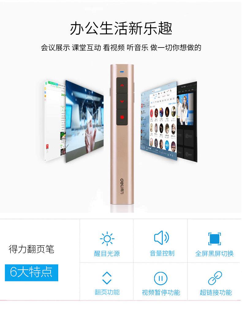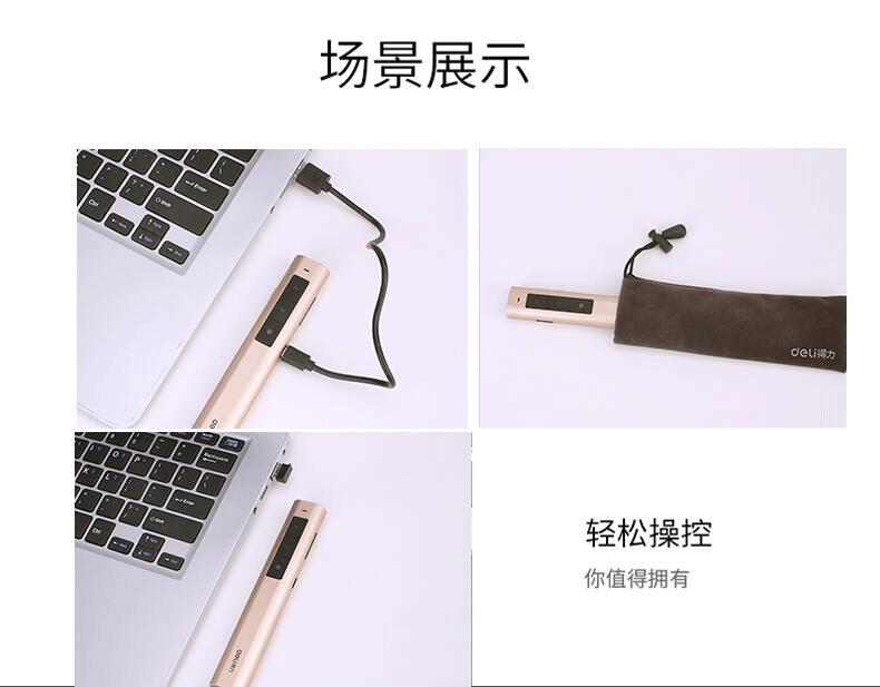 Bolígrafo flip Deli 2809R oro champán recargable proyector de voz bolígrafo puntero electrónico control remoto para ppt