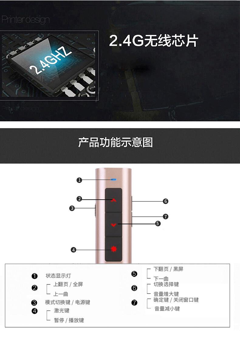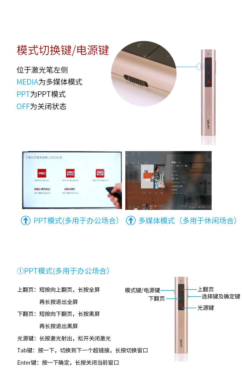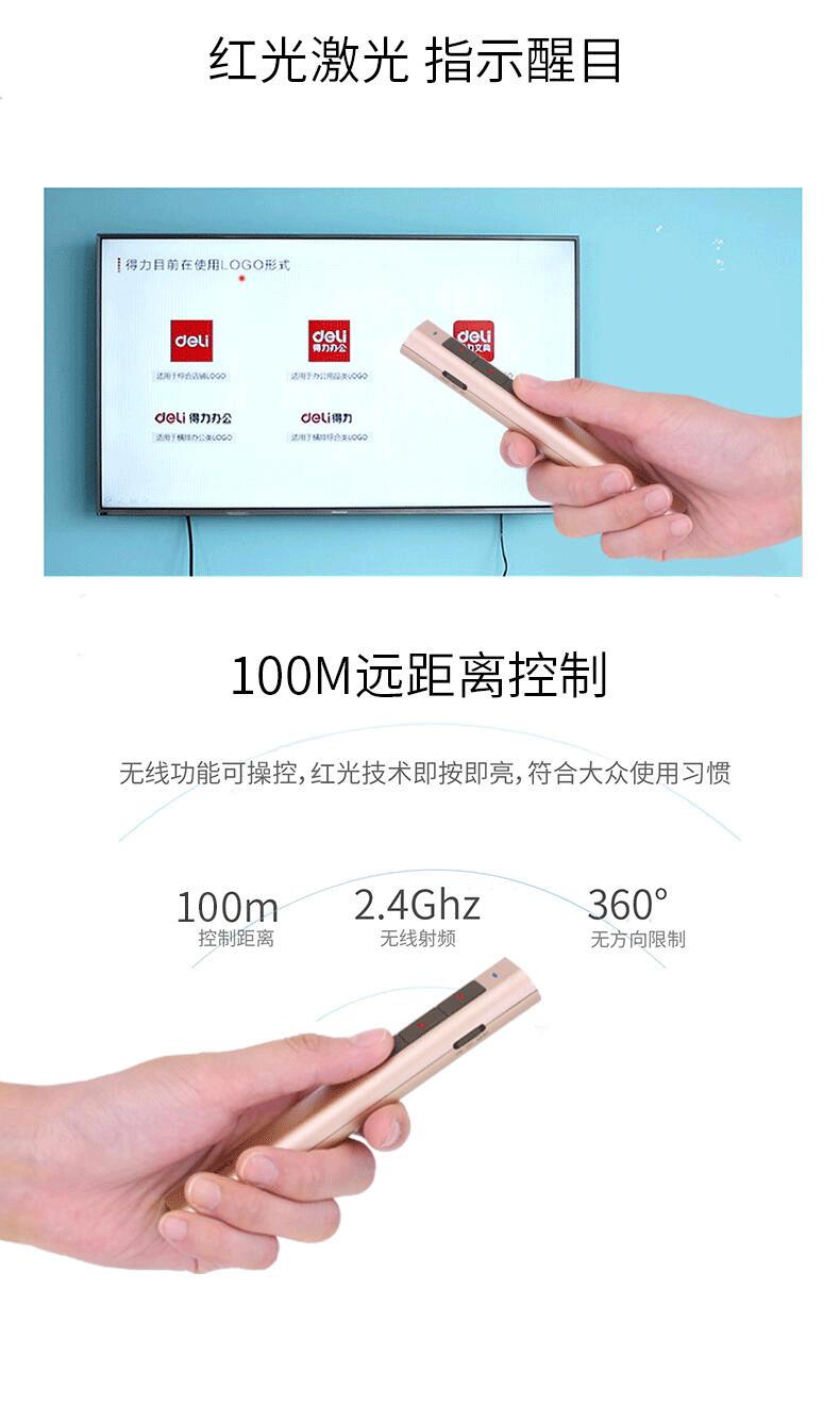 Bolígrafo flip Deli 2809R oro champán recargable proyector de voz bolígrafo puntero electrónico control remoto para ppt