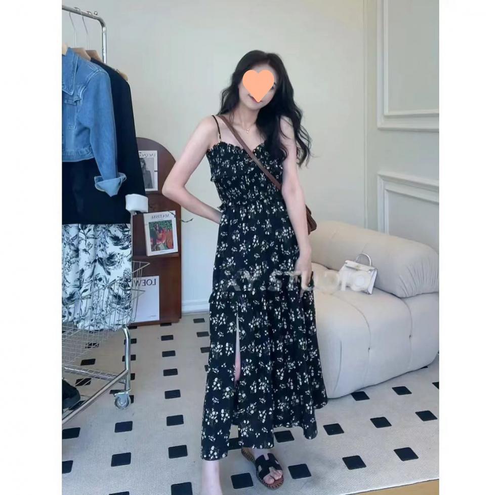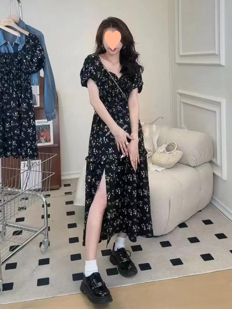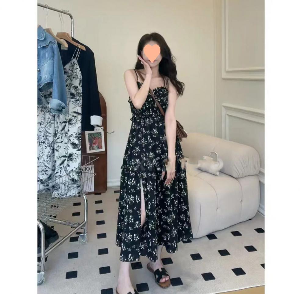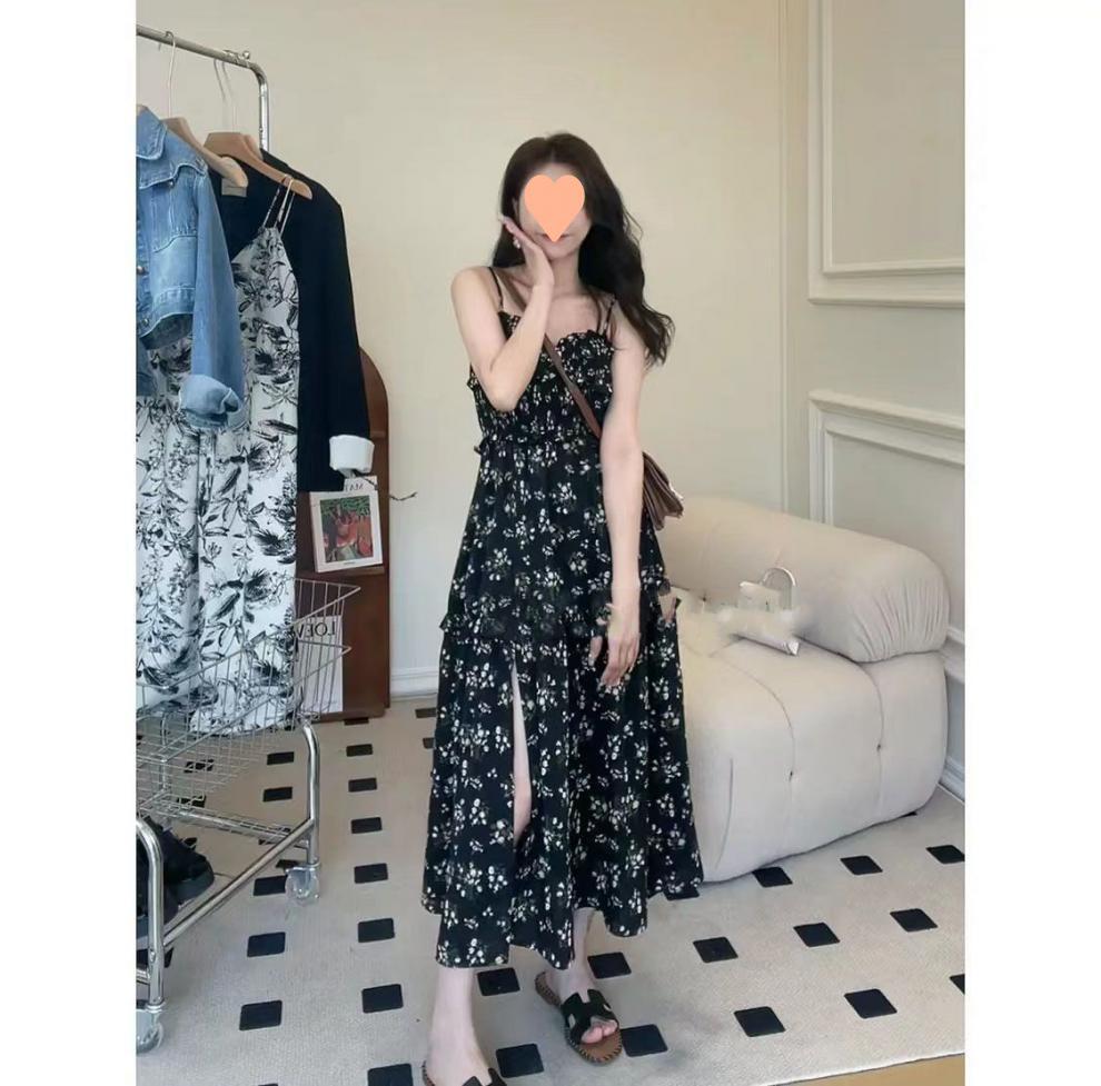 Vestido floral de verano 2025, ropa de mujer, falda de verano, estilo suave, falda de corte de té, falda larga de estilo francés, falda dividida