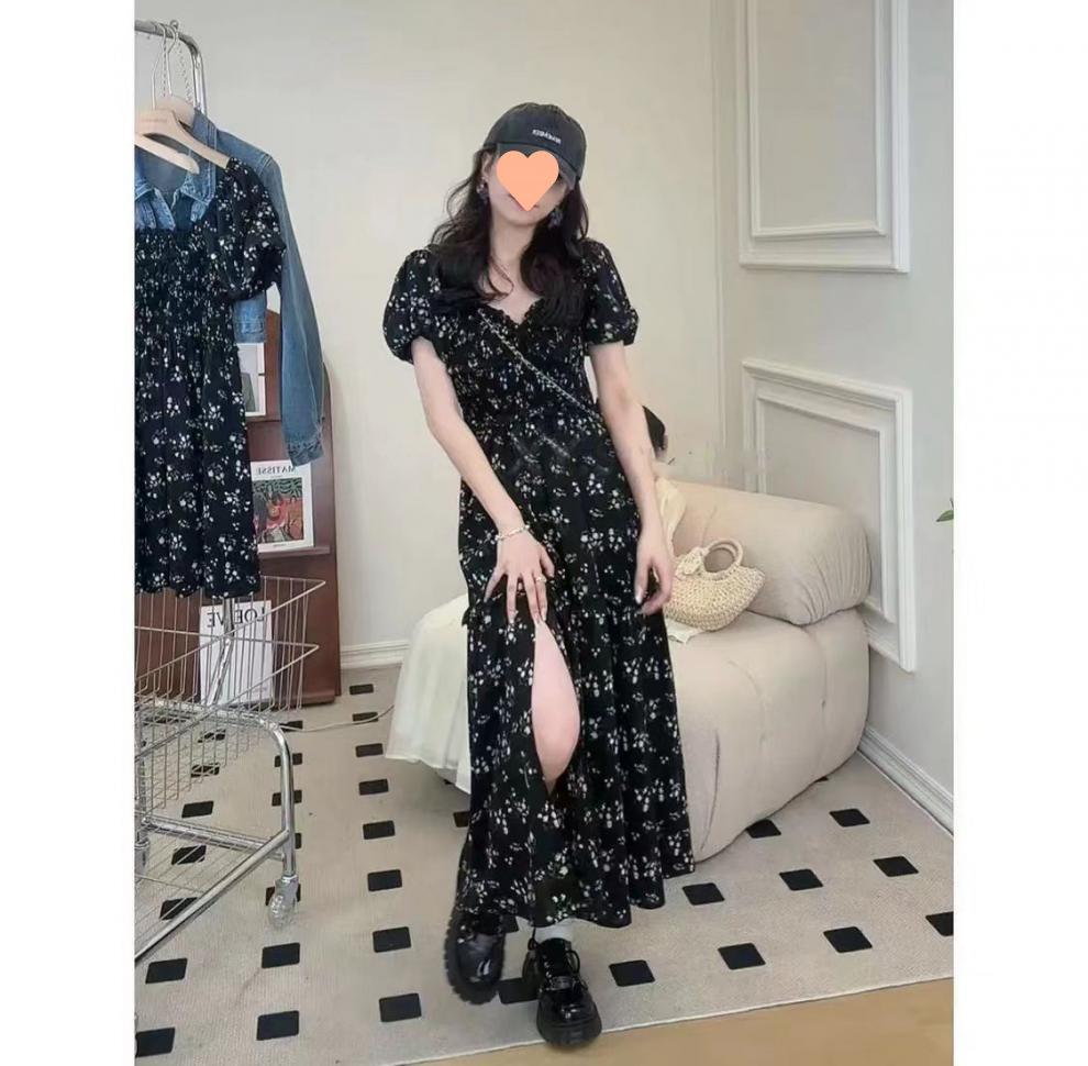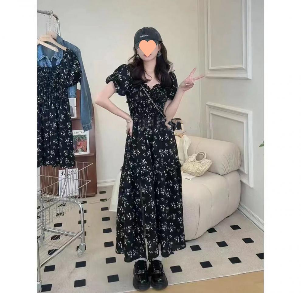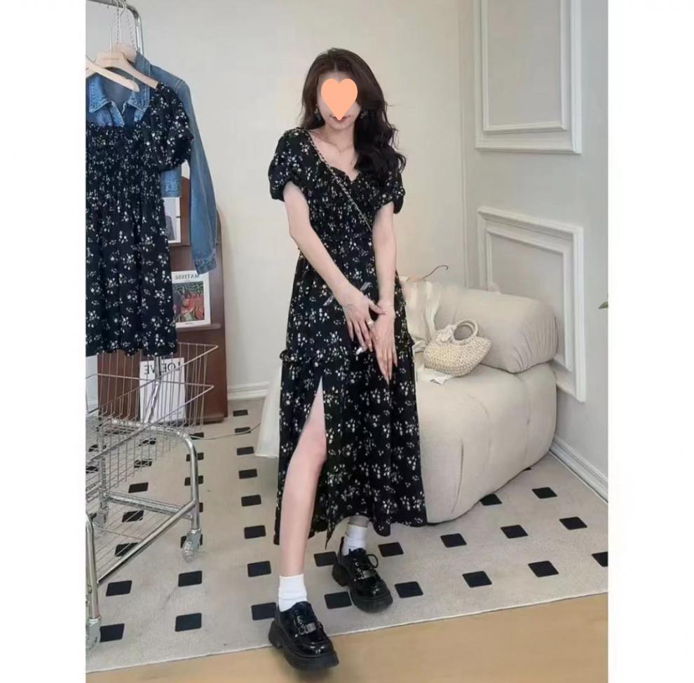 Vestido floral de verano 2025, ropa de mujer, falda de verano, estilo suave, falda de corte de té, falda larga de estilo francés, falda dividida