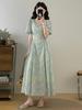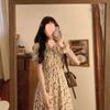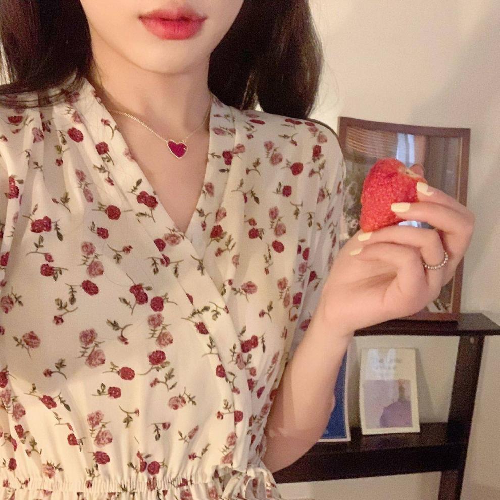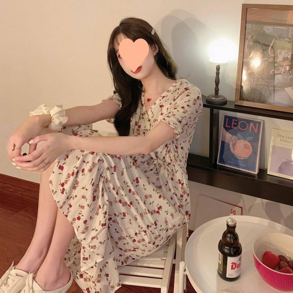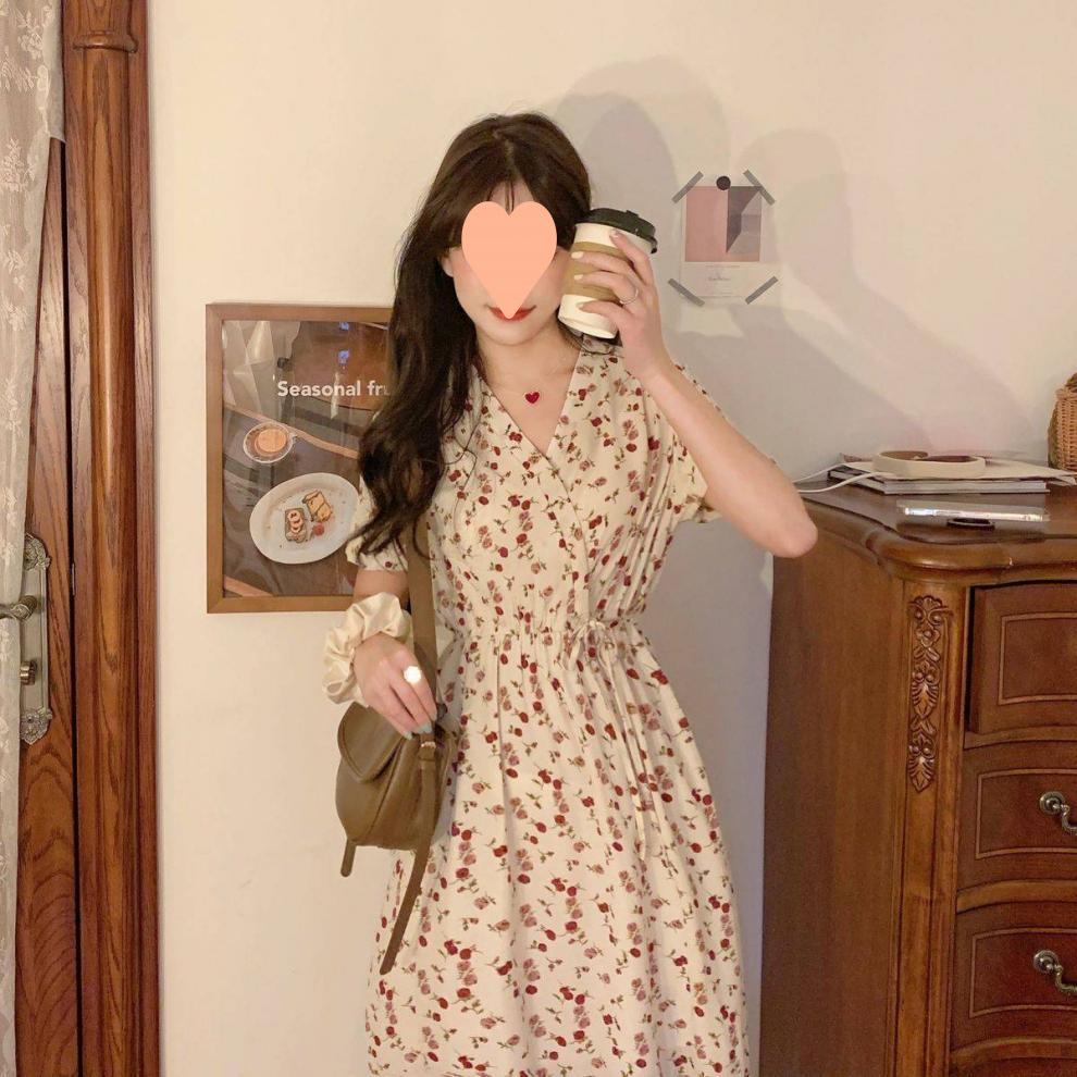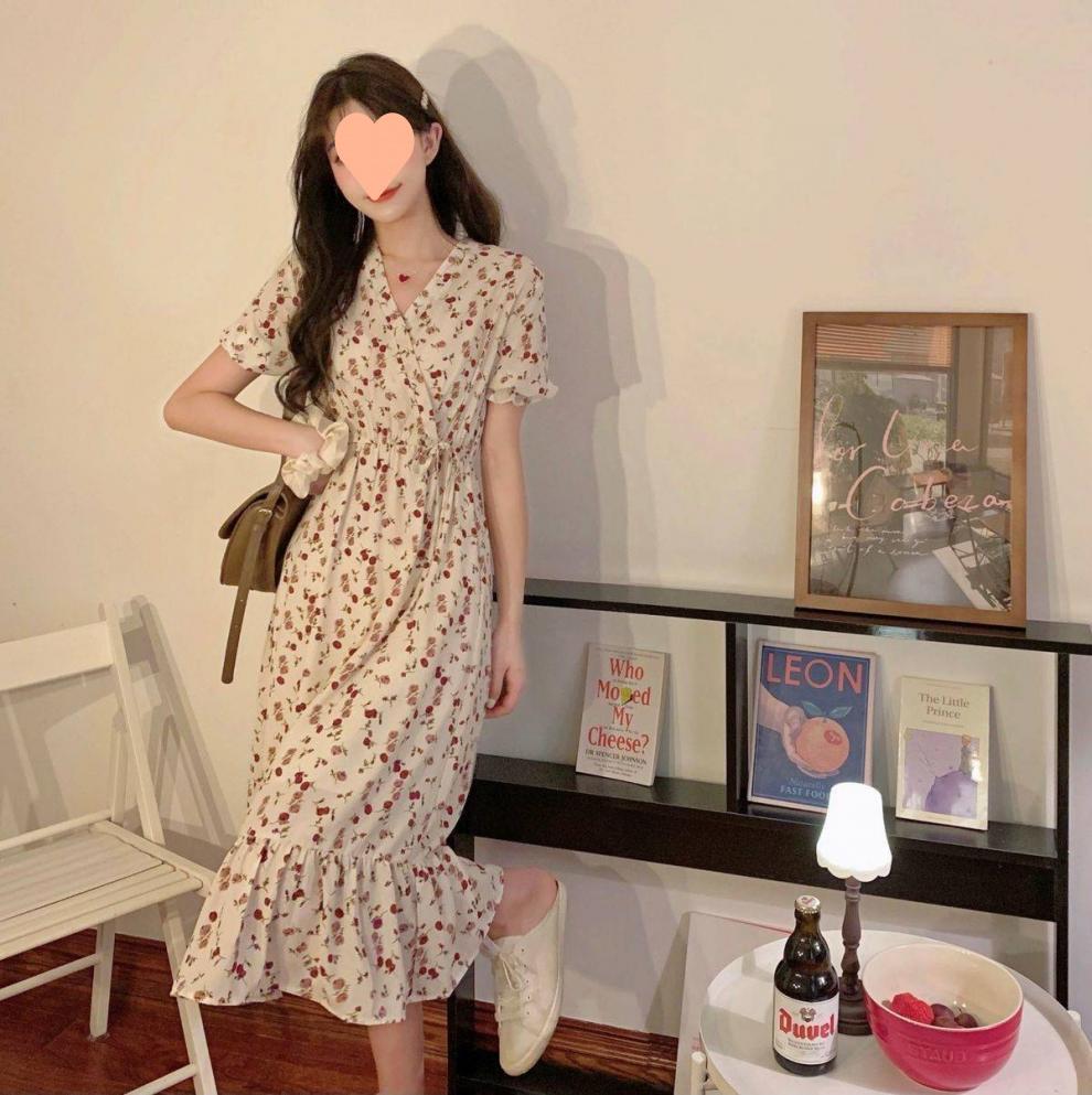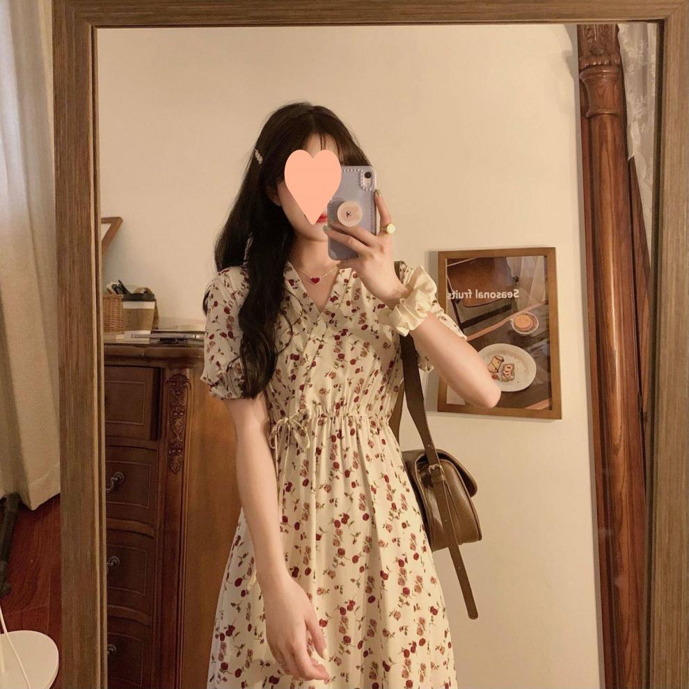 Vestido de verano para mujer, estilo francés, talla grande, temporada de flores rotas, gordito, para cubrir la cintura del vientre, adelgazante, largo medio.