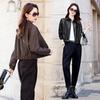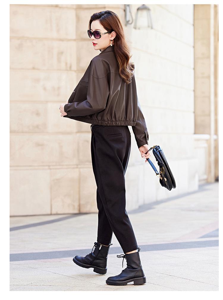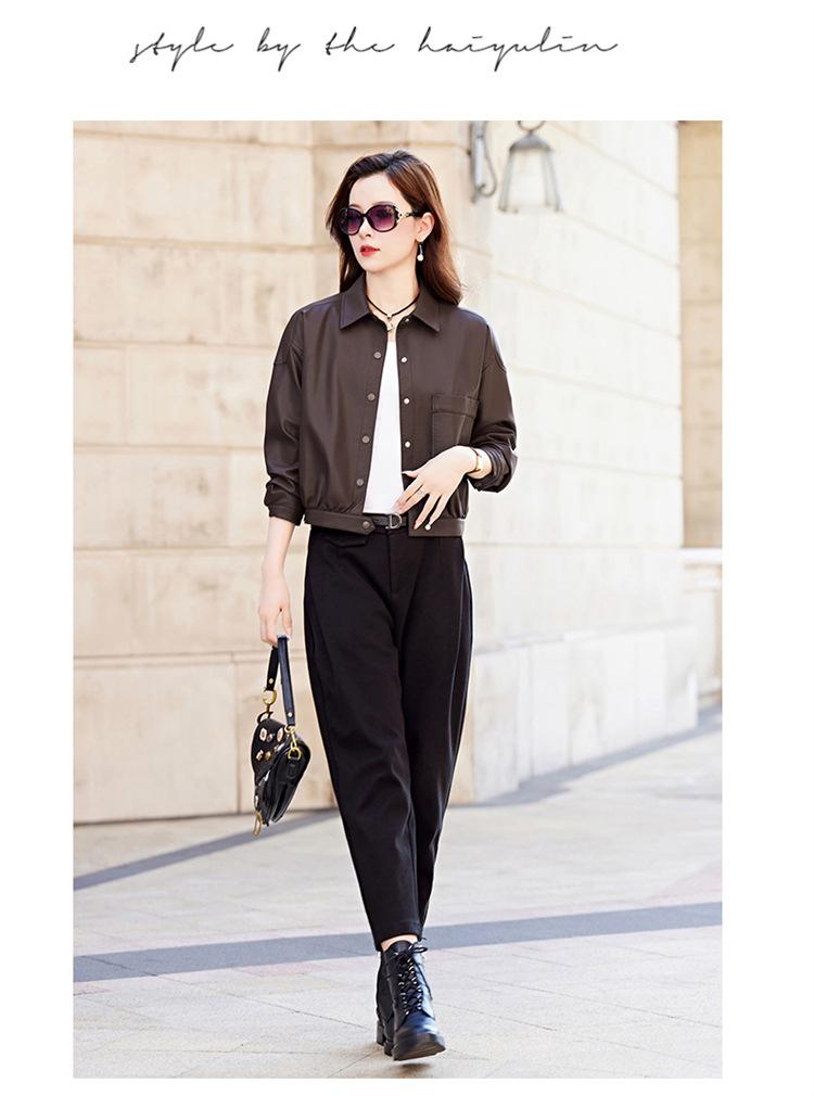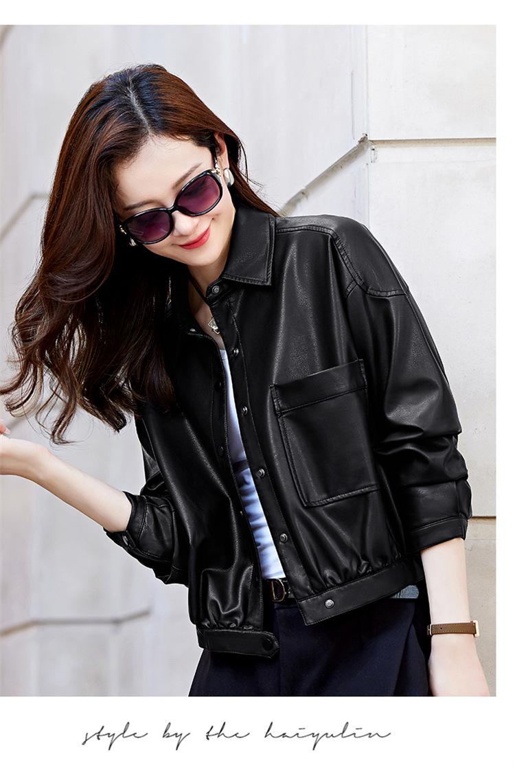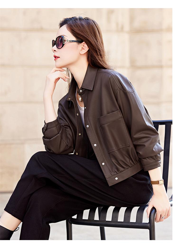Abrigo corto de piel de oveja para mujer, primavera y otoño, 2025, nuevo estilo, moda pequeña, informal, elegante, chaqueta de cuero.