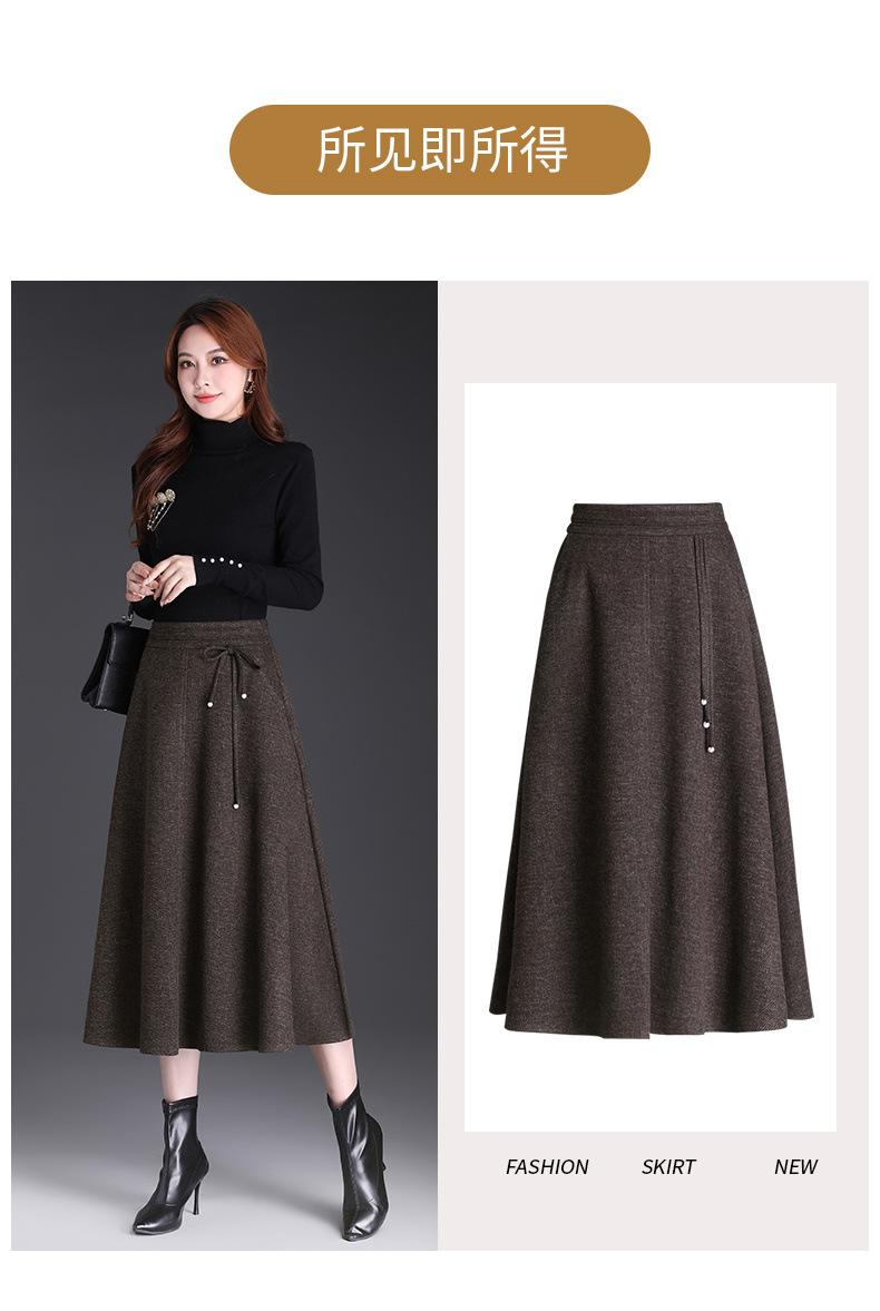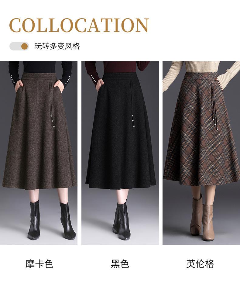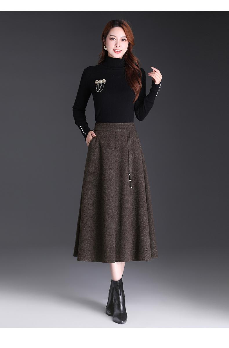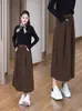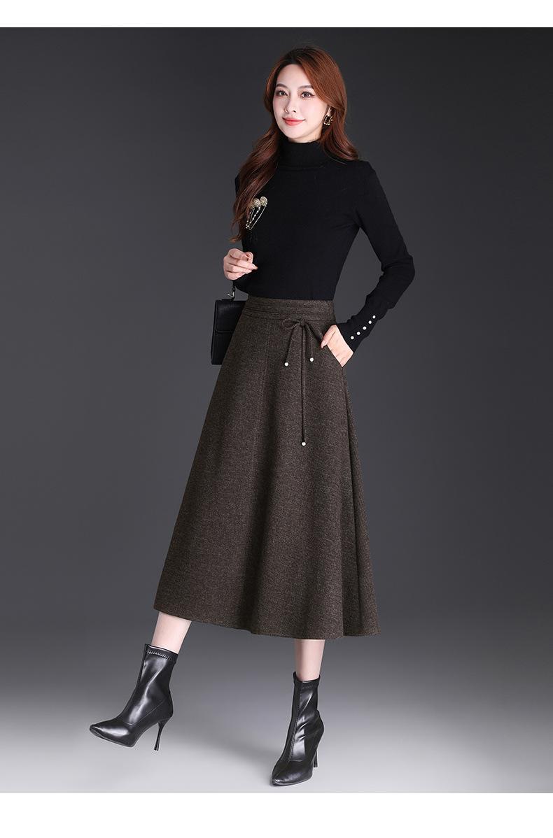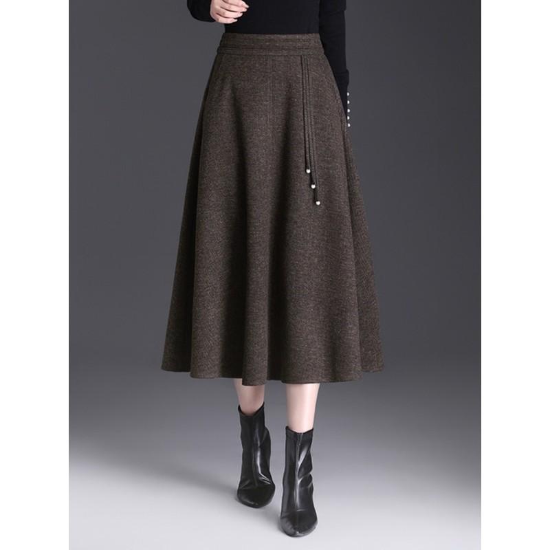 Falda de Lana para Mujer Otoño e Invierno Falda Larga 2024 Nuevo Estilo Chino Falda de Cintura Alta Adelgazante Falda Paraguas de Vuelo Amplio Falda Línea A
