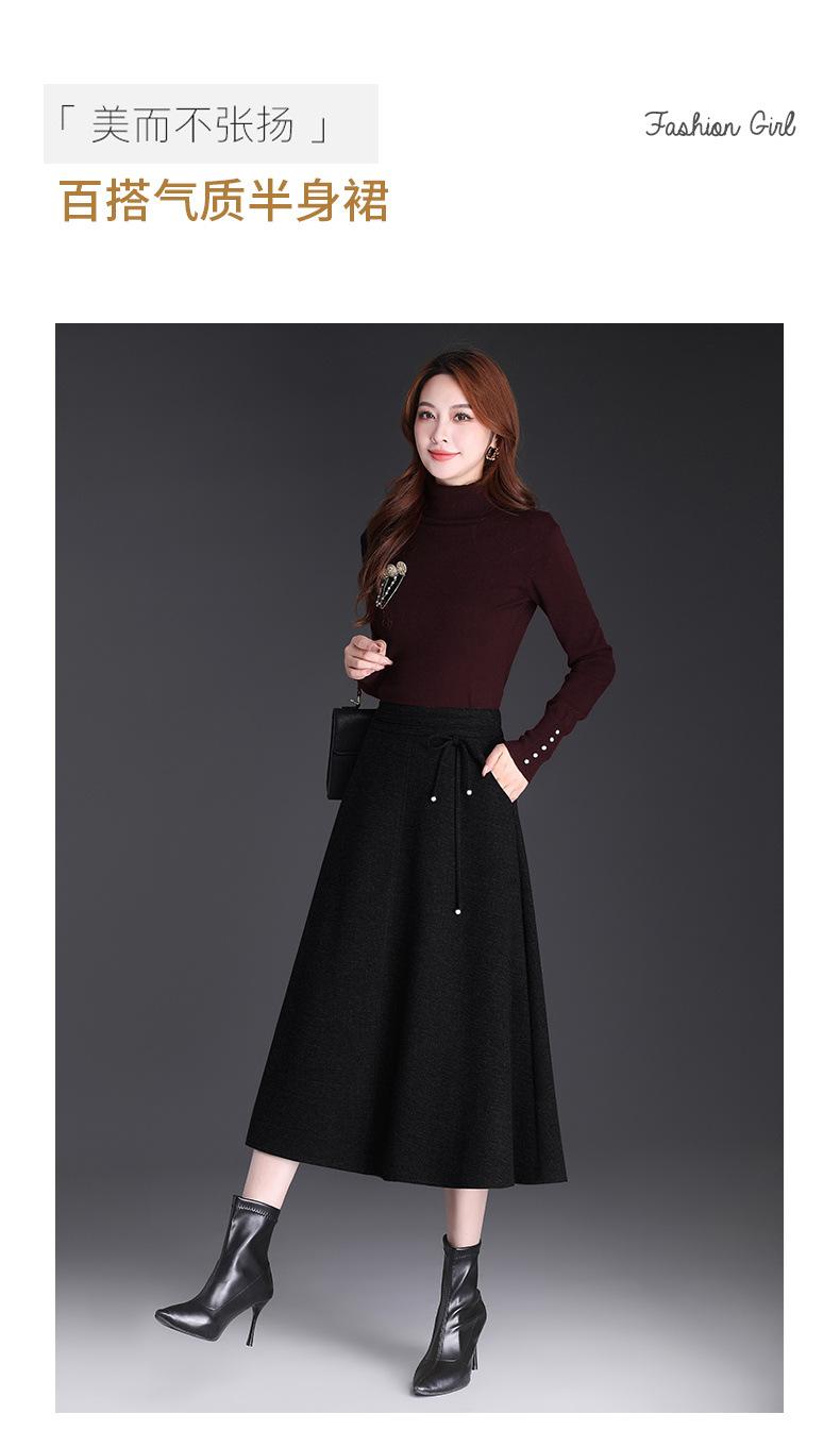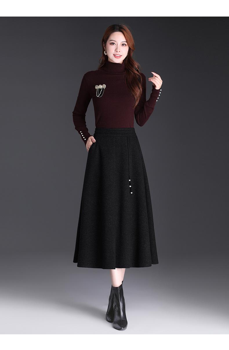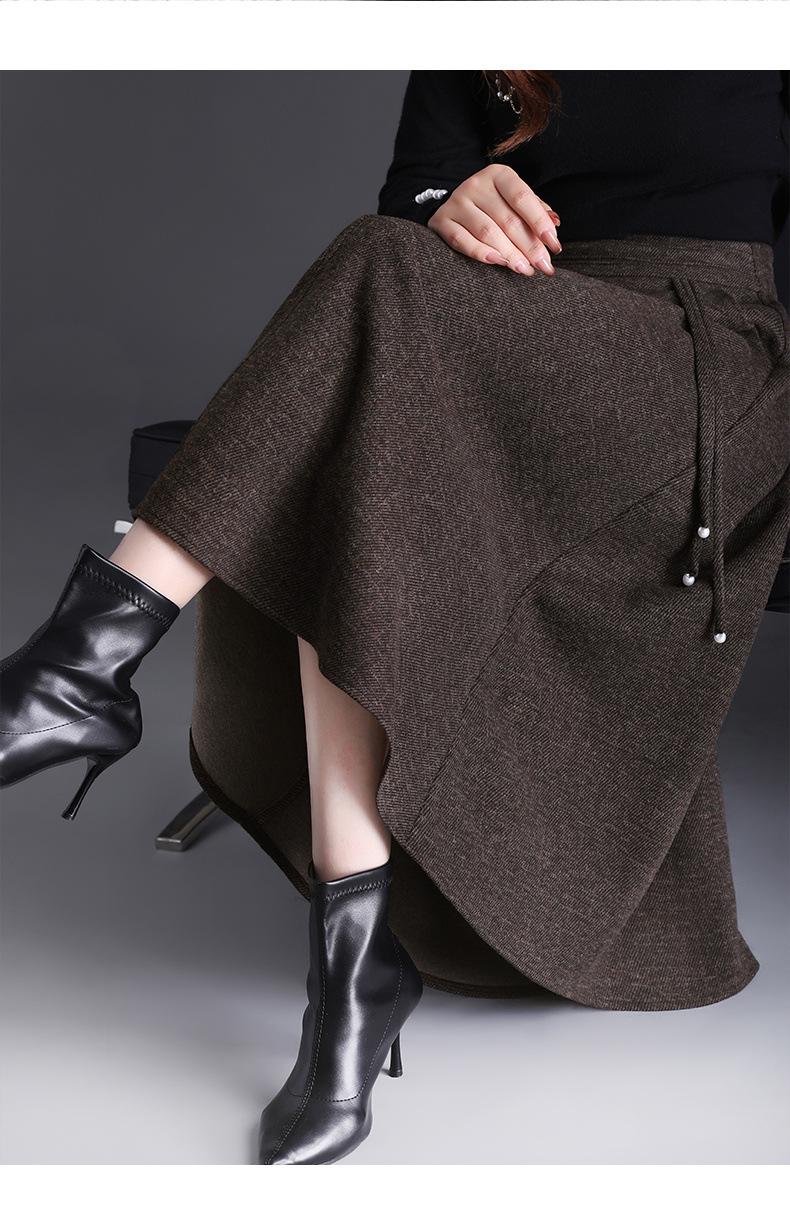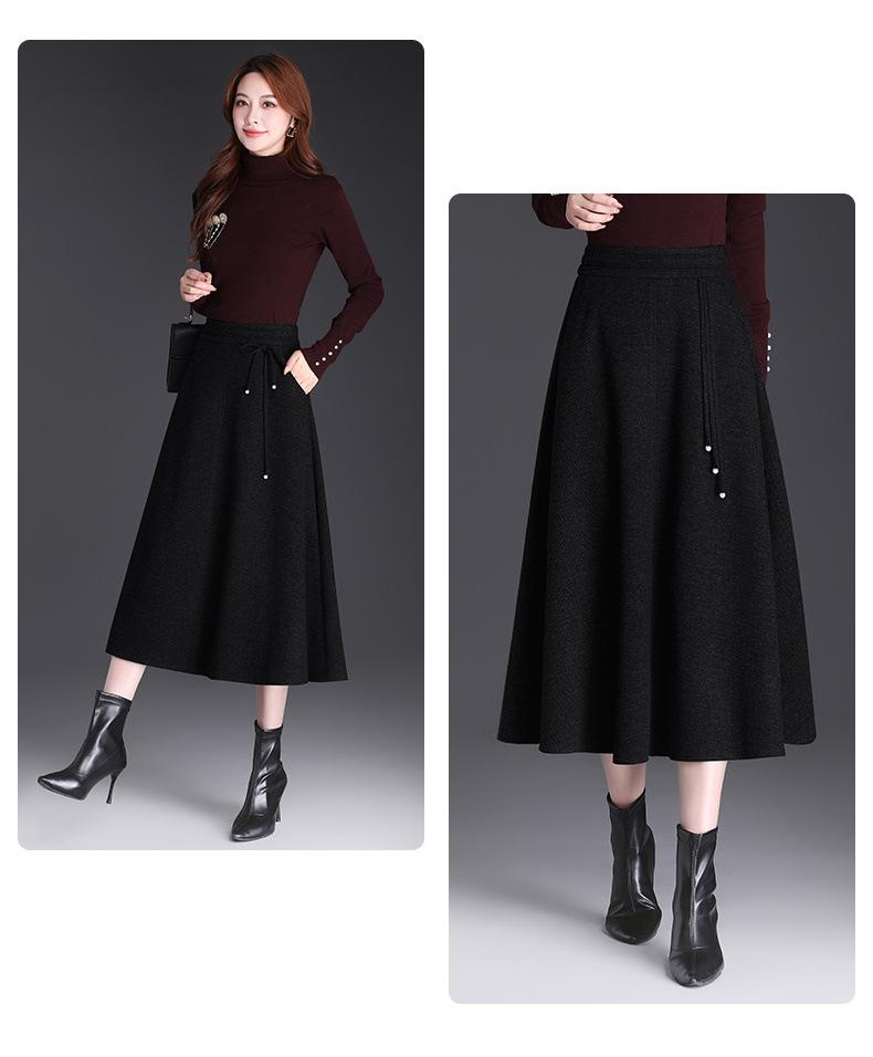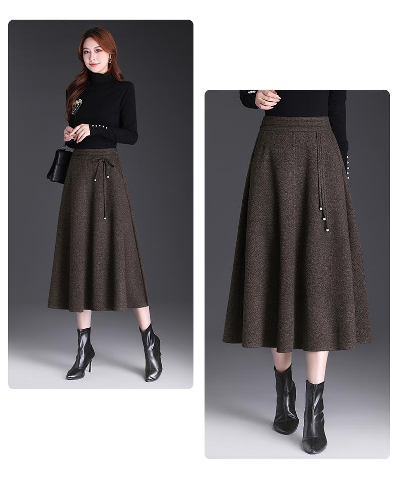 Falda de Lana para Mujer Otoño e Invierno Falda Larga 2024 Nuevo Estilo Chino Falda de Cintura Alta Adelgazante Falda Paraguas de Vuelo Amplio Falda Línea A