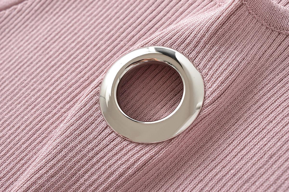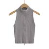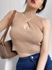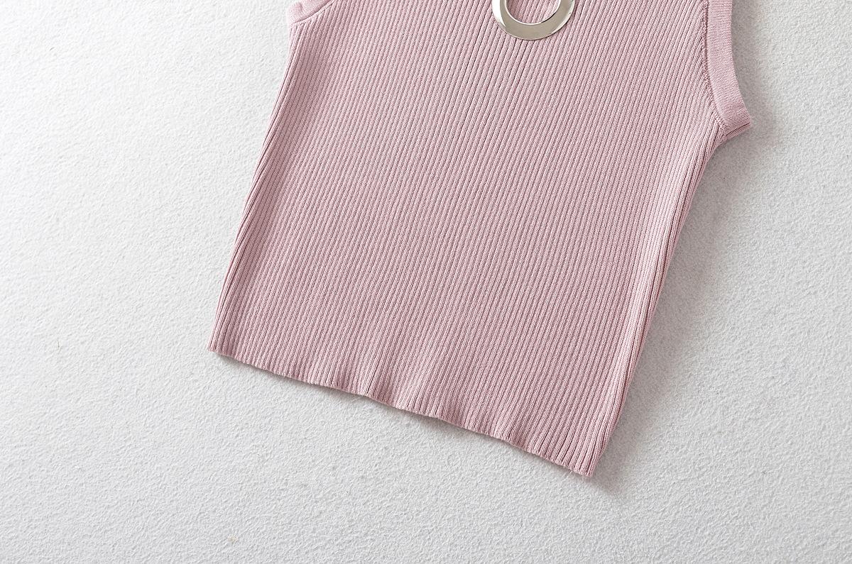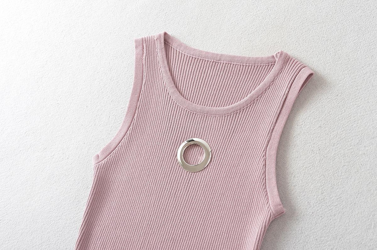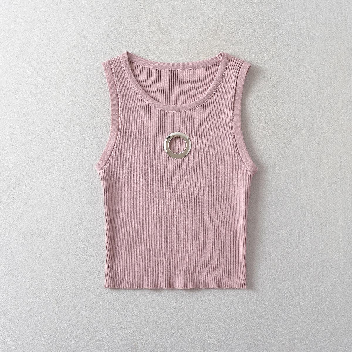 Estilo europeo y americano chica sexy Chaleco de punto casual sin mangas de cuello redondo ajustado elástico hueco de metal para mujer
