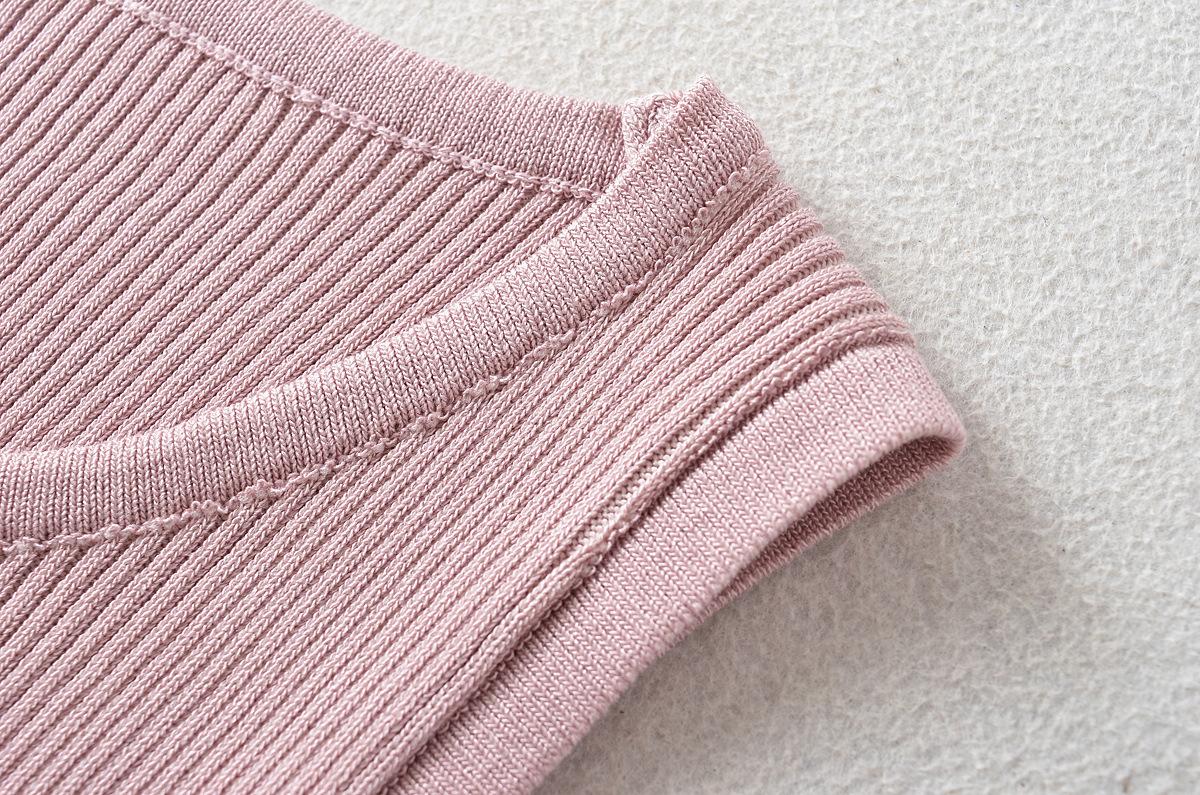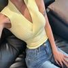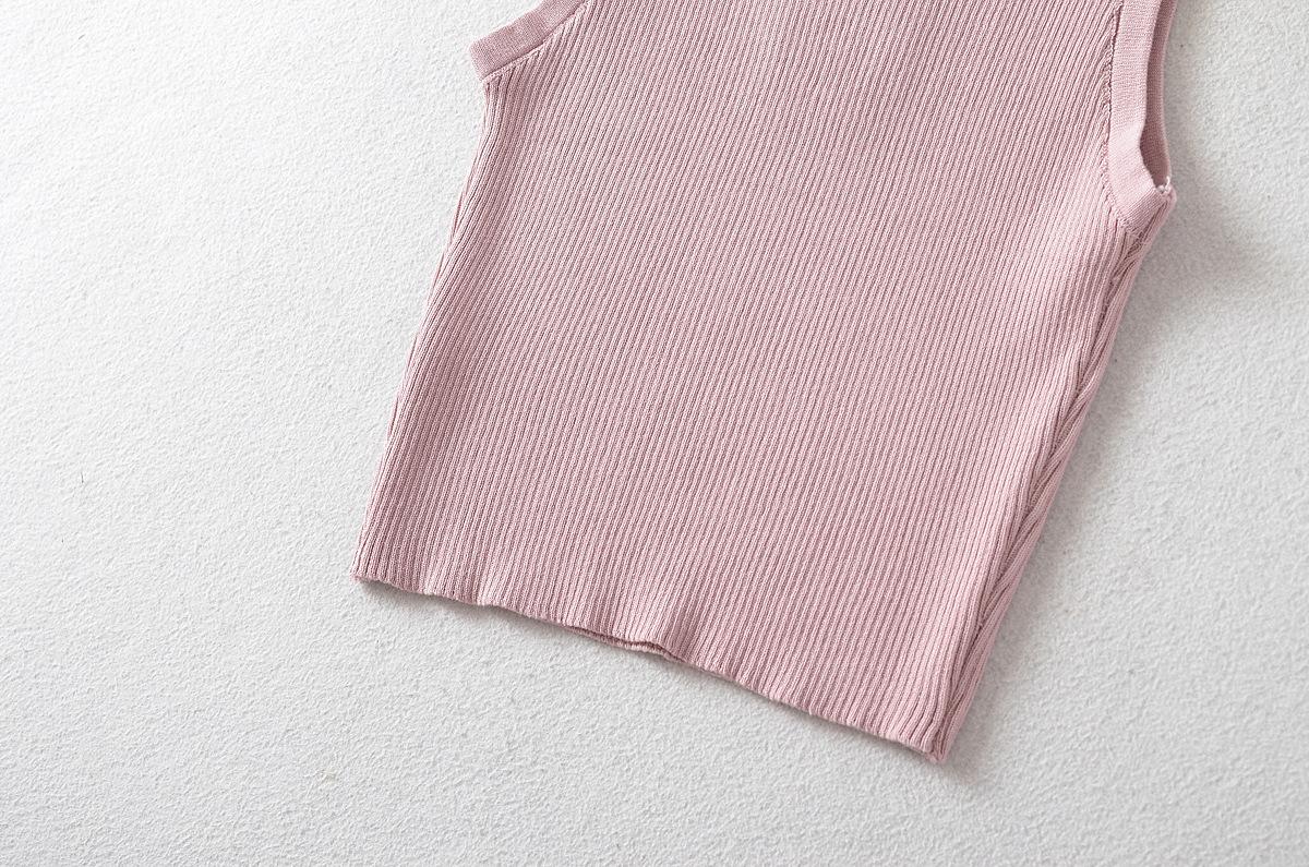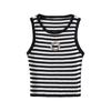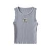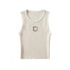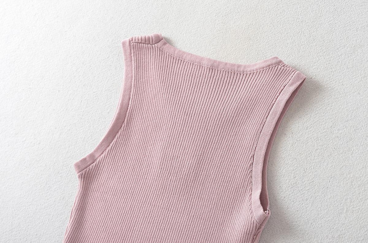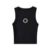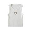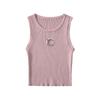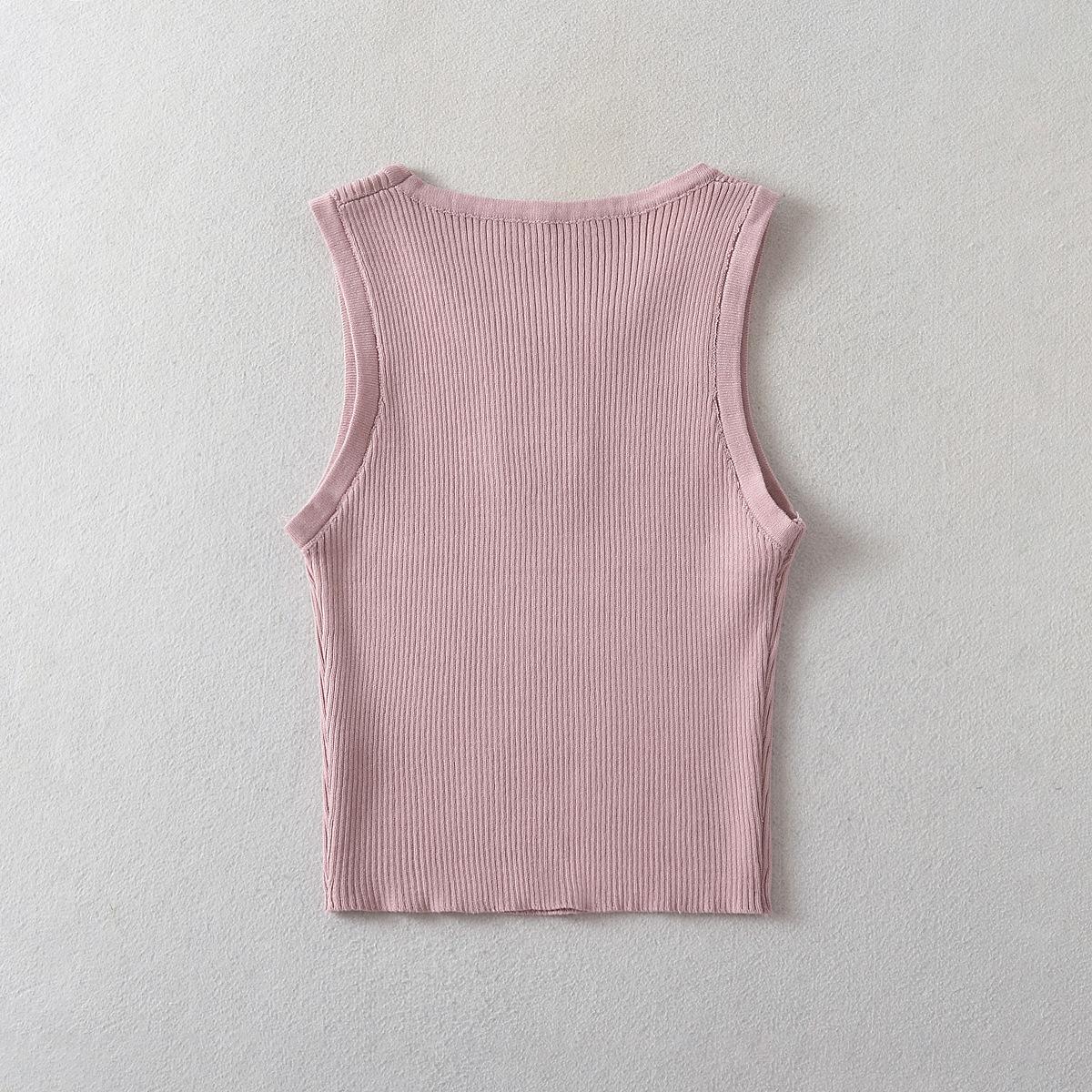 Estilo europeo y americano chica sexy Chaleco de punto casual sin mangas de cuello redondo ajustado elástico hueco de metal para mujer