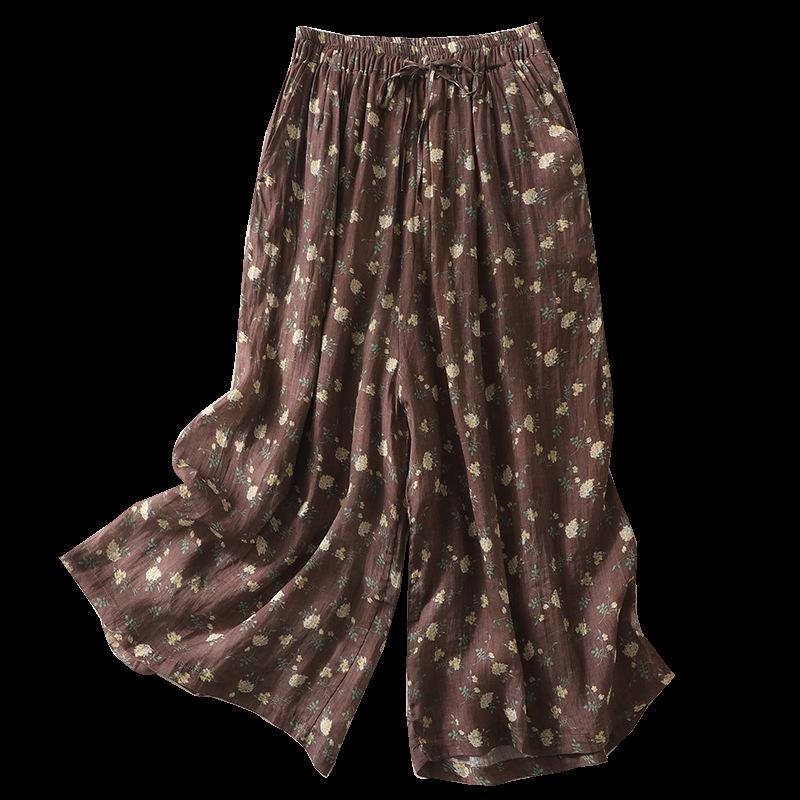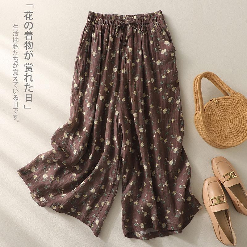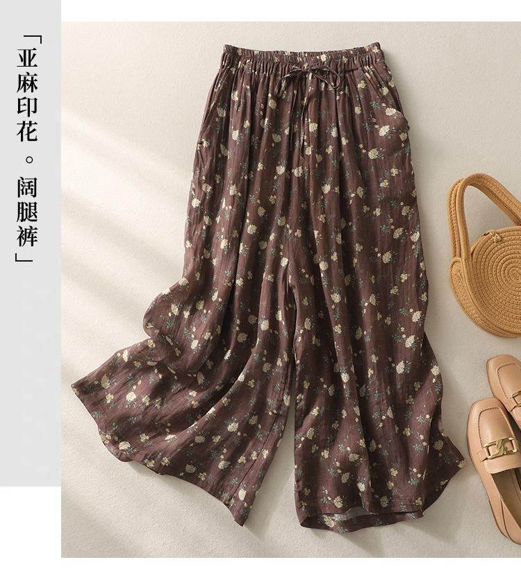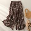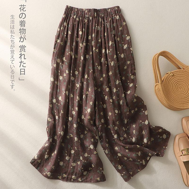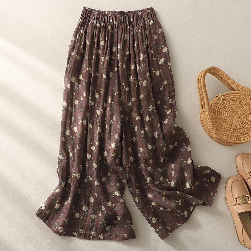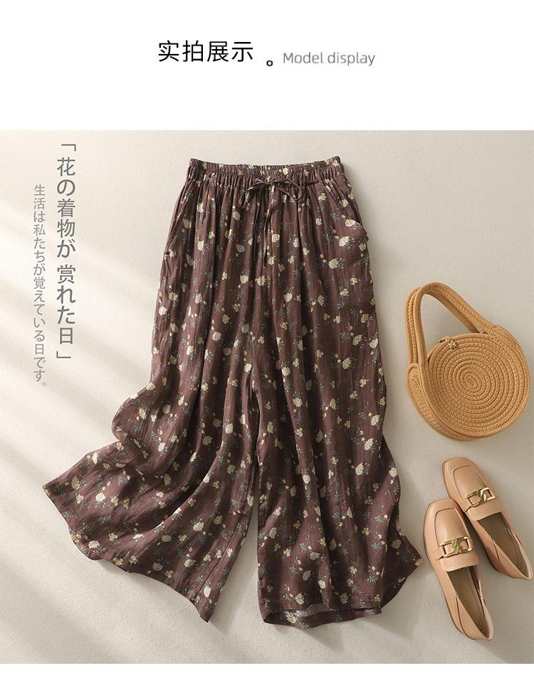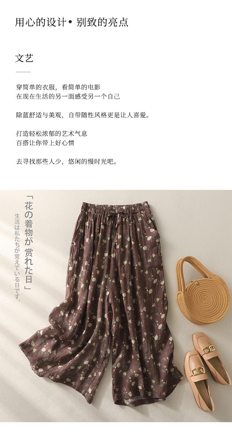 Pantalones de mujer de cintura elástica ancha de algodón y lino con tubo recto retro de nicho nuevo de primavera y verano 2024 #5320