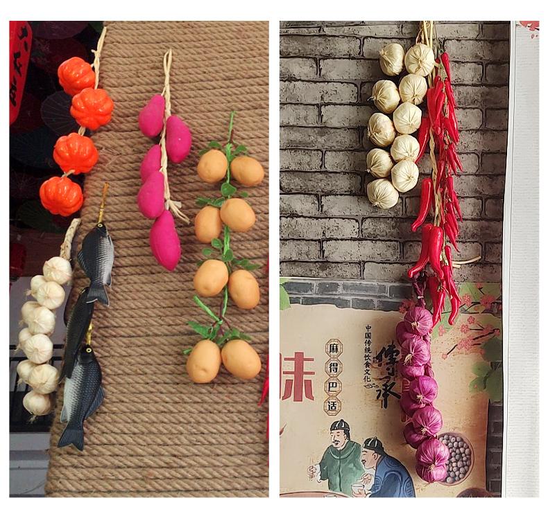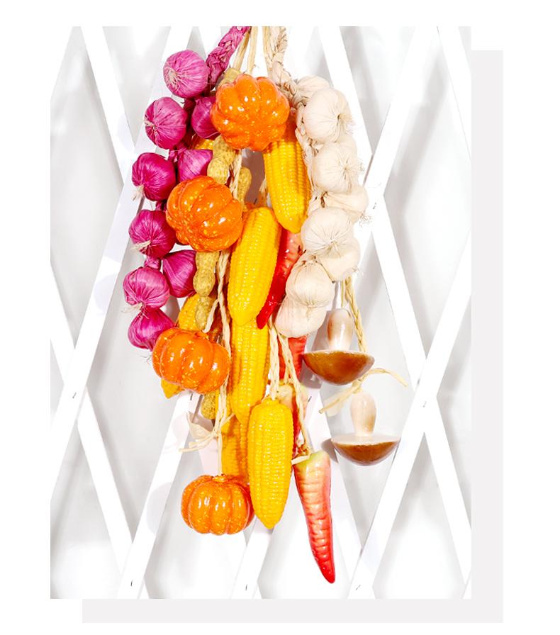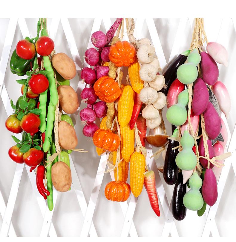 Simulación de verduras y frutas colgantes con cuerda, maíz falso, pimienta, ajo, Nongjiale, decoraciones para restaurantes, modelo de cultivo colgante