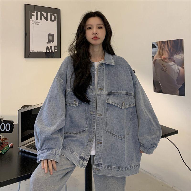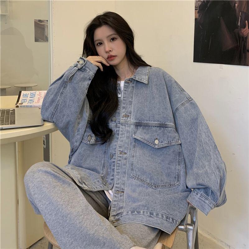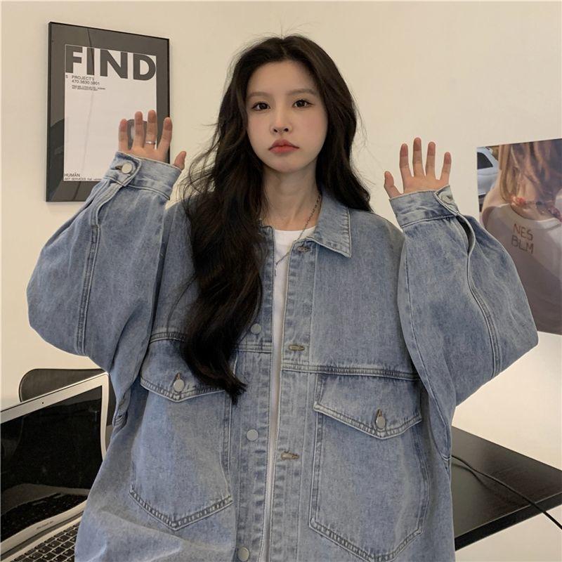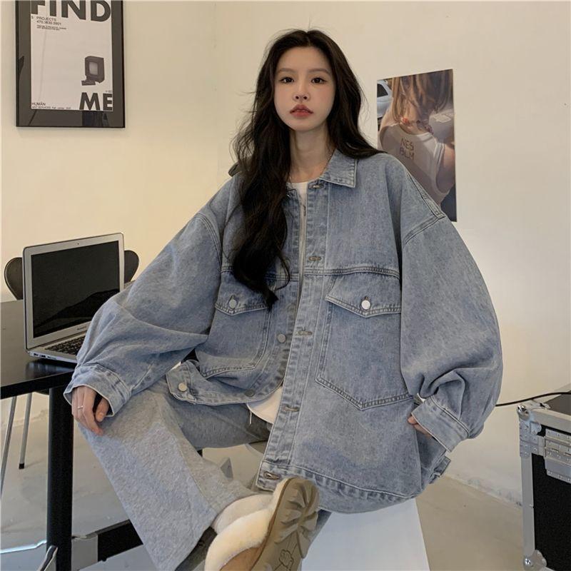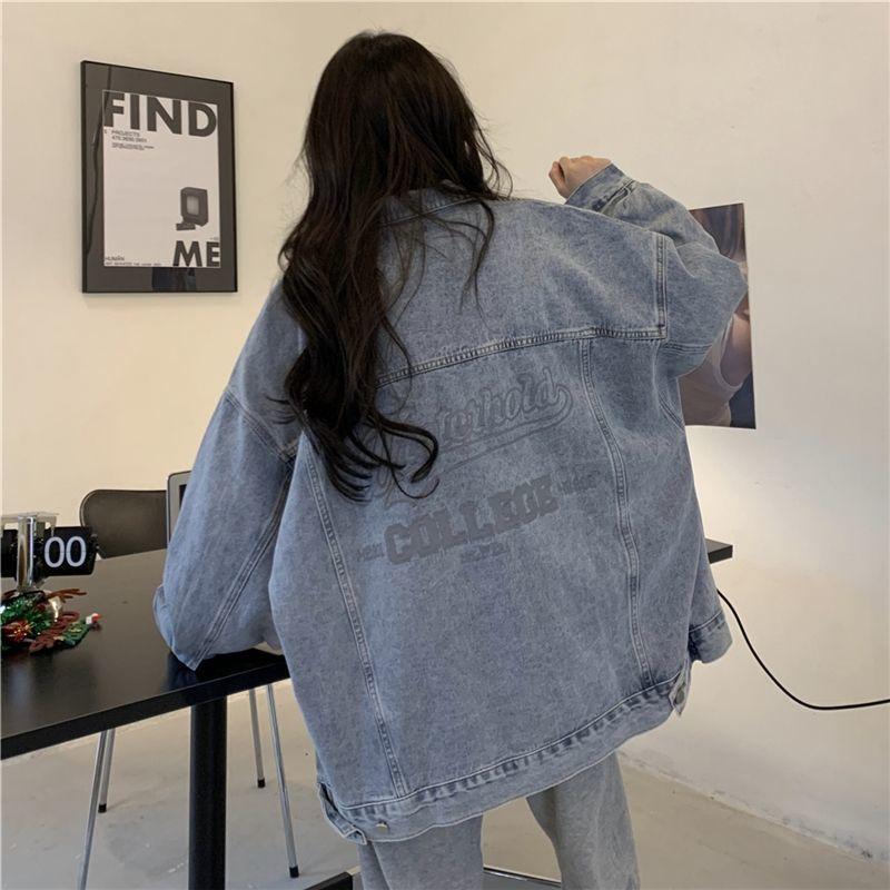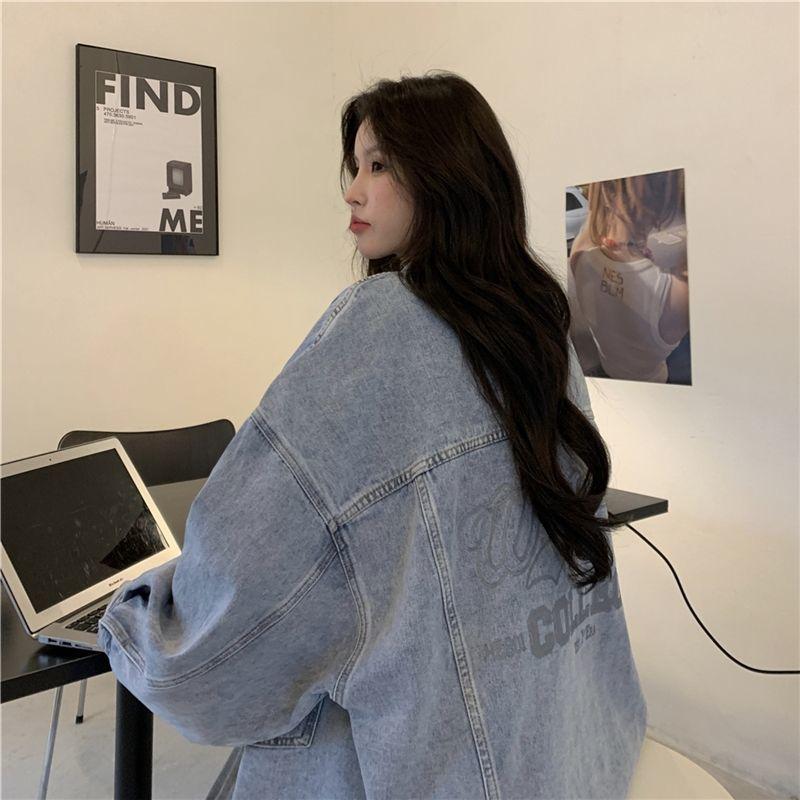 Abrigo de mezclilla para mujer, primavera y otoño, nuevo, talla grande, chica gordita, estilo retro BF, estampado de letras, diseño suelto, chaqueta superior