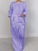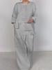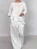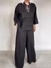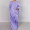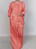 Otoño 2024 Nuevo Amazon Europeo y Americano Comercio Exterior Cuello Redondo Satén Diseño en Capas Top Traje Pantalón Pierna Ancha