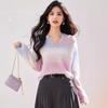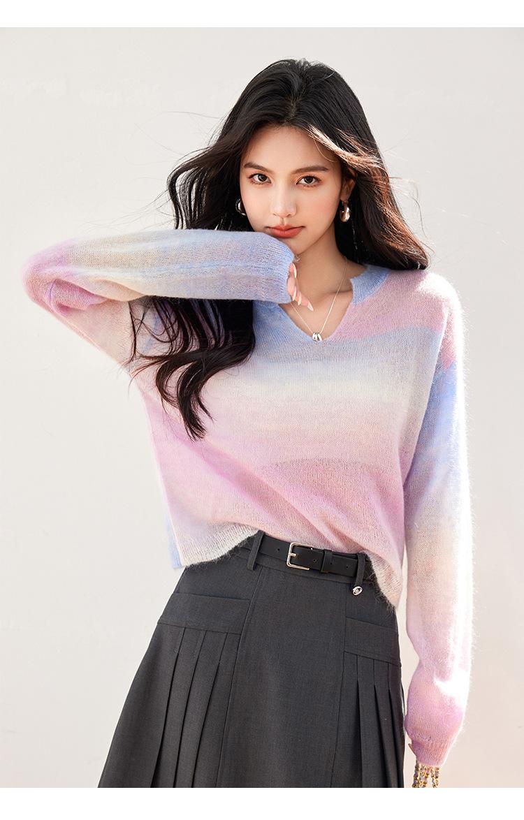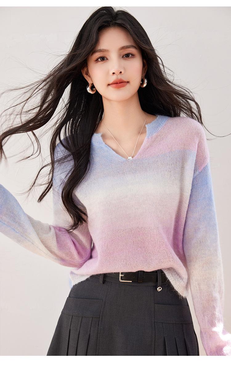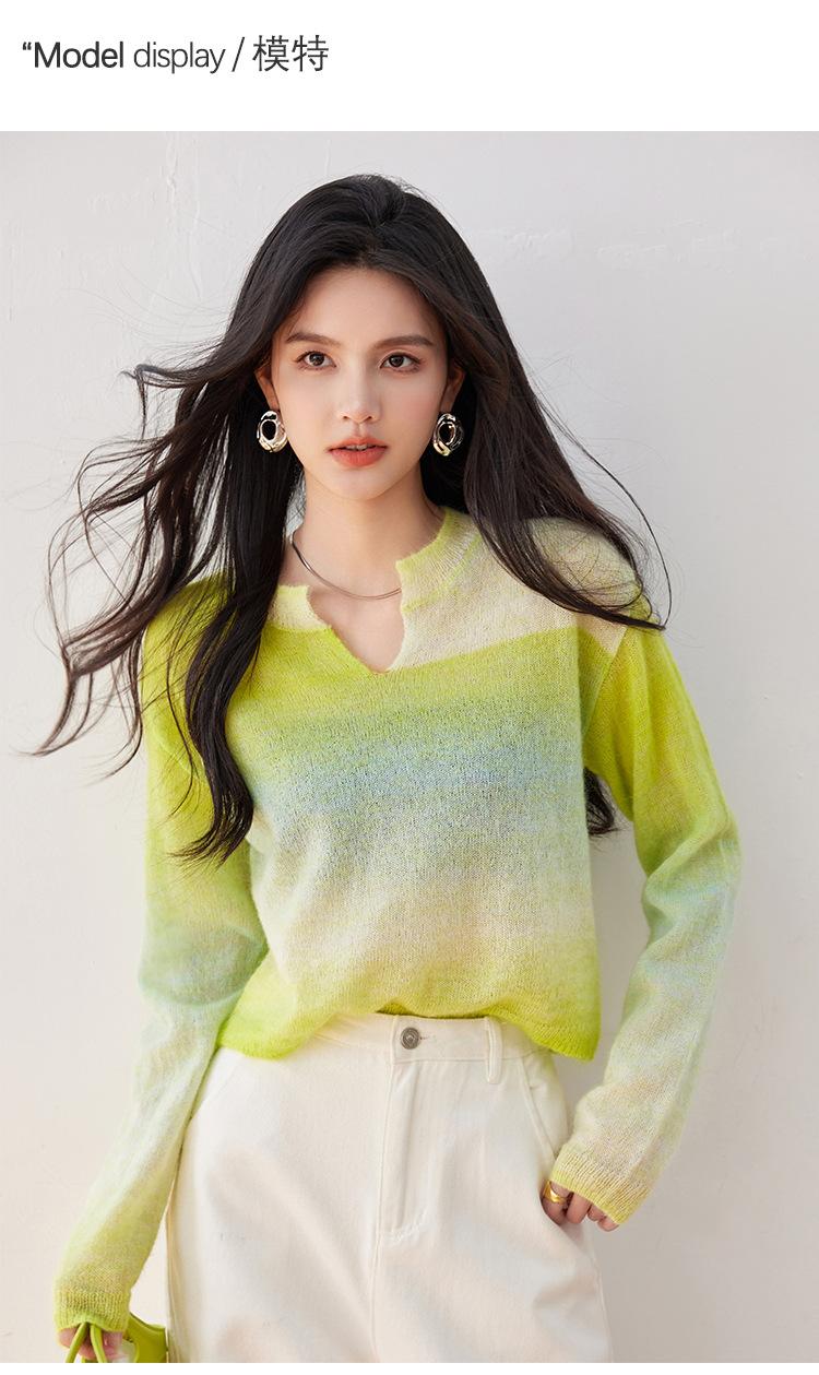 Suéter holgado con cuello medio abierto y mezcla de menta para mujer, otoño e invierno 2024