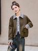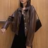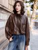 Chaqueta corta de piel de oveja para mujer, estilo coreano, holgada, de marca, primavera y otoño de 2025
