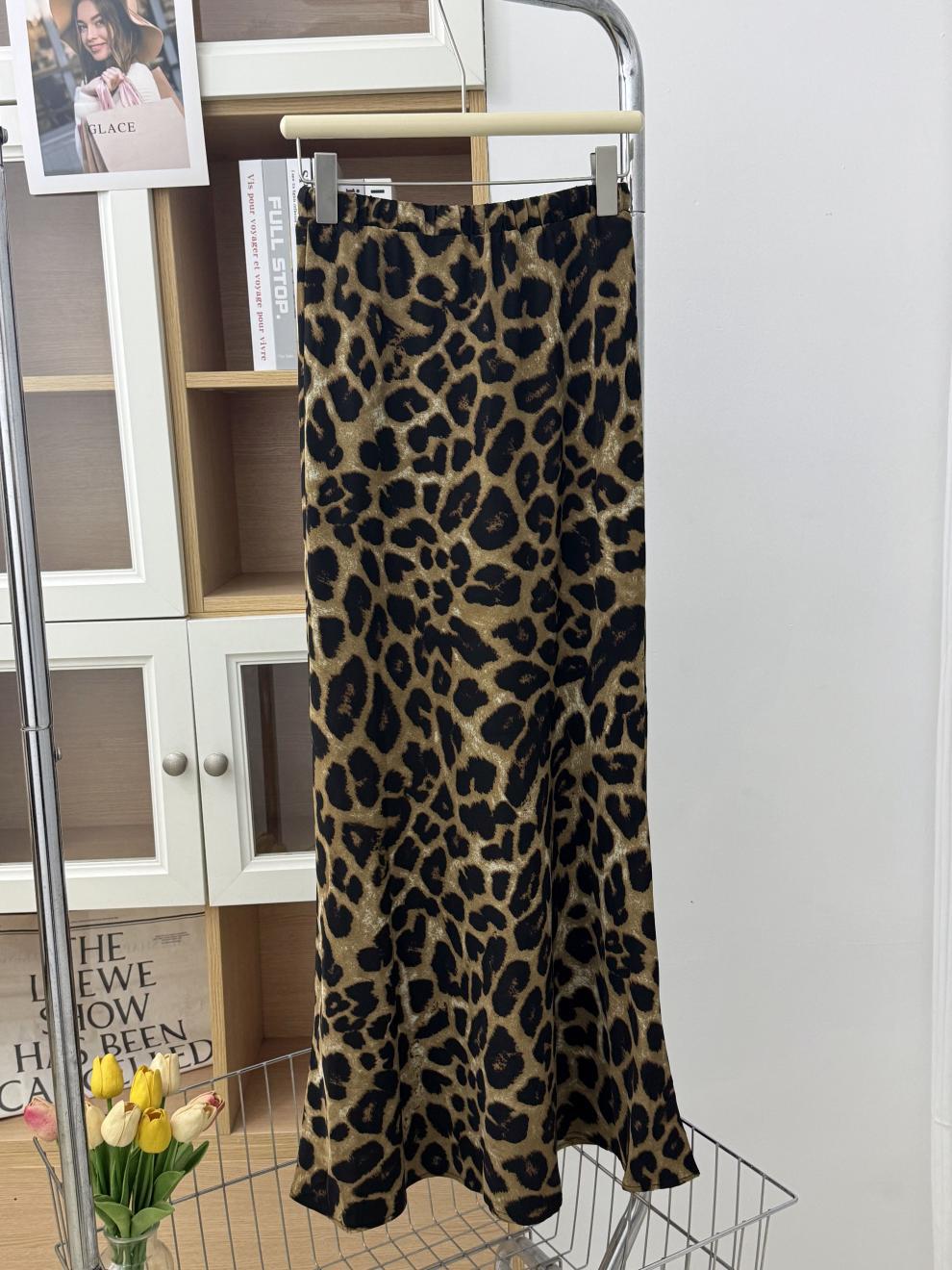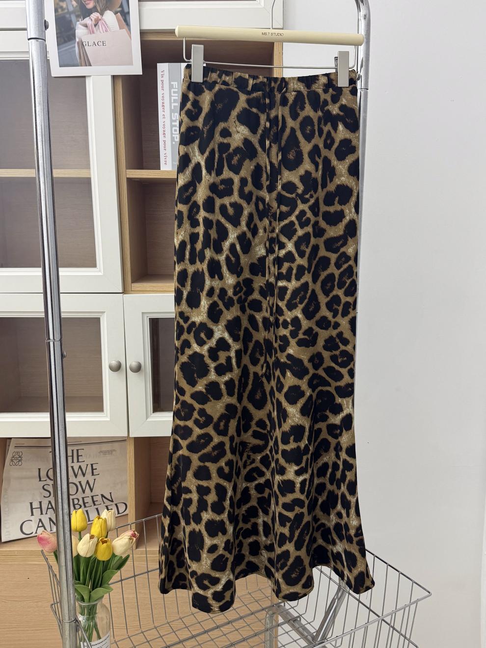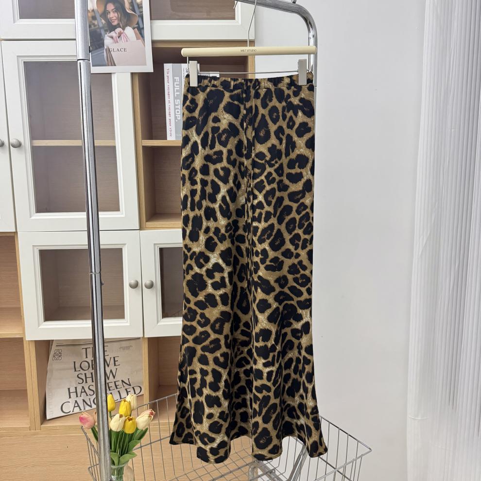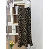 Falda con estampado de leopardo estilo europeo y americano, falda de cintura alta con cordón ajustable en la cadera, falda de longitud media, falda de cola de pez de gasa