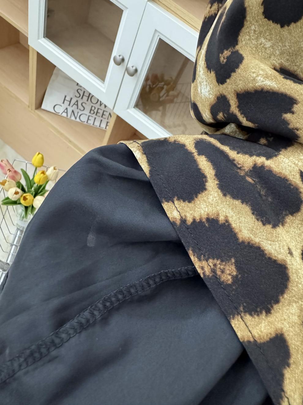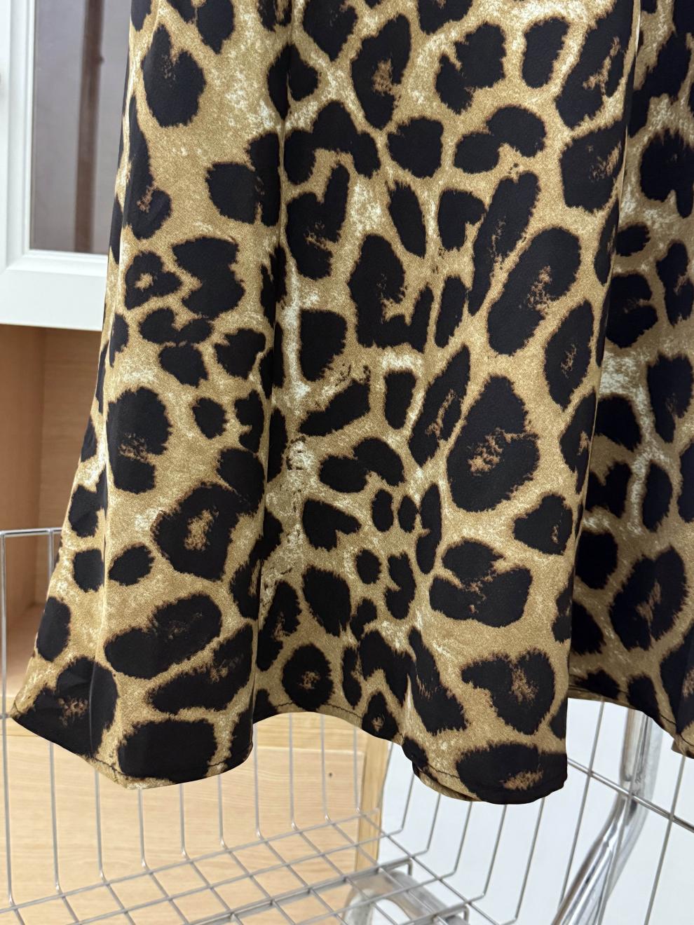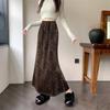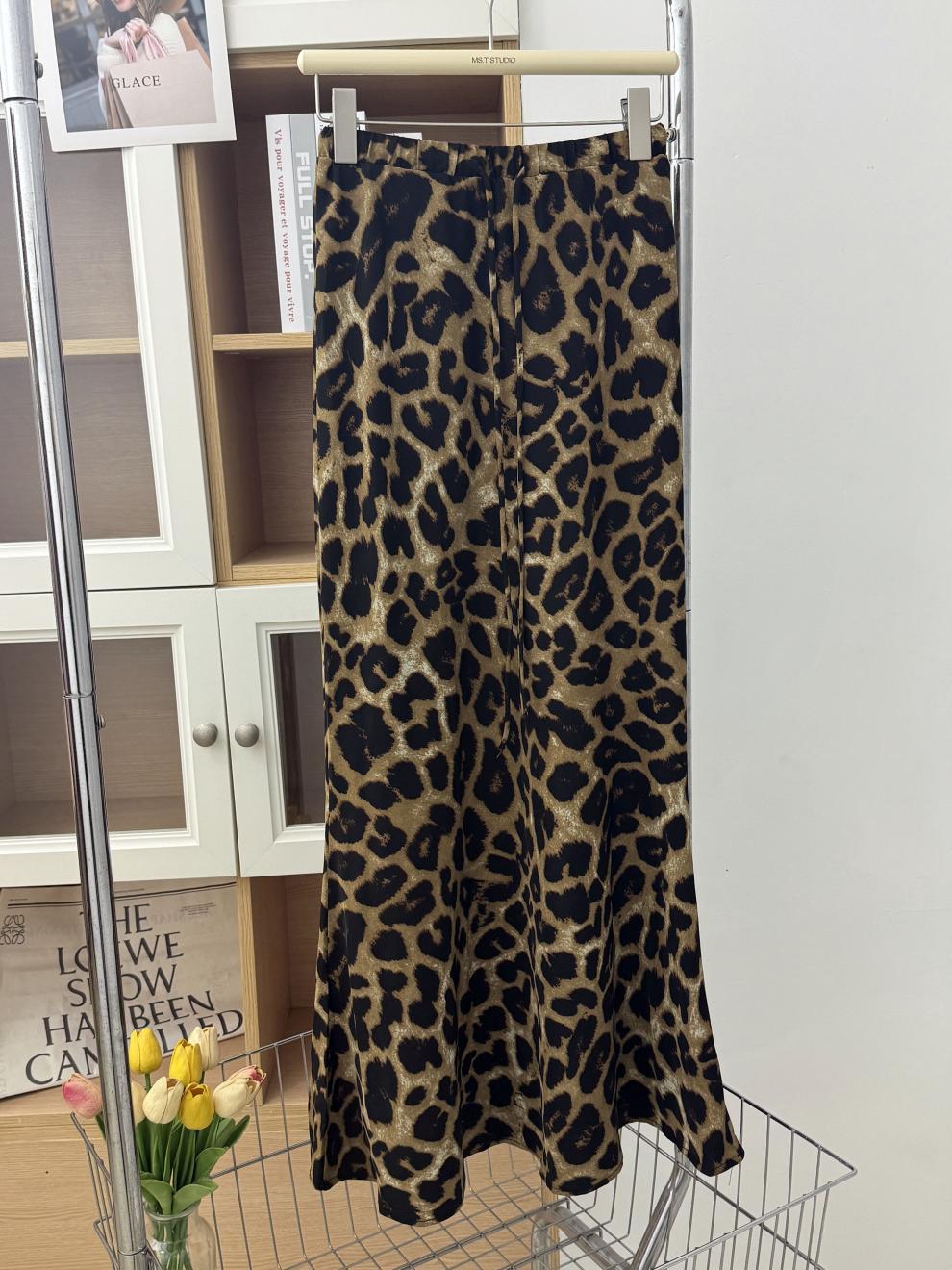 Falda con estampado de leopardo estilo europeo y americano, falda de cintura alta con cordón ajustable en la cadera, falda de longitud media, falda de cola de pez de gasa