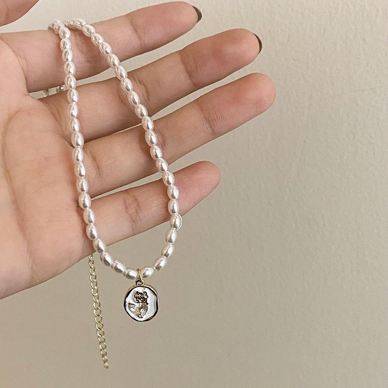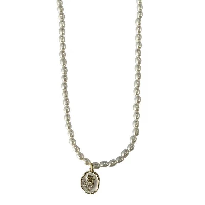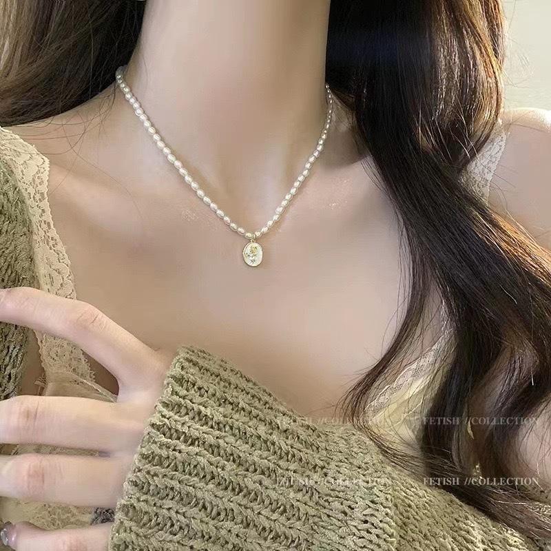 Collar de Perlas con Colgante de Rosa Vintage Estilo Francés para Mujer, Diseño Nicho Elegante de Lujo Ligero, Cadena Clavicular de Alta Gama