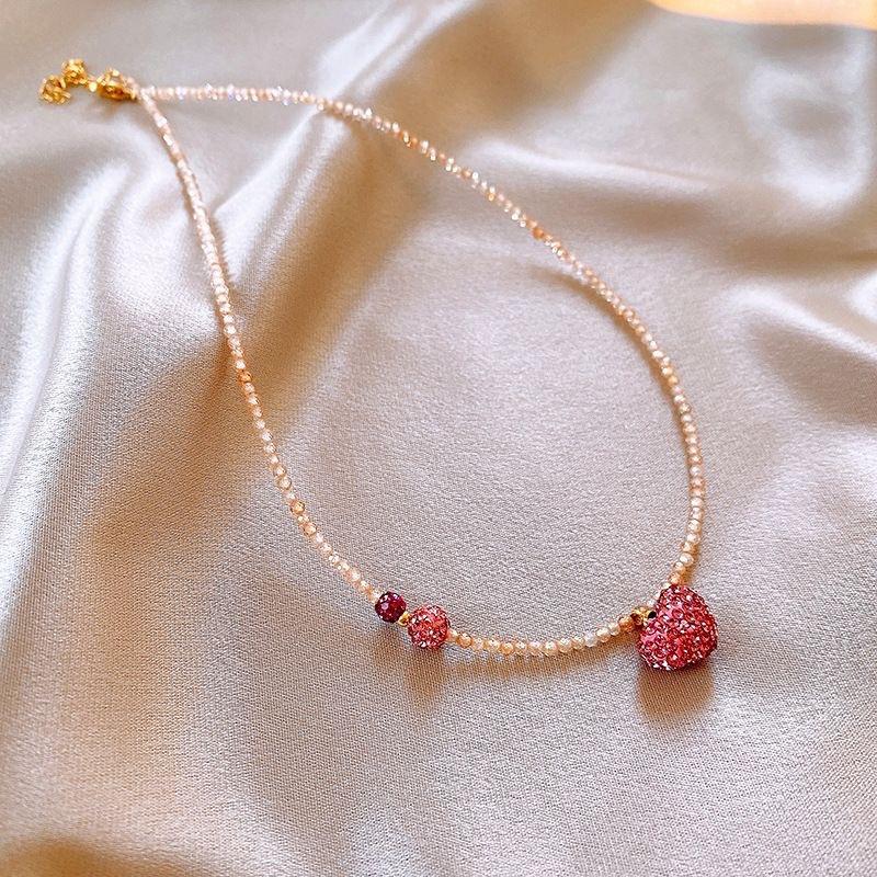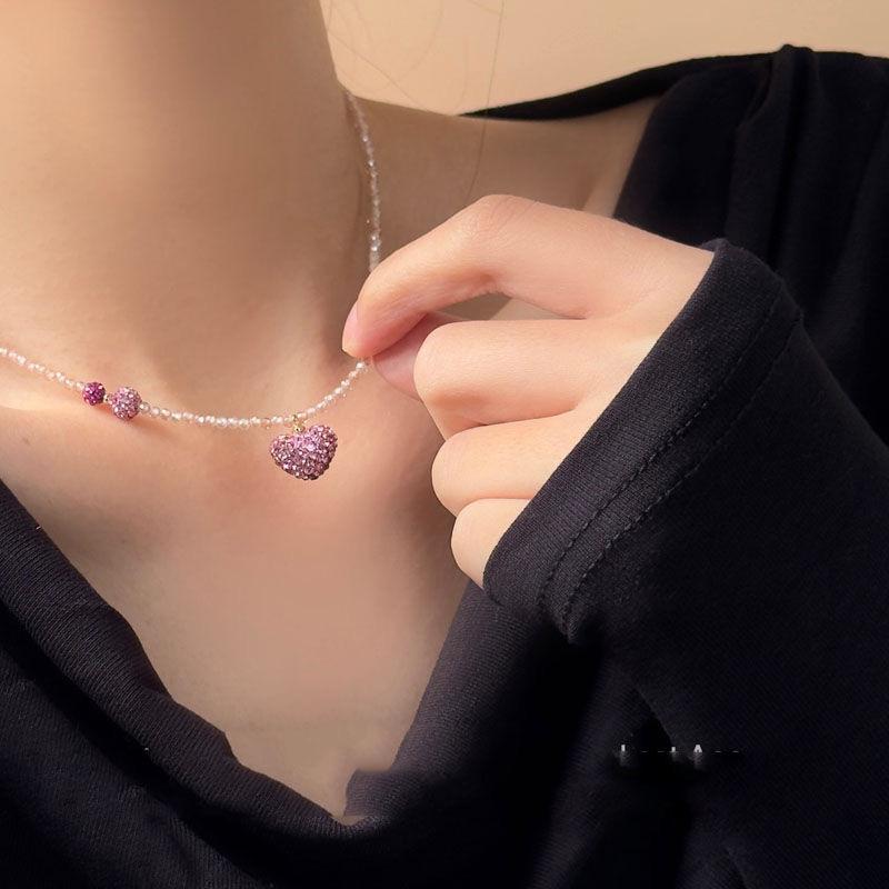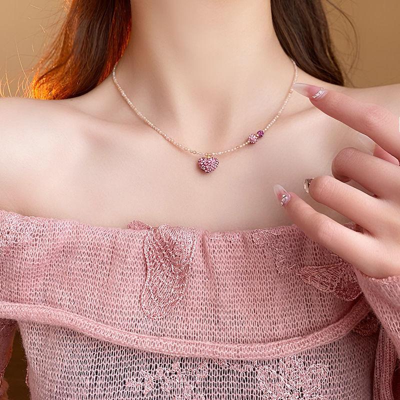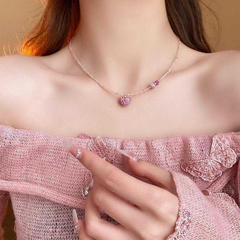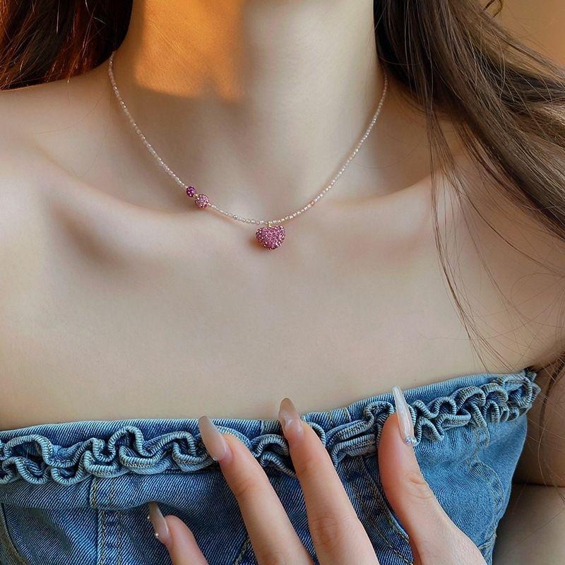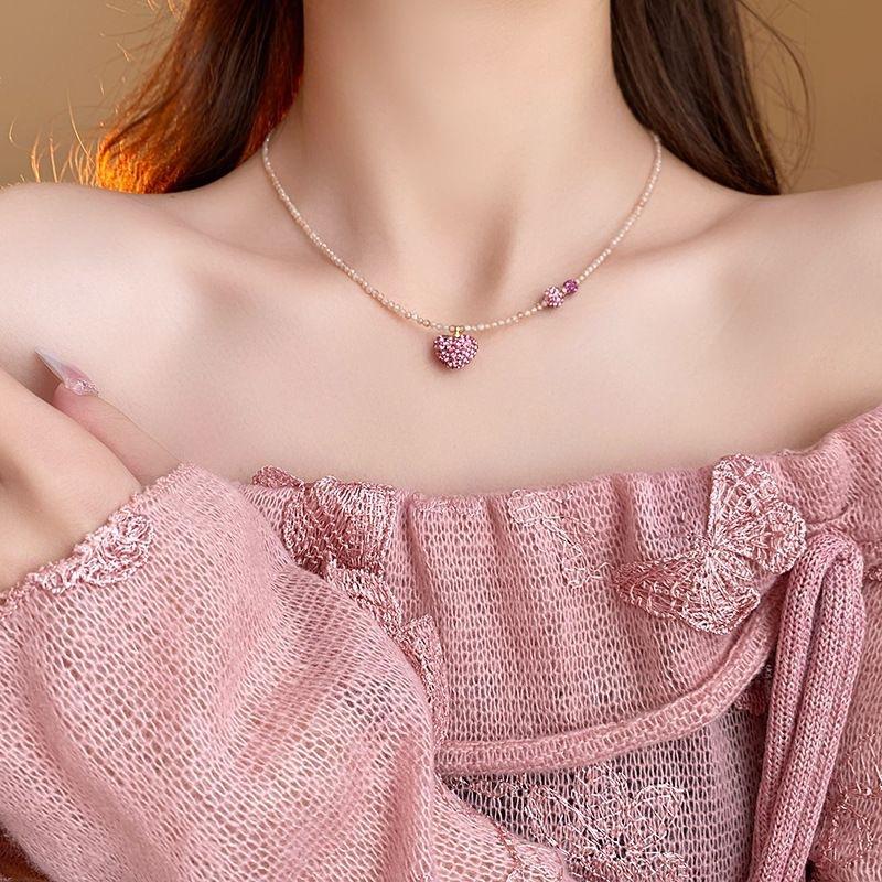 Collar de Diamante Amor Cristal Rosa Moda Versátil Diseño Dulce Cadena Clavícula Elegante Lujo Ligero Nuevo Collar Mujer