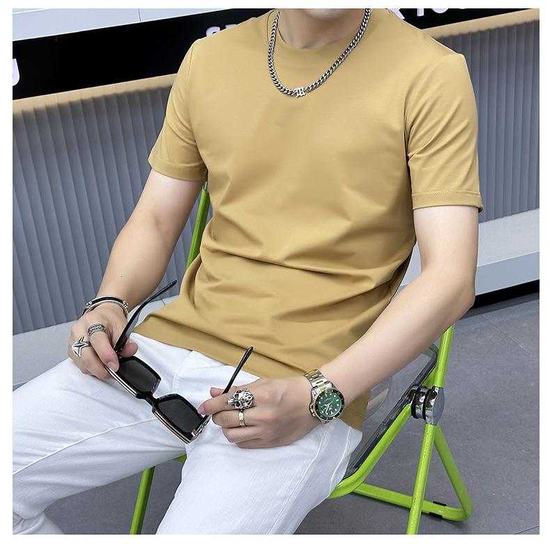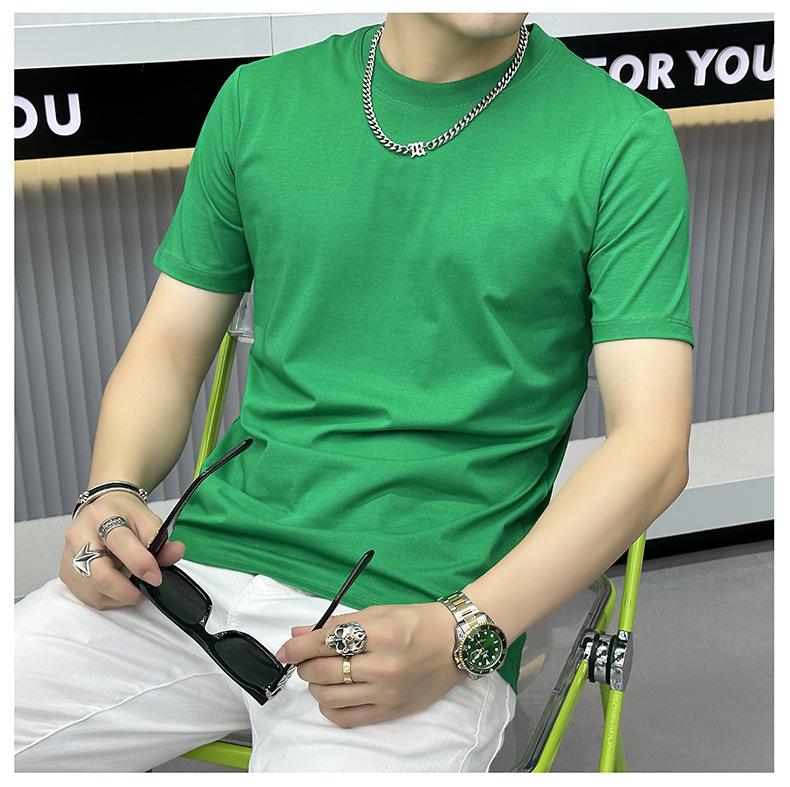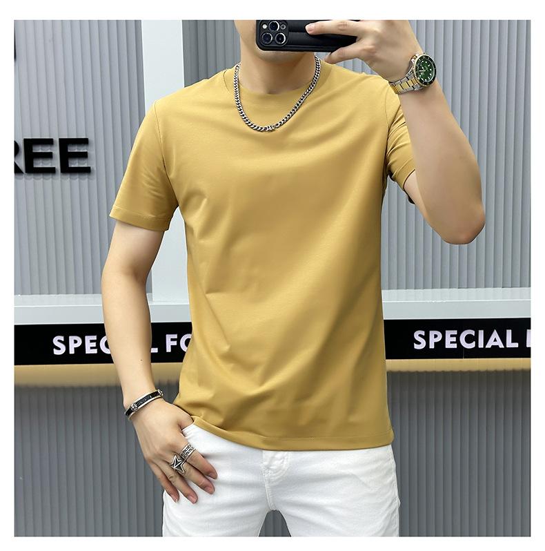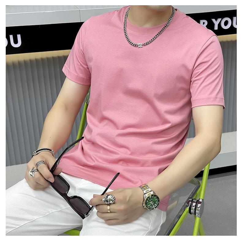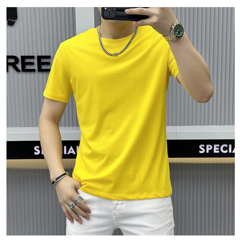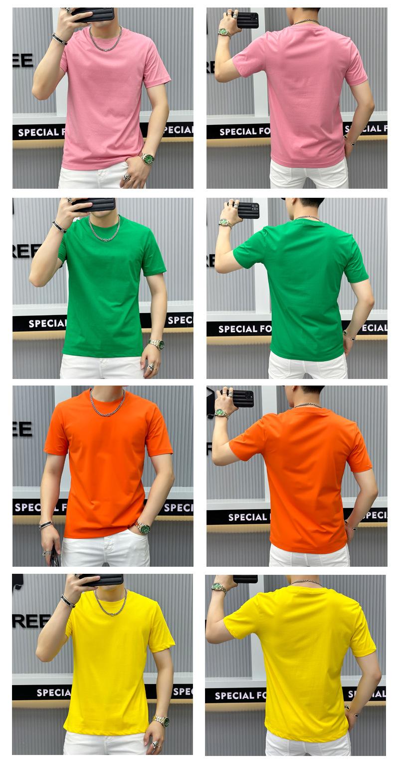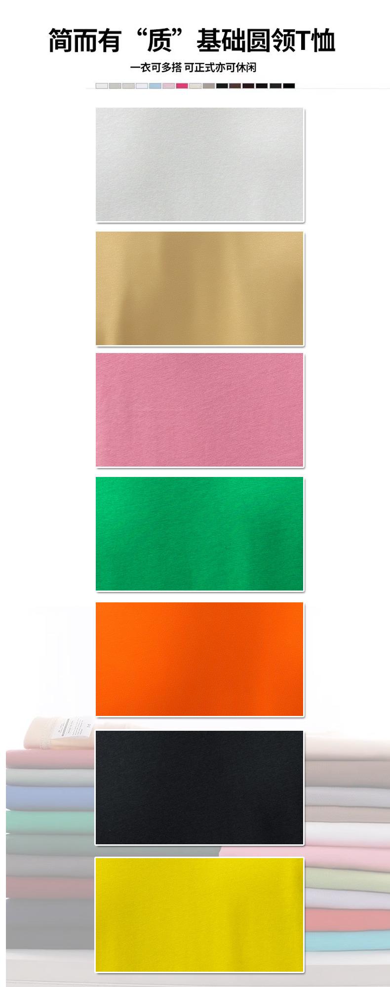 Camiseta de algodón mercerizado de color sólido, versátil y sencilla, camiseta de verano multicolor.