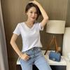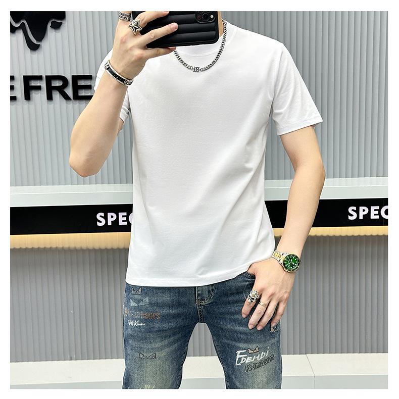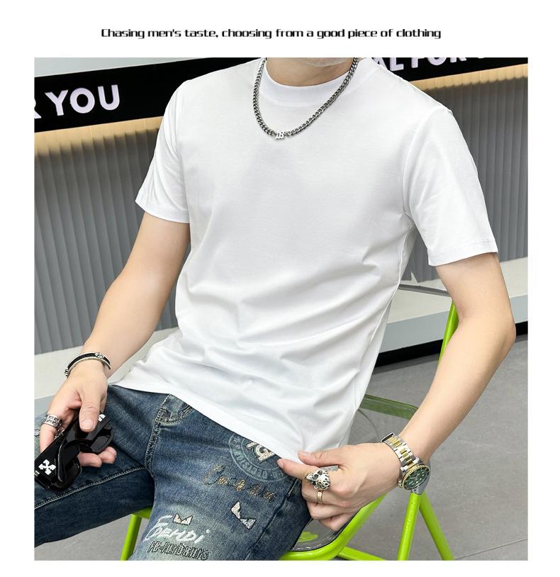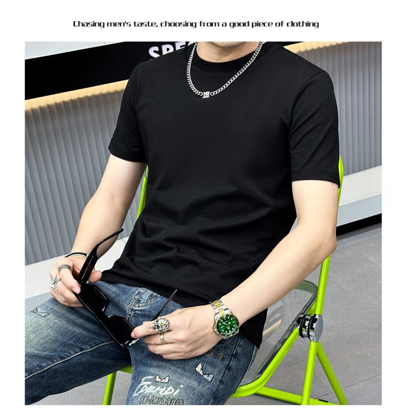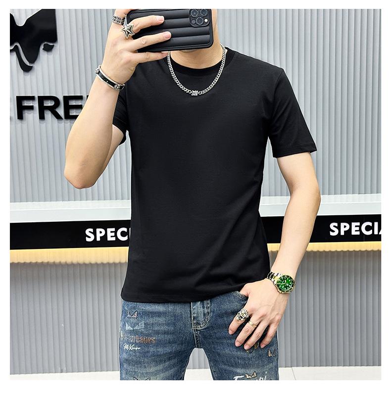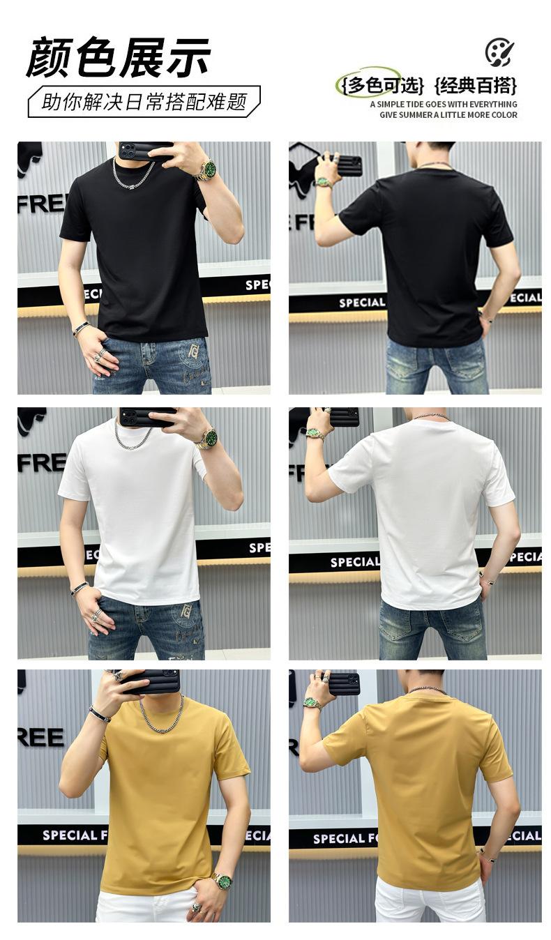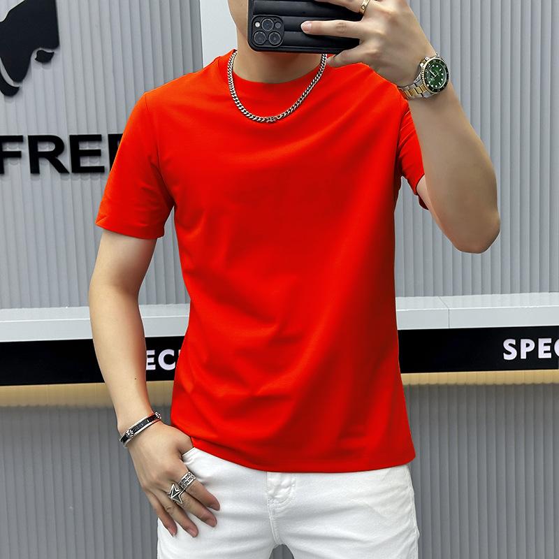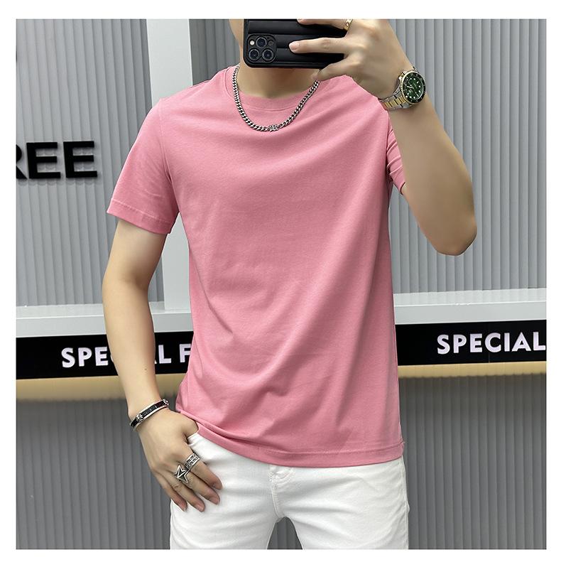 Camiseta de algodón mercerizado de color sólido, versátil y sencilla, camiseta de verano multicolor.