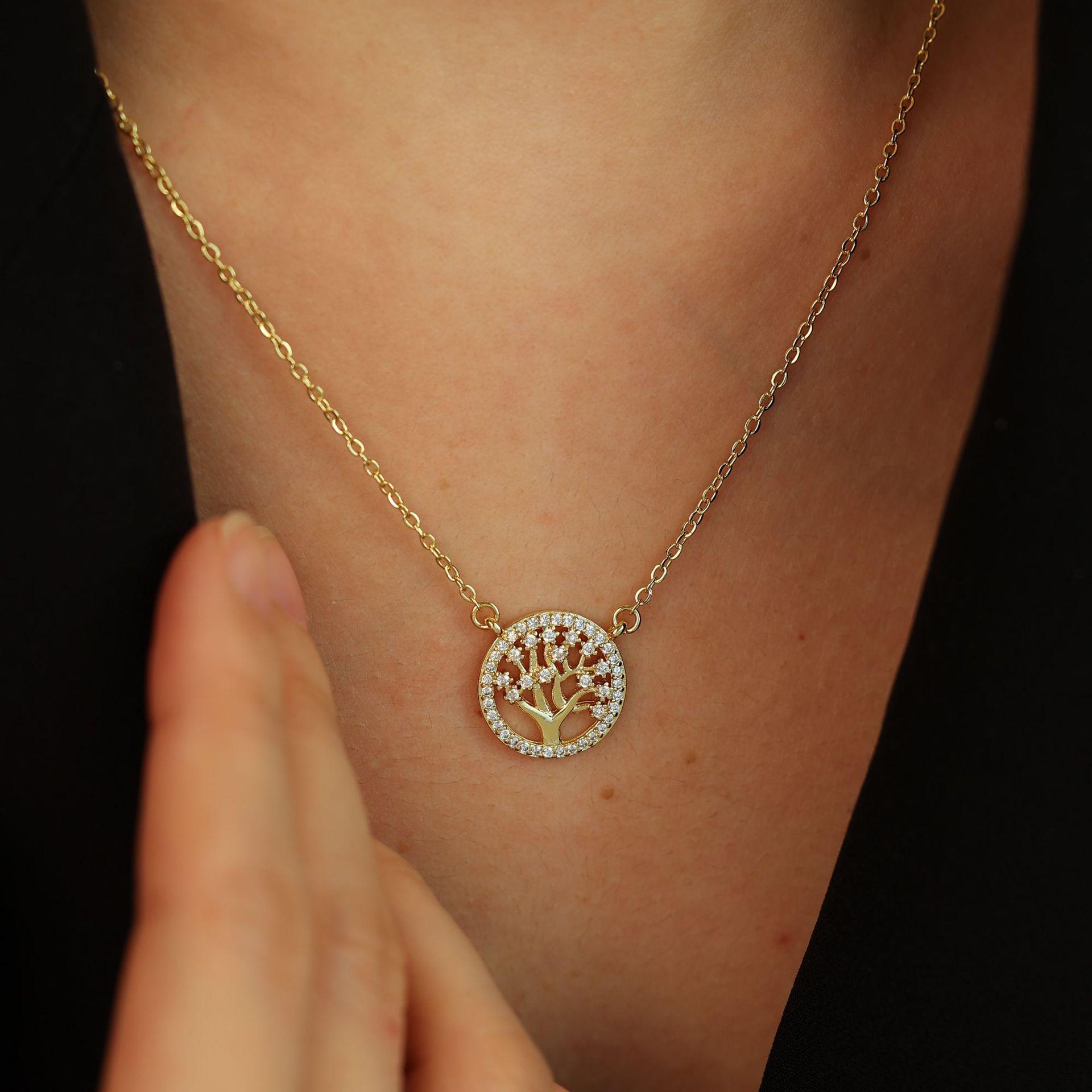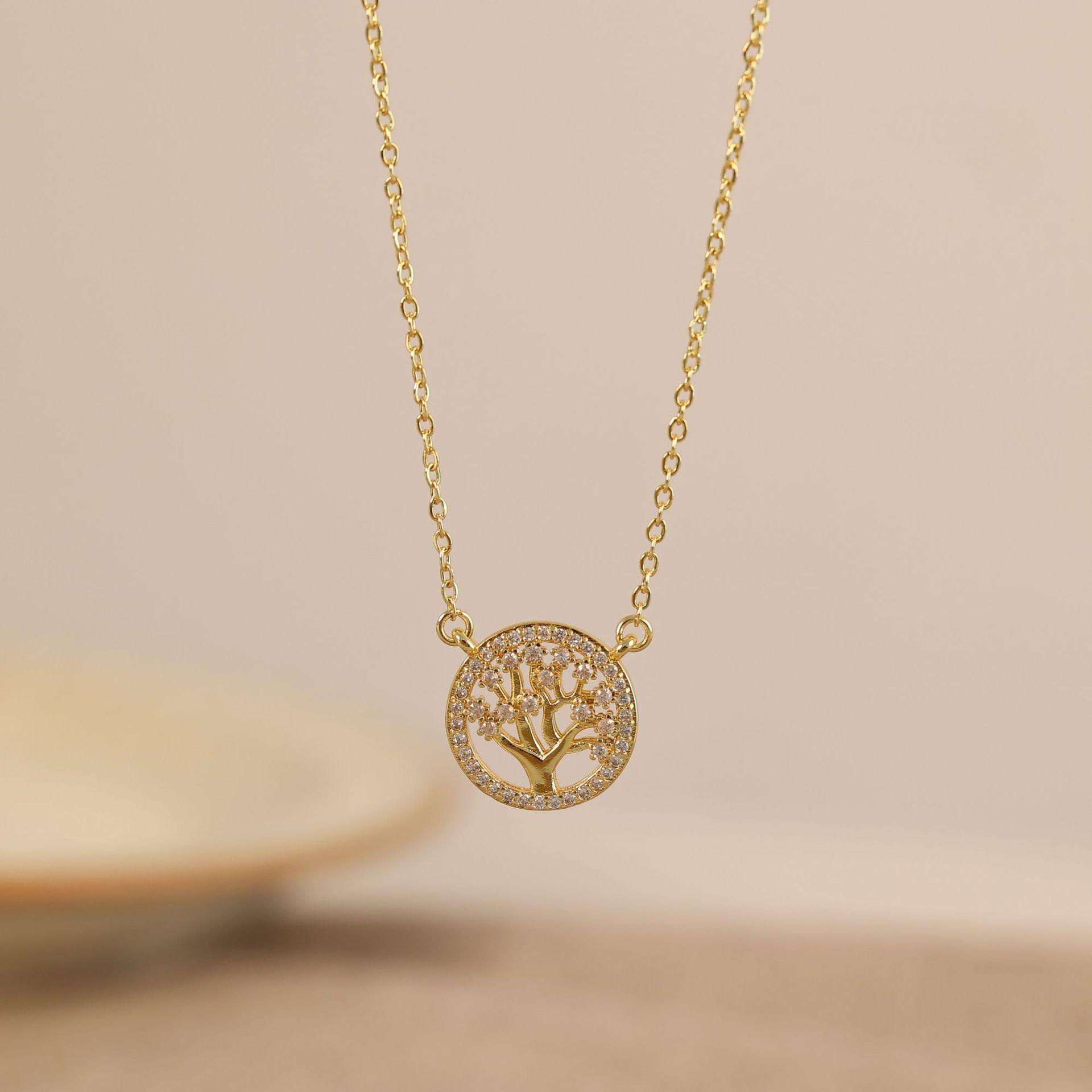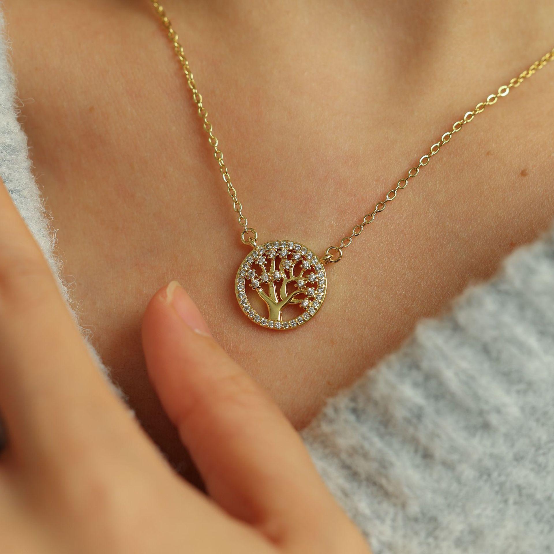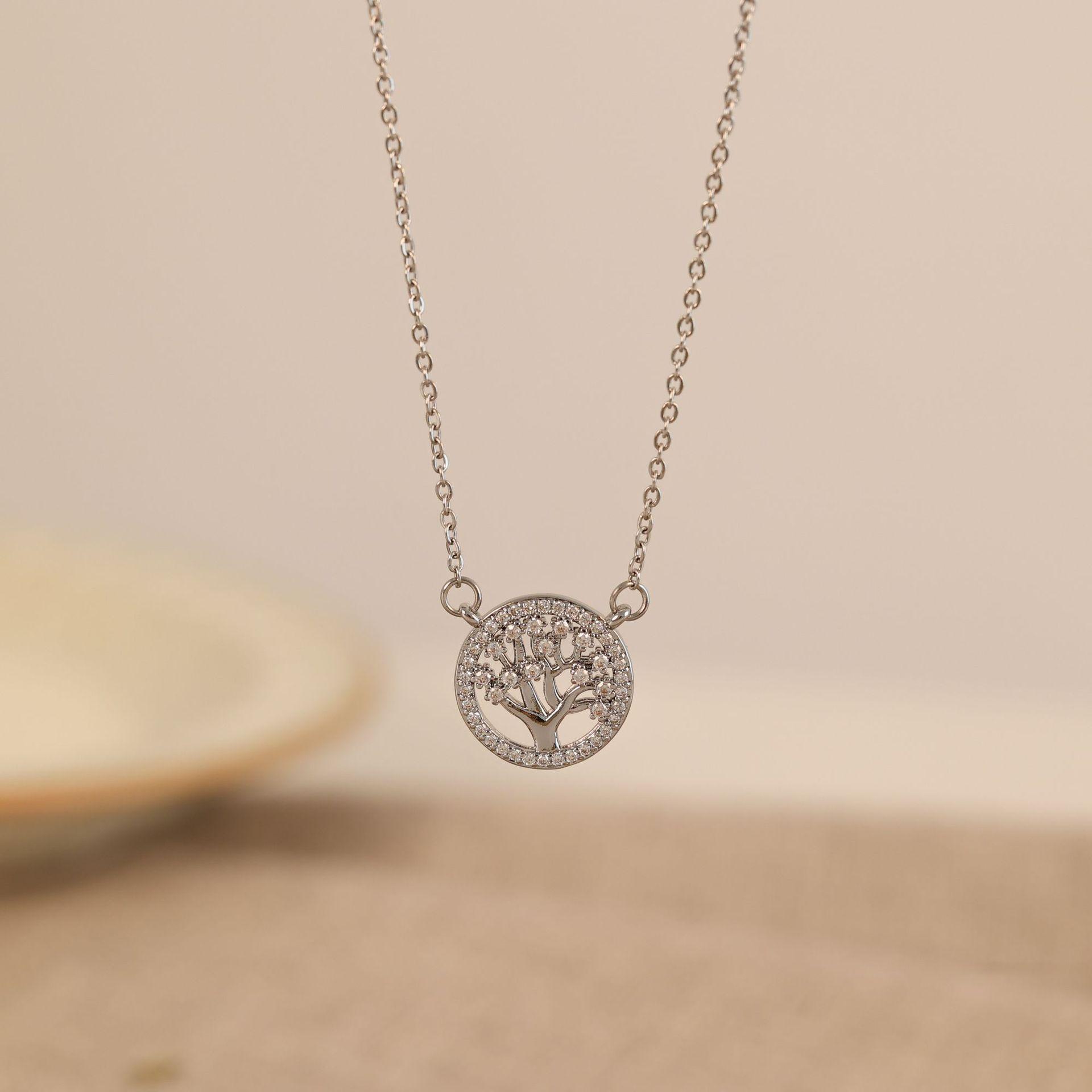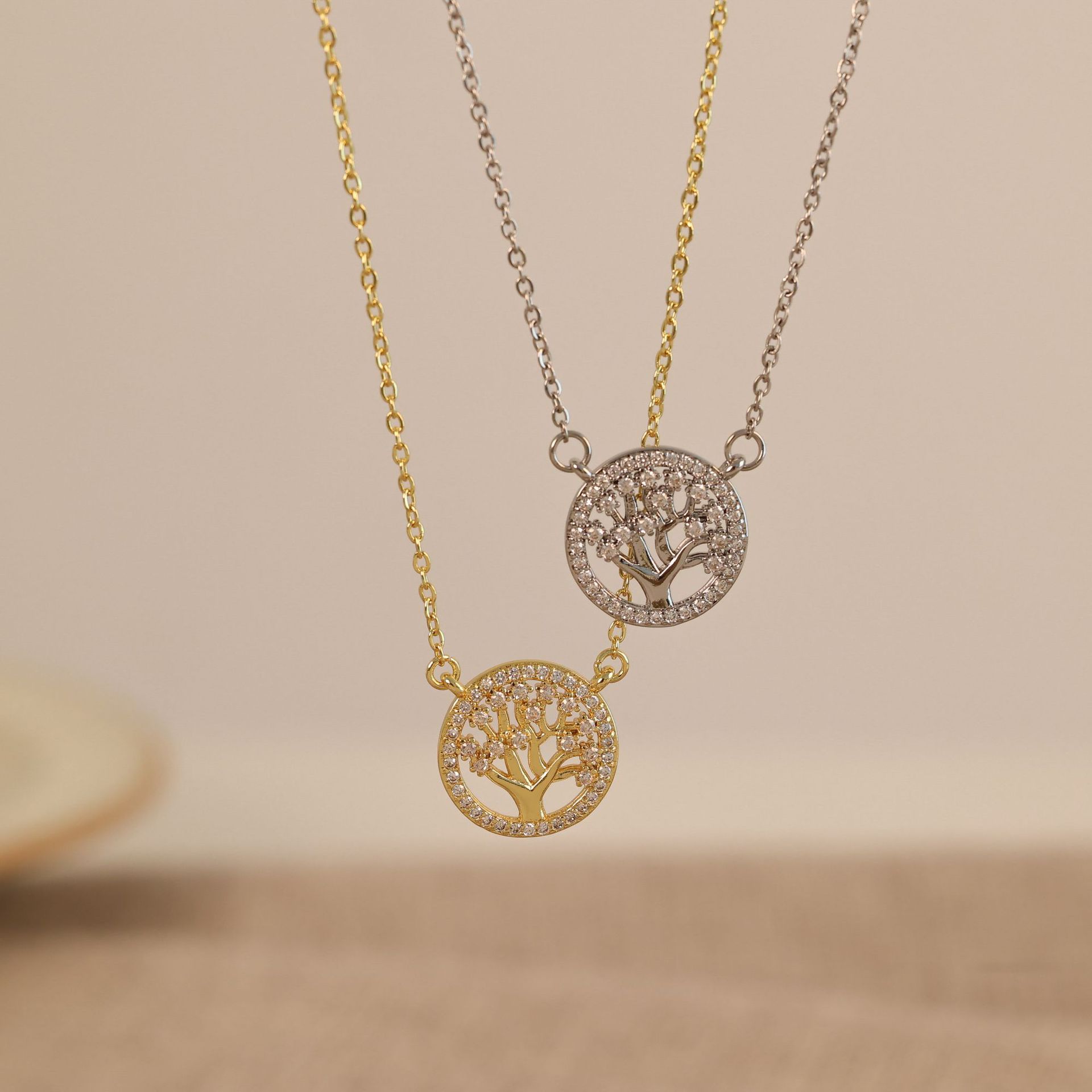 Collar Árbol de la Vida para Mujer Micro-incrustado Diamante Completo Zircón Estilo Europeo y Americano Personalidad Colgante Árbol de la Paz Explosión de Amazon Cadena Clavicular