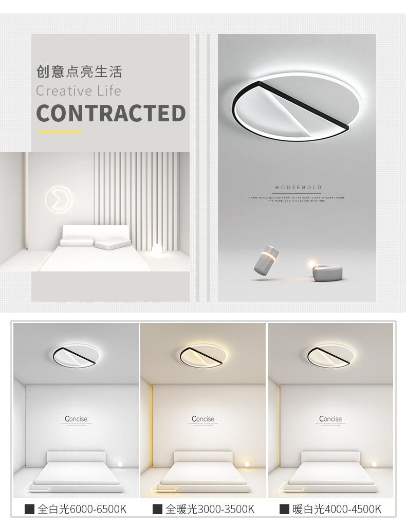Lámpara de techo LED redonda cálida, creativa y minimalista, para dormitorio principal, moderna y sencilla, para sala de estar, comedor y estudio.