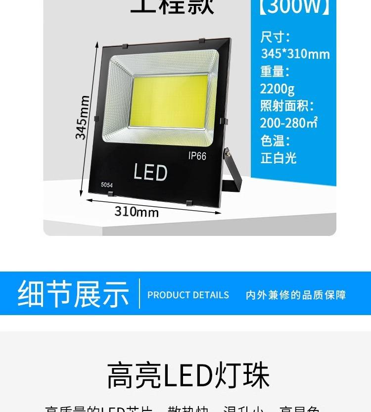 Reflector Cob Diamante Negro Led Exterior Impermeable Reflector de Alta Potencia Proyección de Valla Publicitaria Luz Publicitaria de Túnel Luz Fuerte