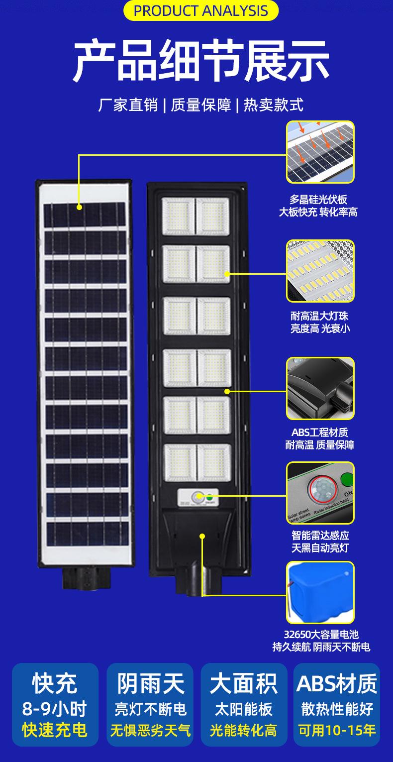 Portalámparas solar integrado para exteriores, lámpara de jardín doméstica, lámpara de iluminación de inducción, lámpara de camino rural, venta al por mayor