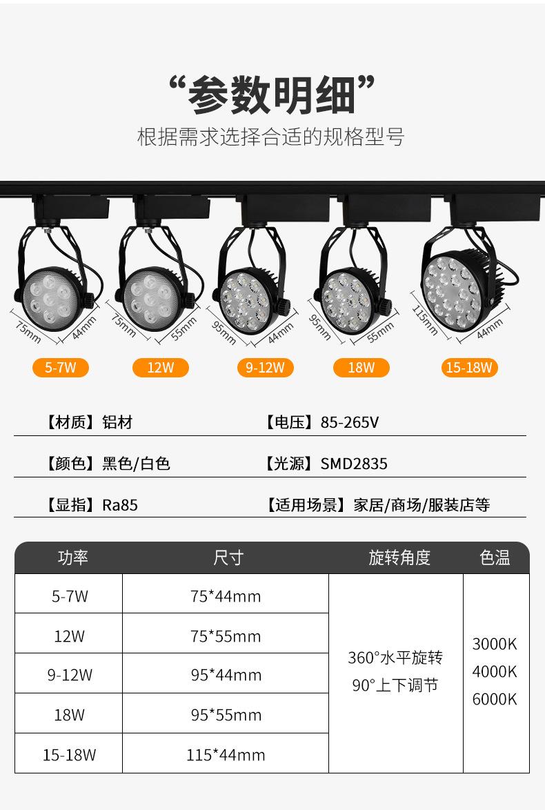 Luz LED de riel de voltaje amplio 110V para comercio exterior SMD tienda de ropa exposición foco de brazo luz de riel