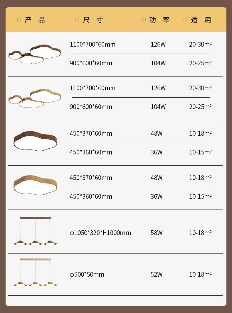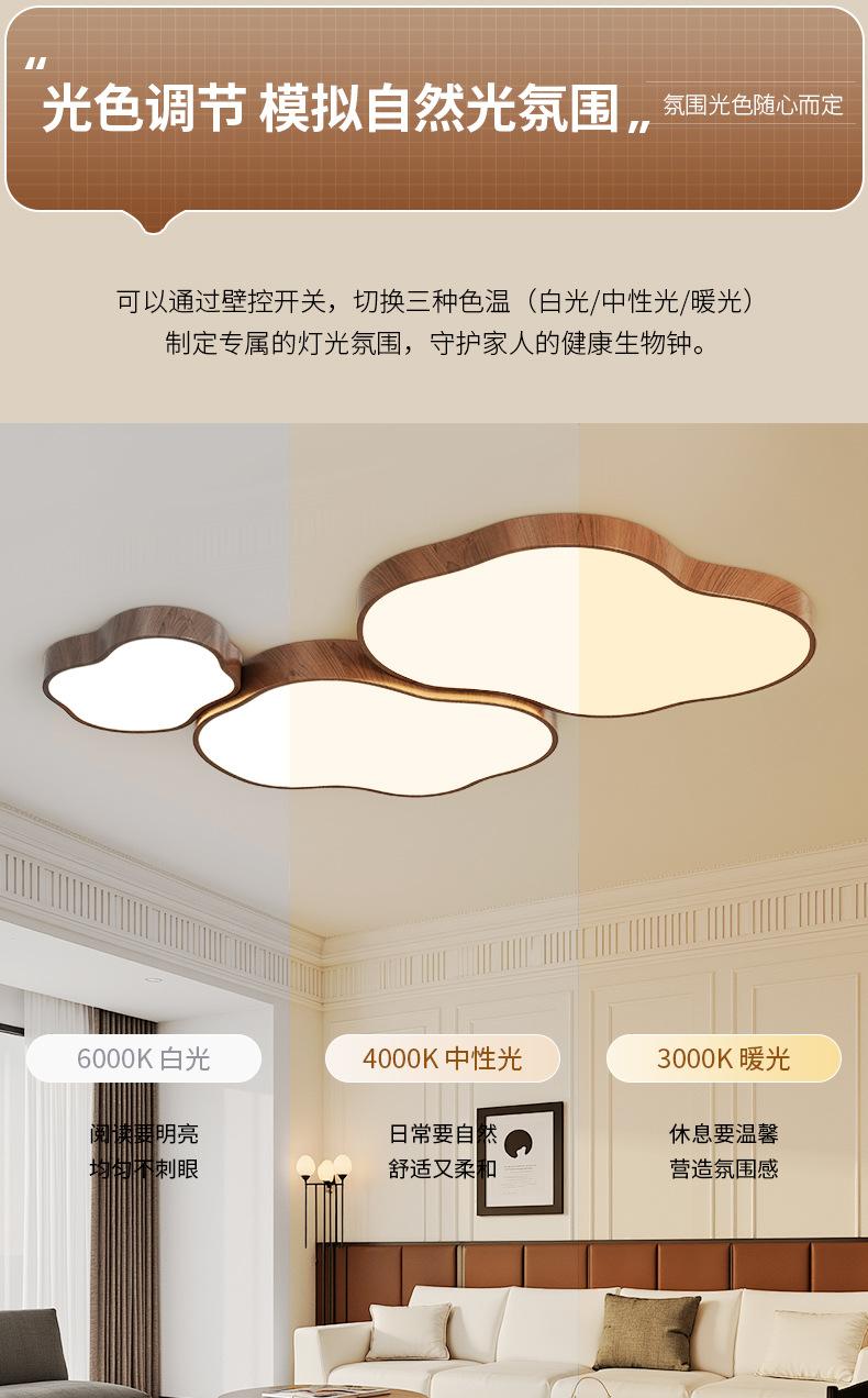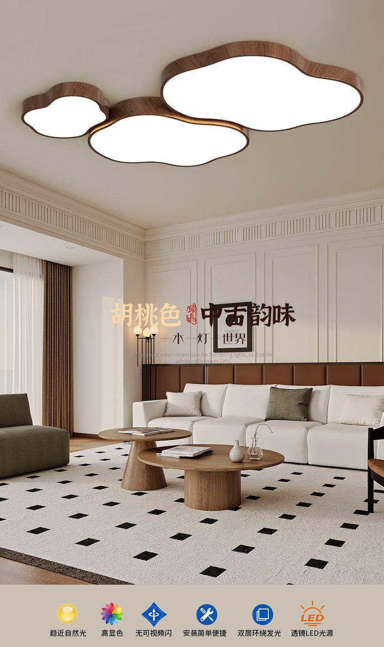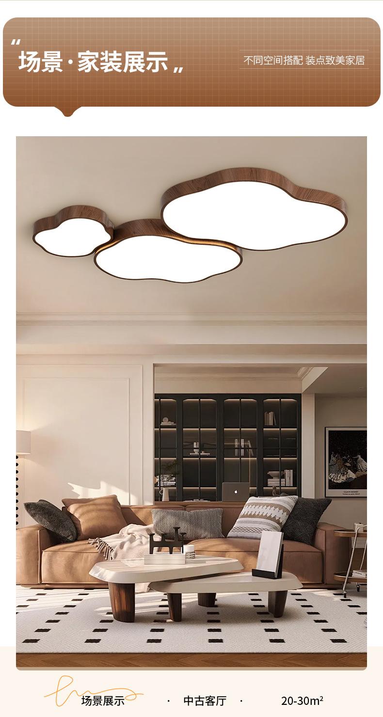 Lámpara de techo lámpara de sala de estar retro nube color nogal espectro completo protección ocular toda la casa lámpara de dormitorio estudio lámpara led