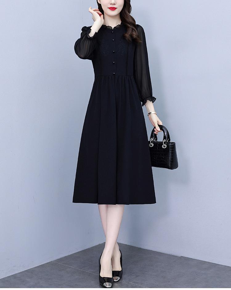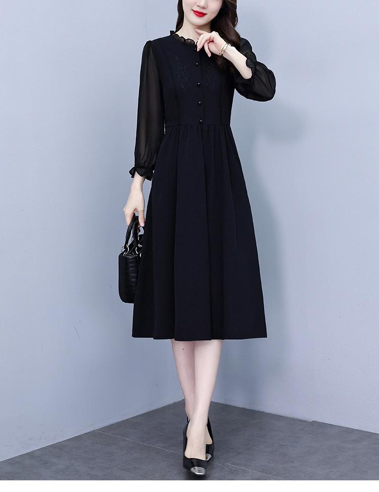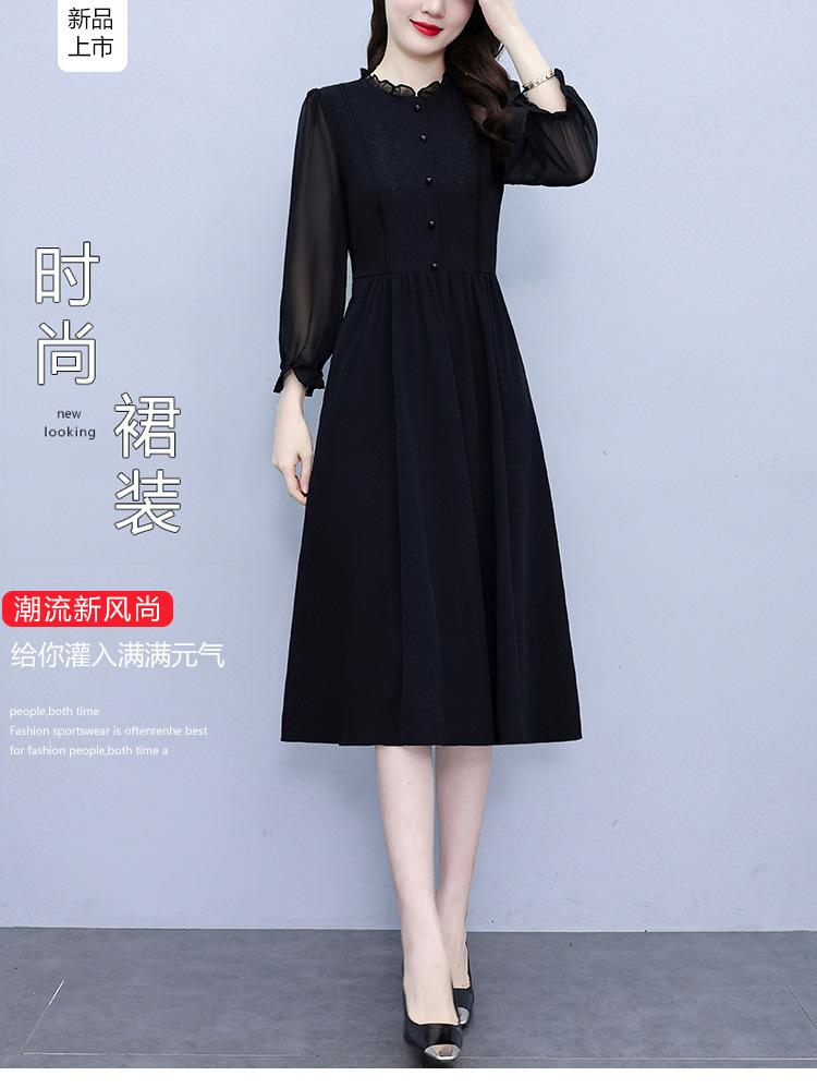Vestido de seda para mujer, primavera y verano, falda larga de seda morera, falda de gasa negra, alta, elegante, adelgazante