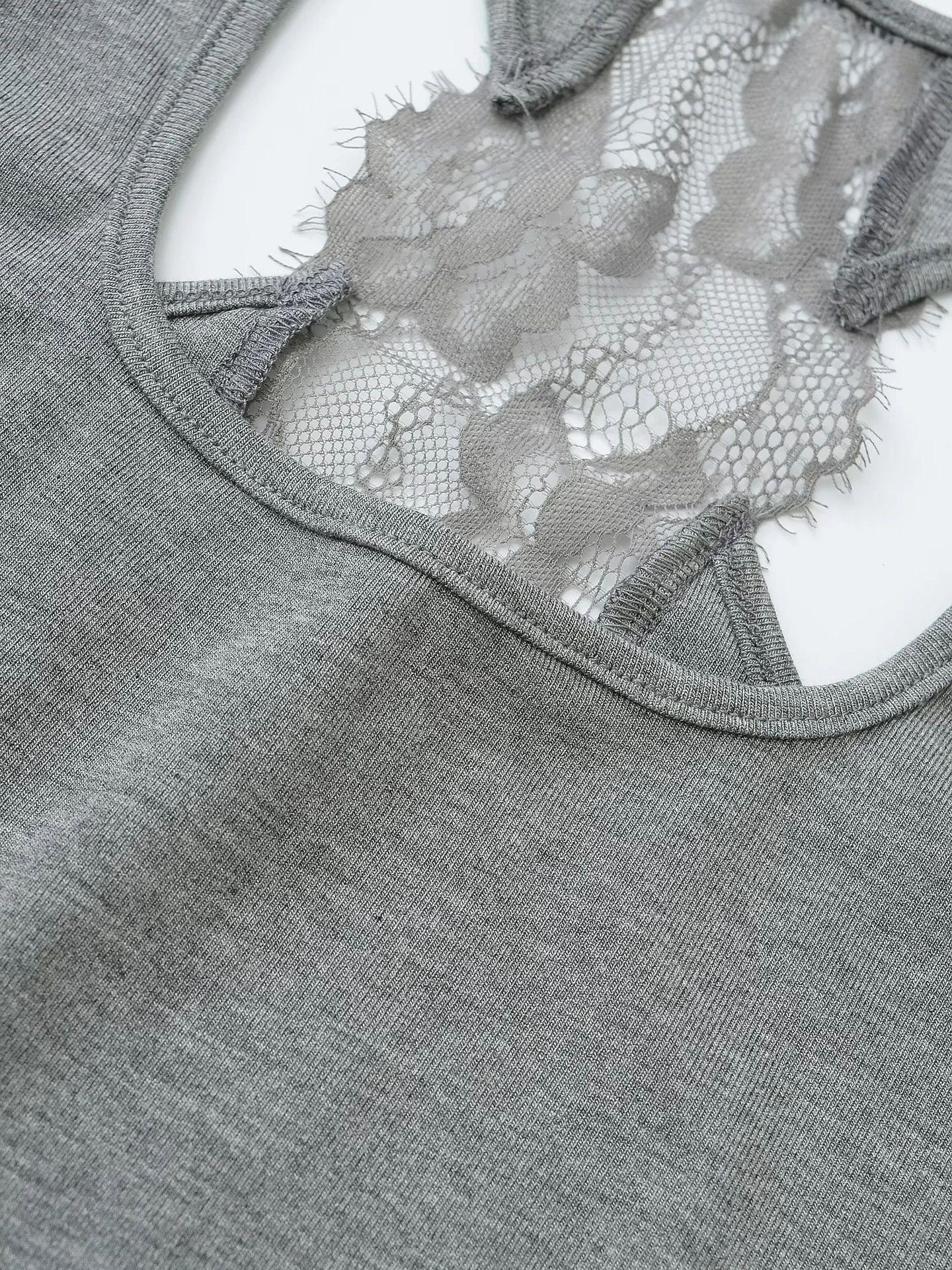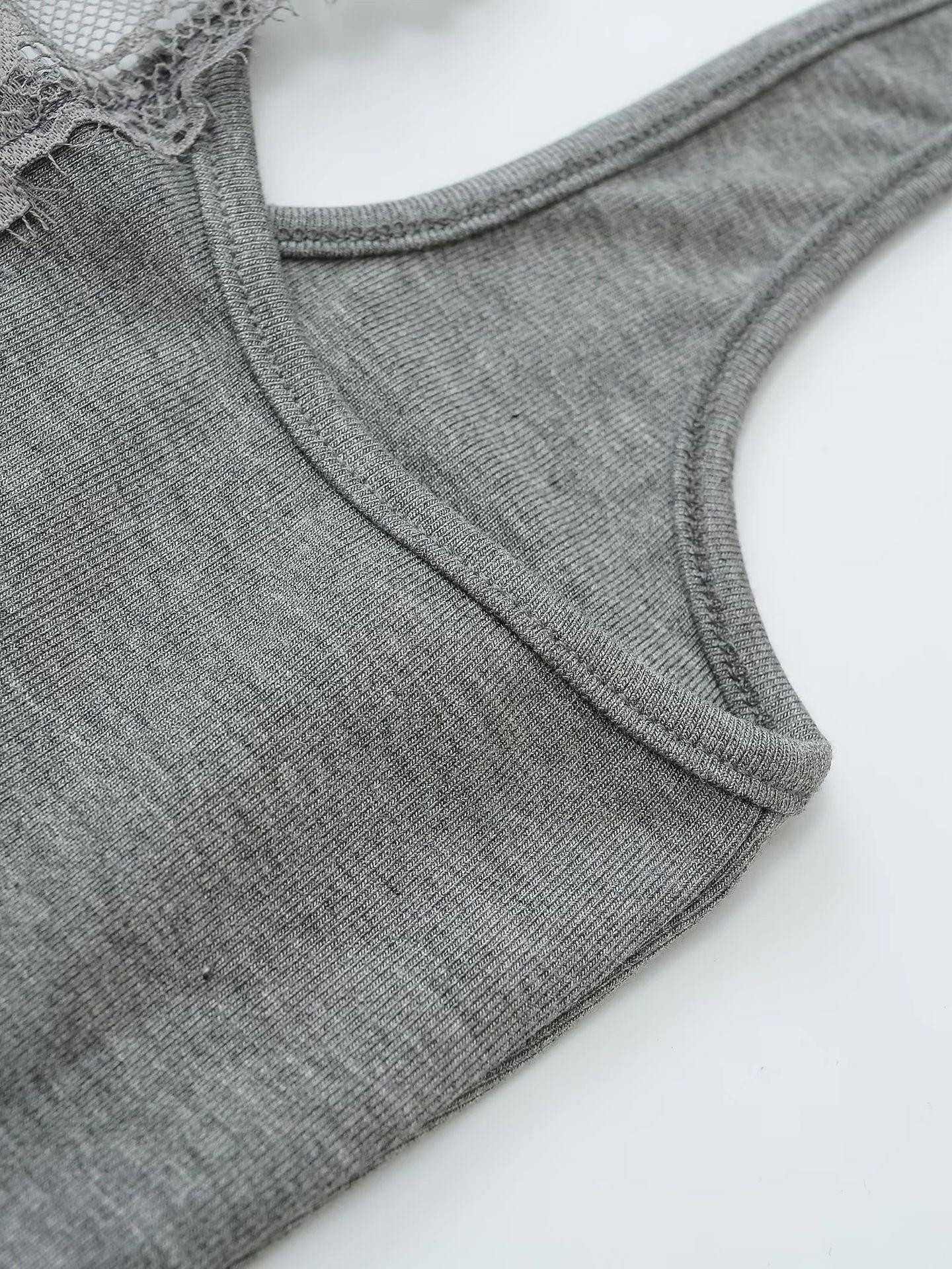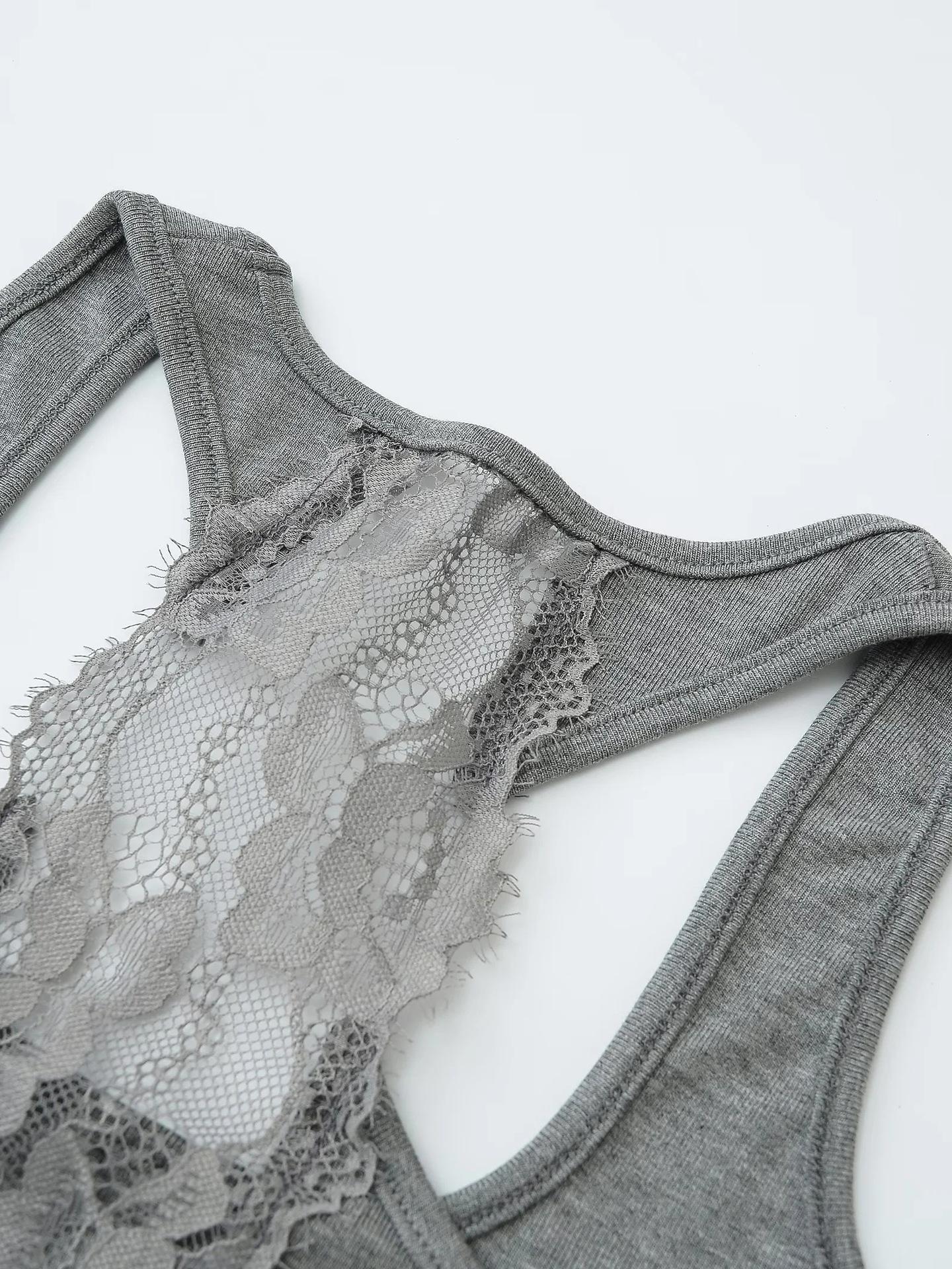 Chaleco sexy estilo americano con cuello cuadrado y espalda descubierta para mujer, moda 2025, nuevo top corto con cintura elástica y costuras de encaje