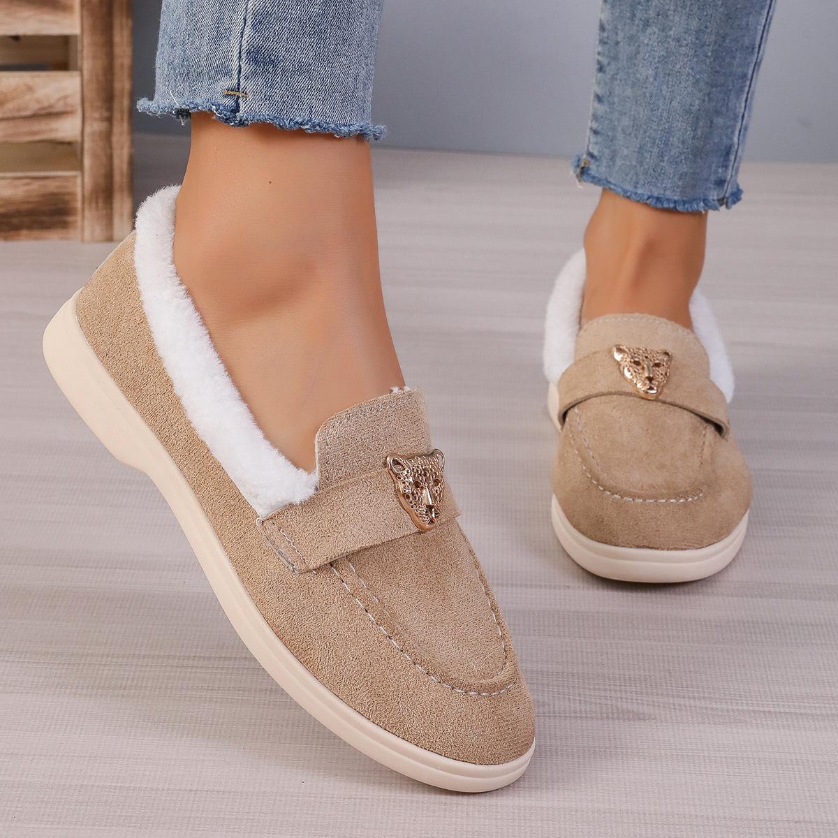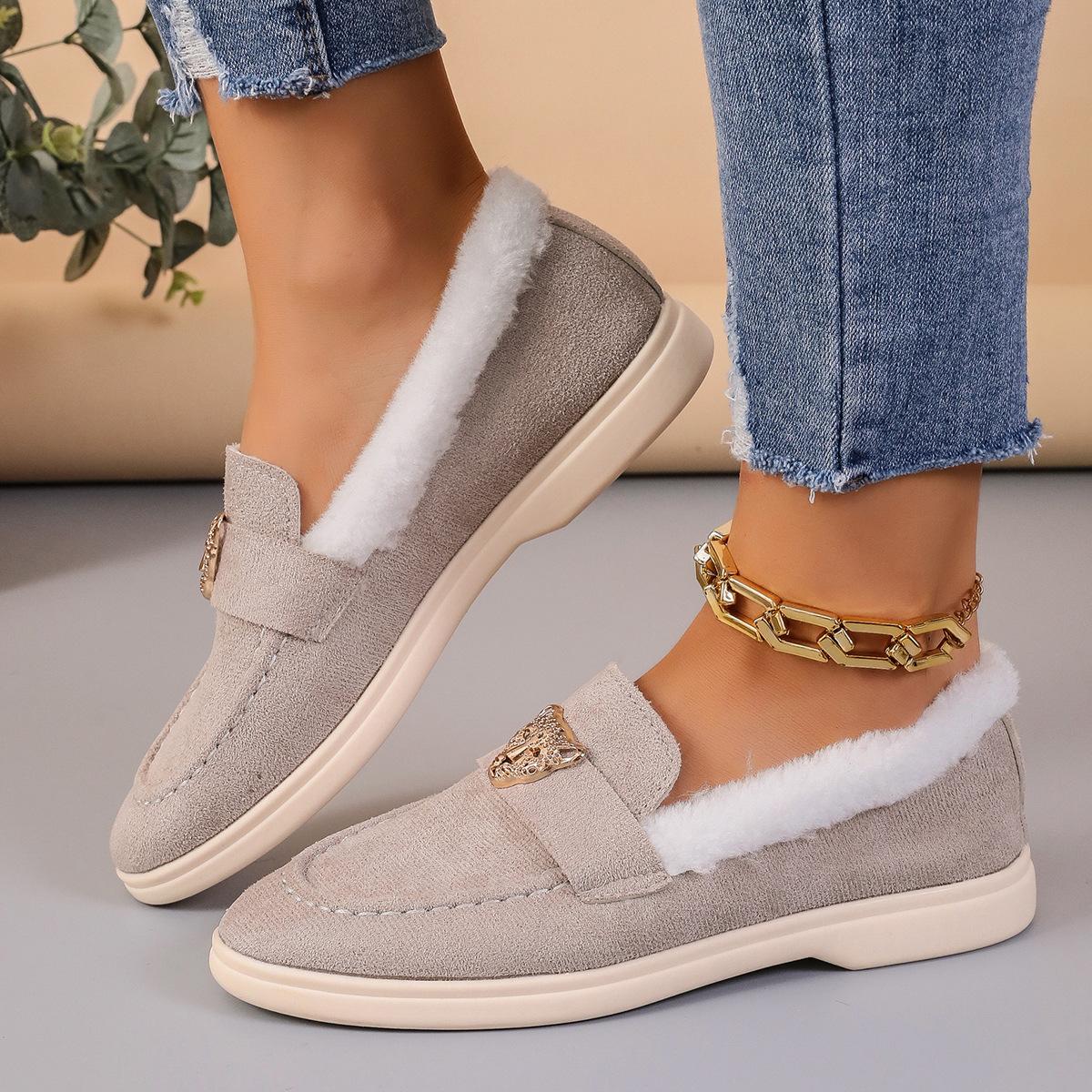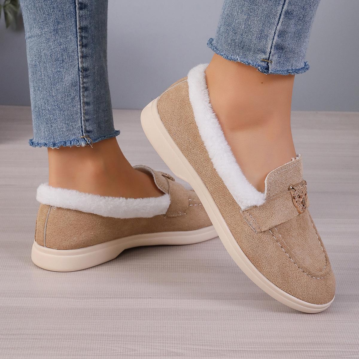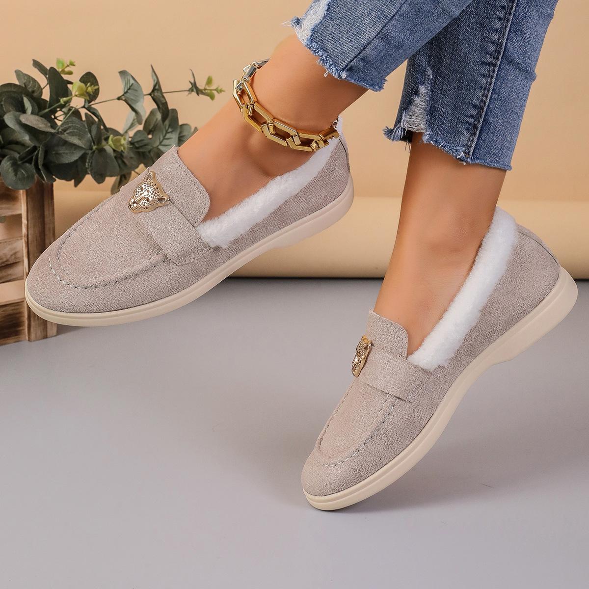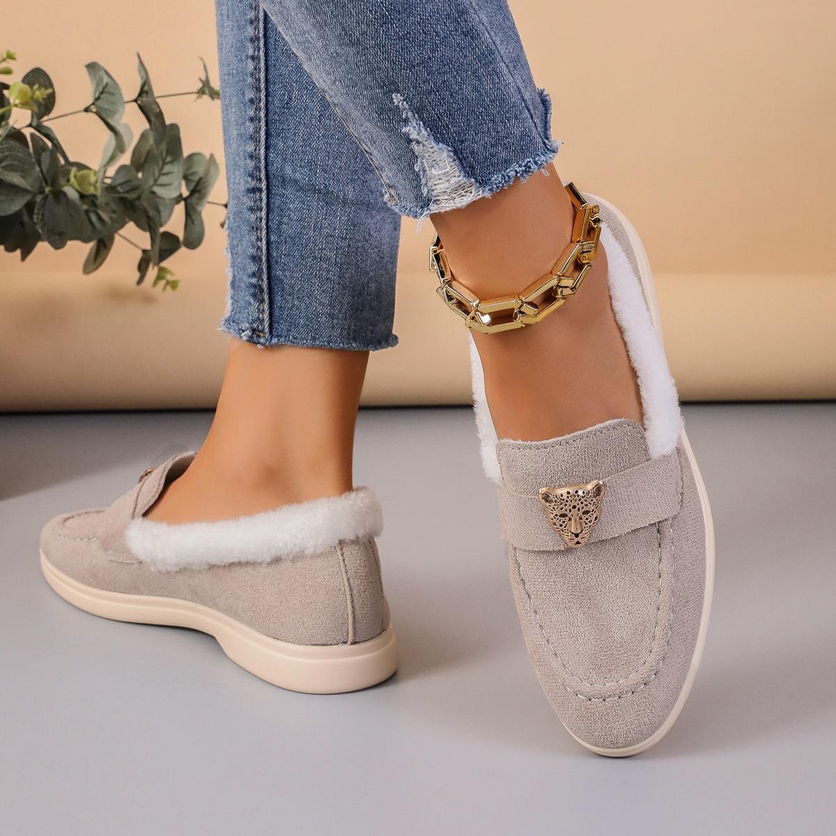 Zapatos de mujer de talla grande europeos y americanos con forro polar 2024 otoño e invierno Nuevos punta redonda planos sin cordones mocasines peludos en stock