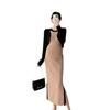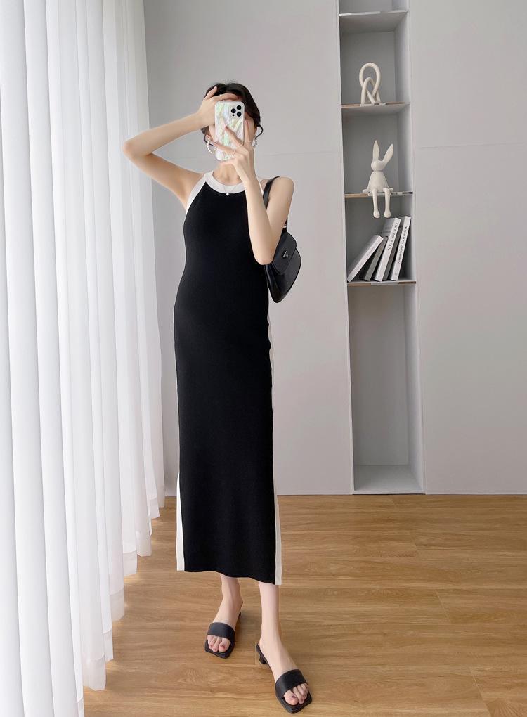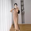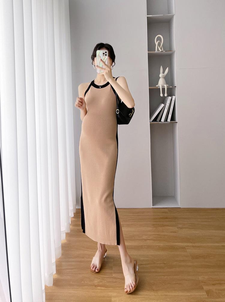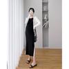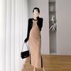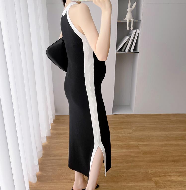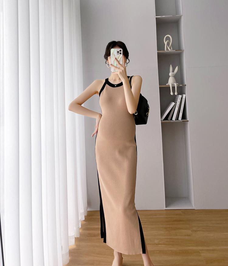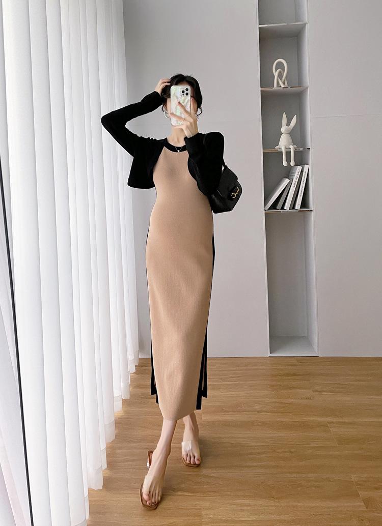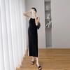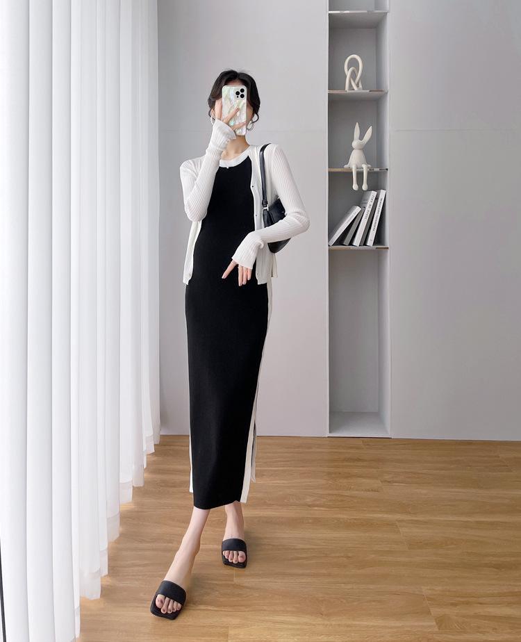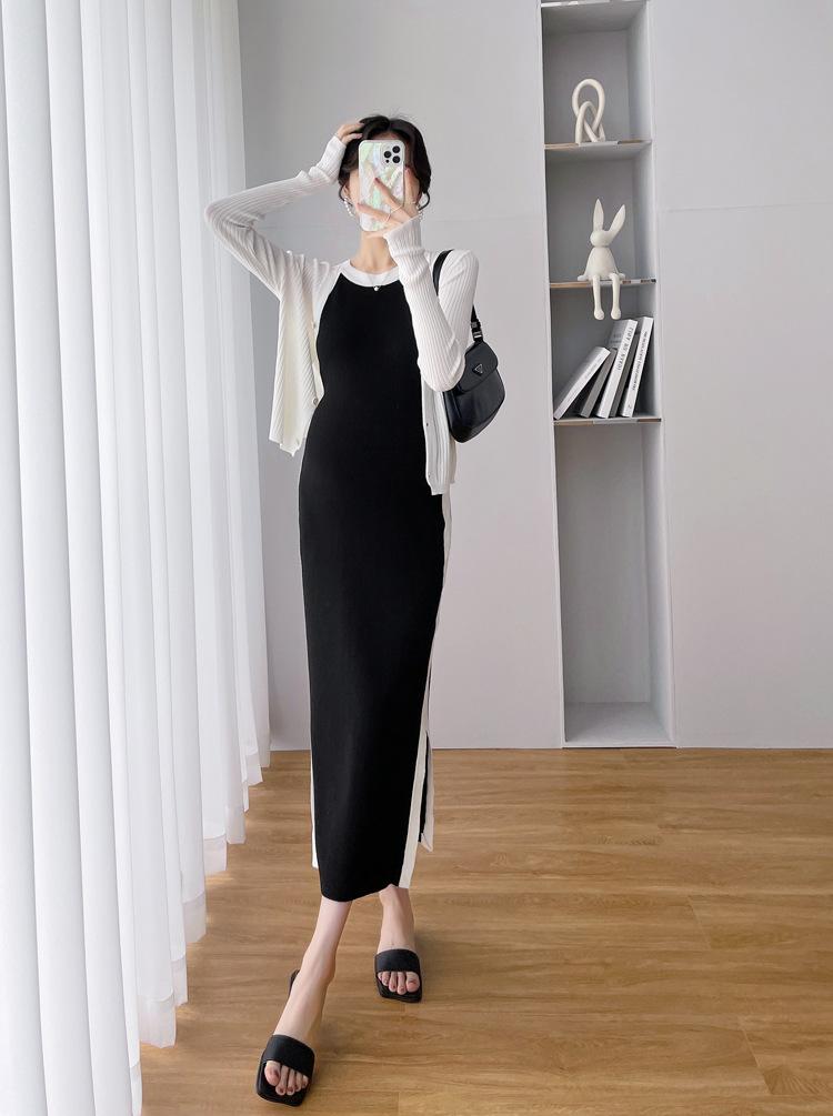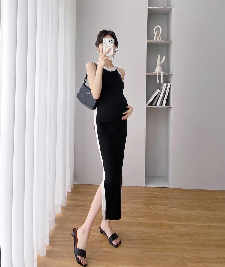 Vestido de maternidad Primavera y Otoño Nuevo elegante elástico tejido Vestido de Seda de Hielo chaleco falda cárdigan conjunto de dos piezas vestido para mujeres embarazadas
