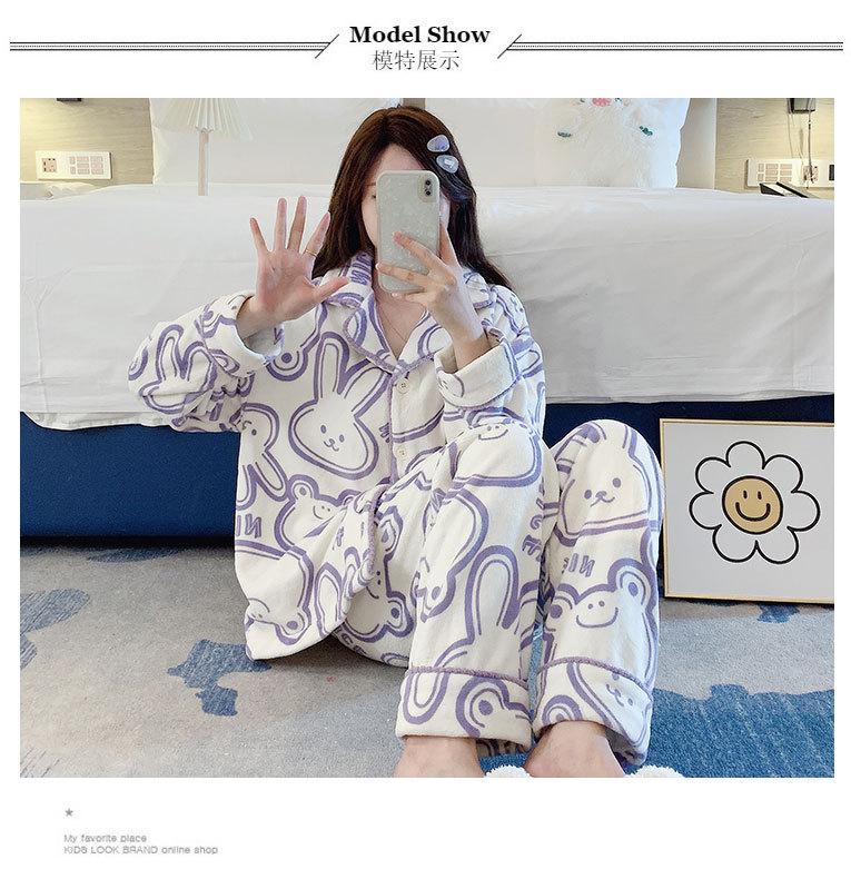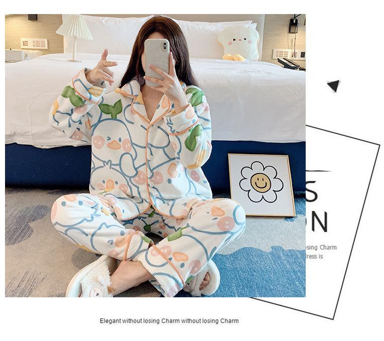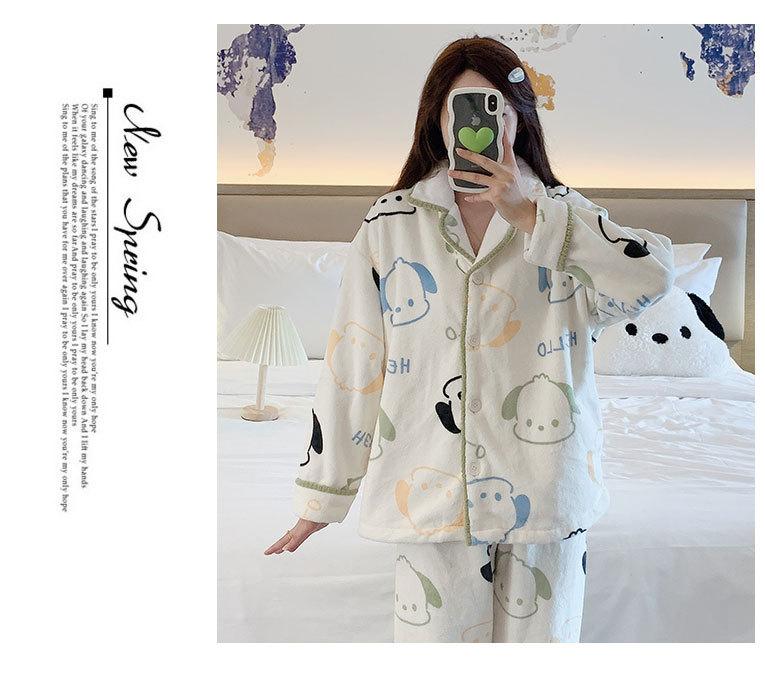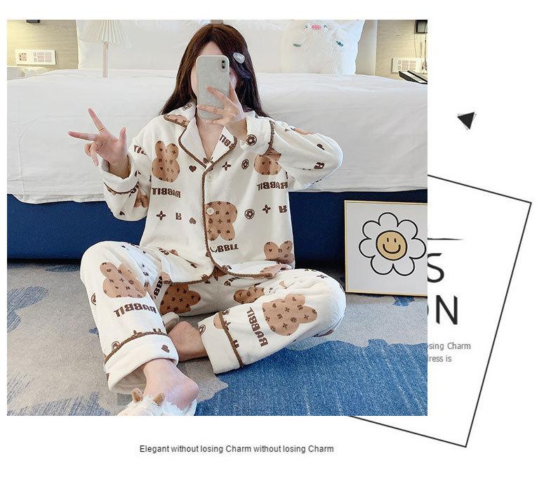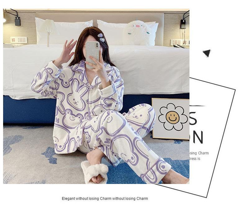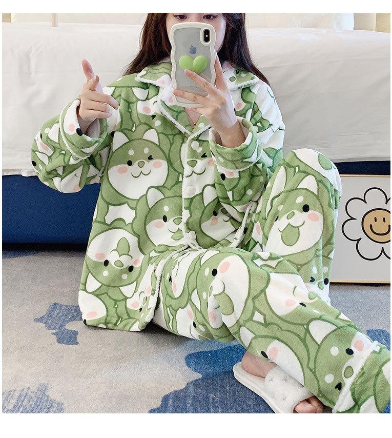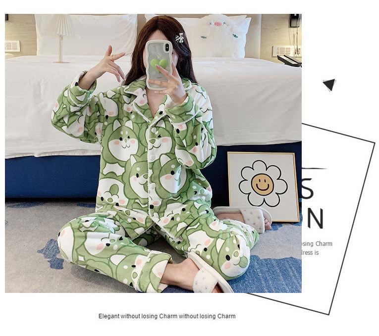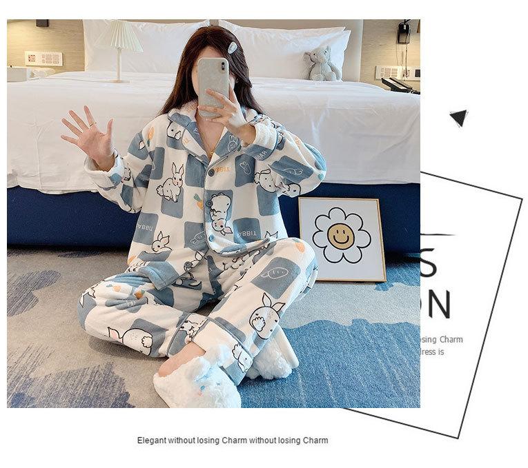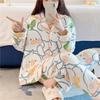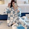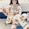 Pijama de otoño e invierno para mujer, cárdigan de franela con solapa, dulce y lindo dibujo animado, forro polar grueso, cálido, para el hogar