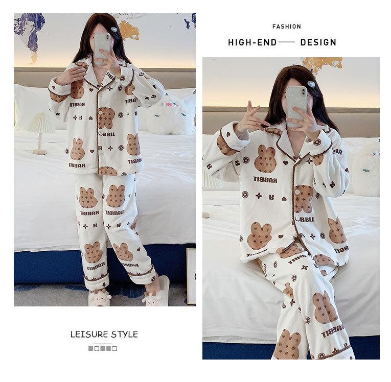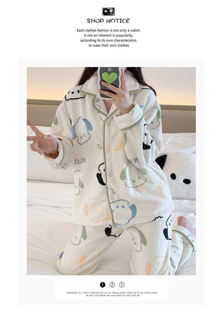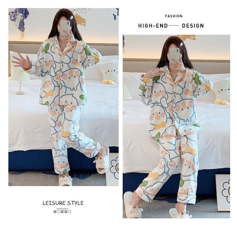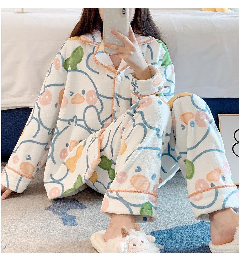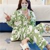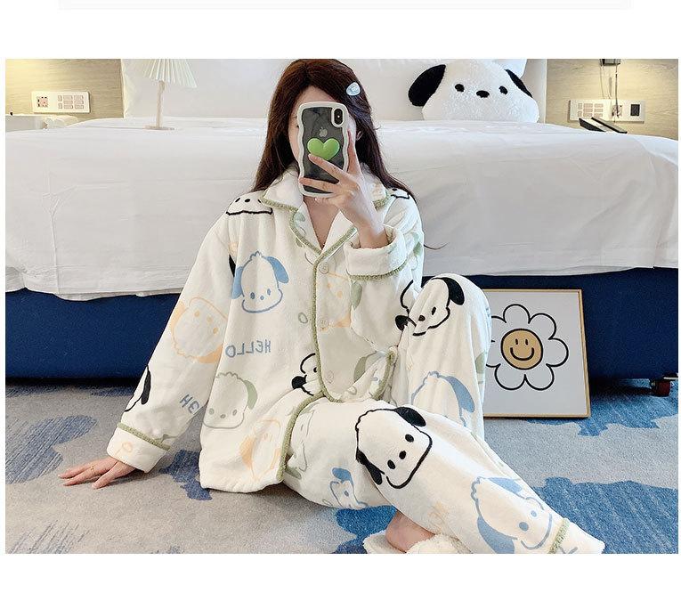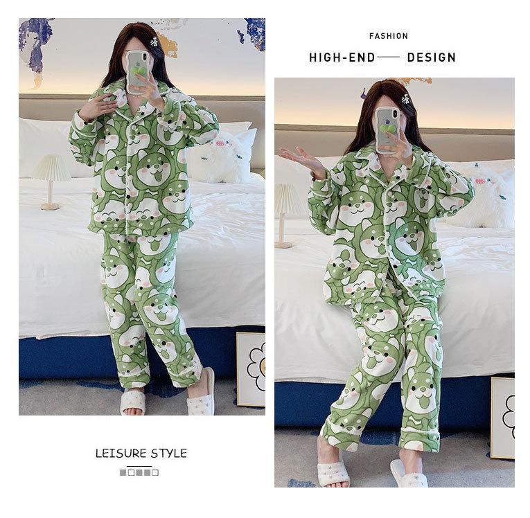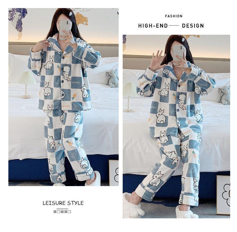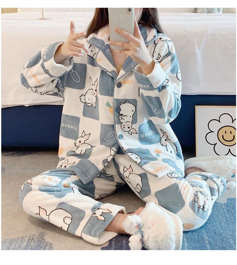 Pijama de otoño e invierno para mujer, cárdigan de franela con solapa, dulce y lindo dibujo animado, forro polar grueso, cálido, para el hogar