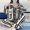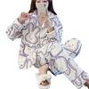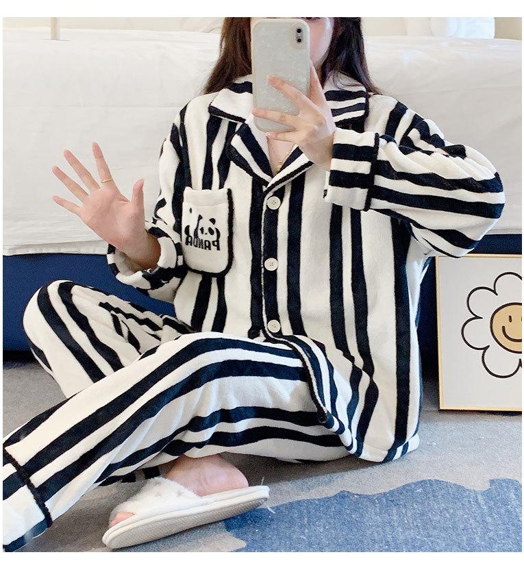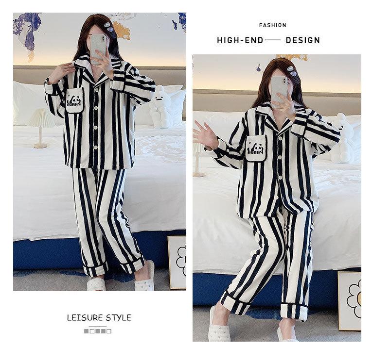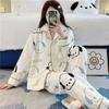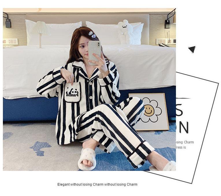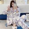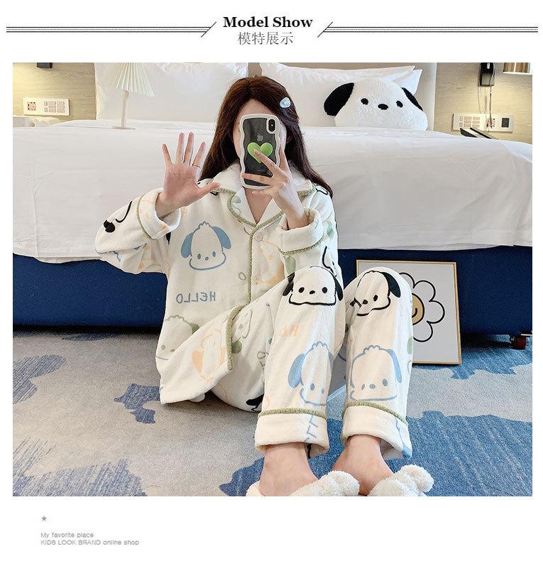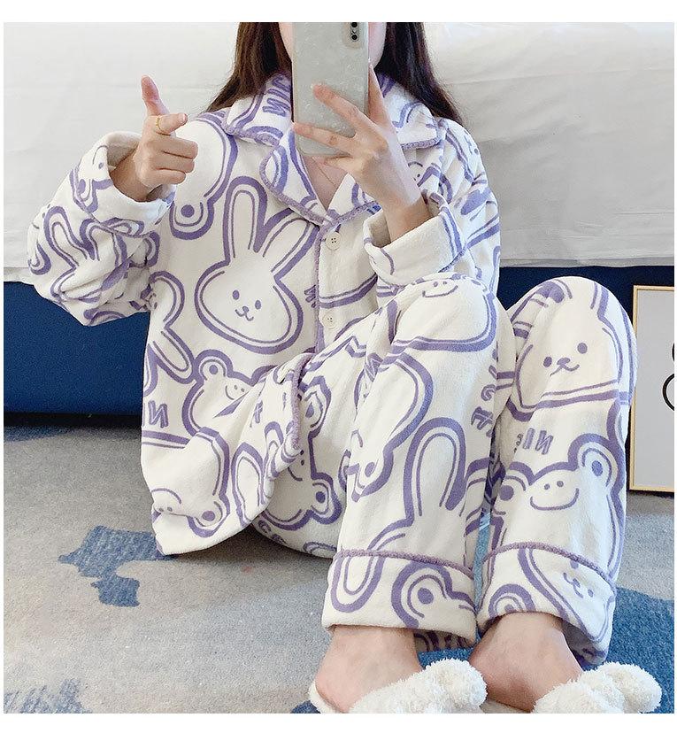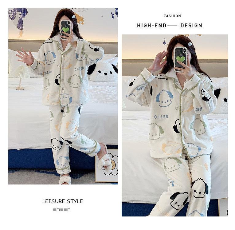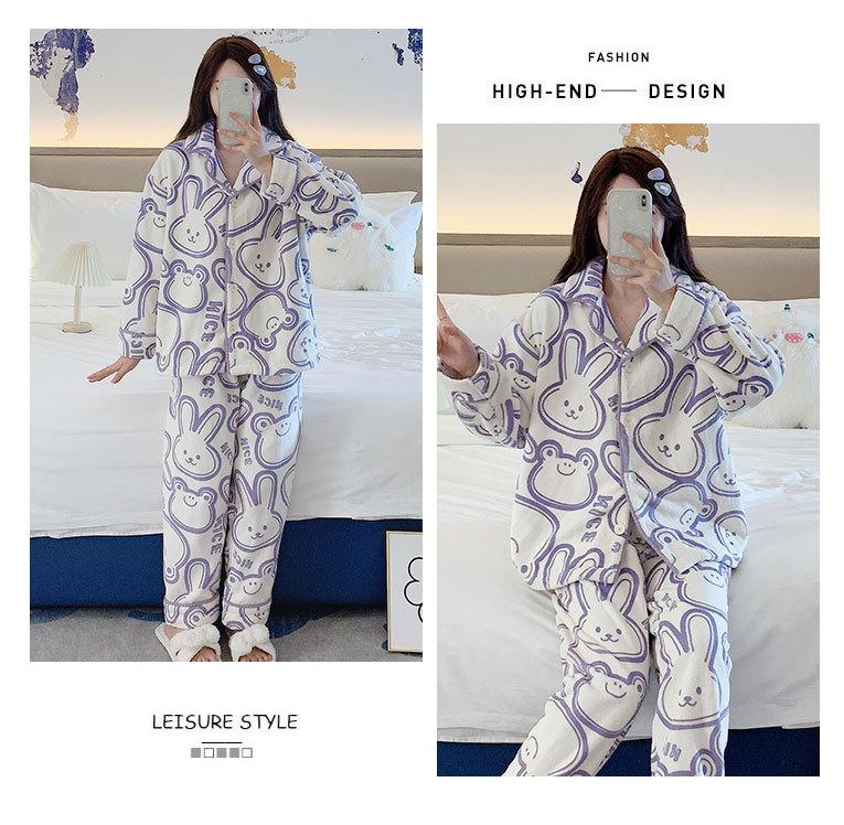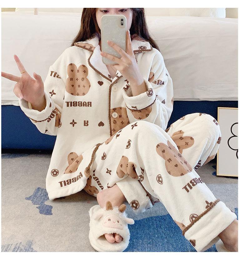 Pijama de otoño e invierno para mujer, cárdigan de franela con solapa, dulce y lindo dibujo animado, forro polar grueso, cálido, para el hogar