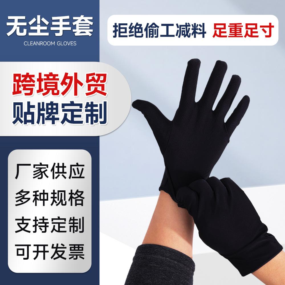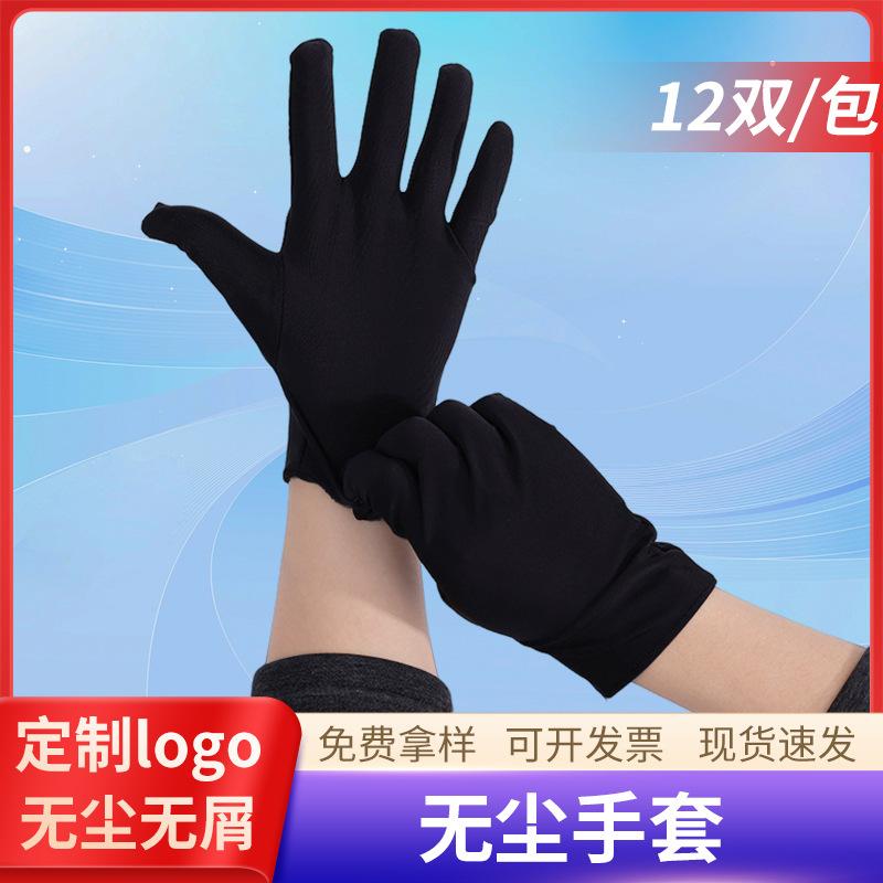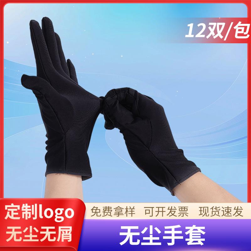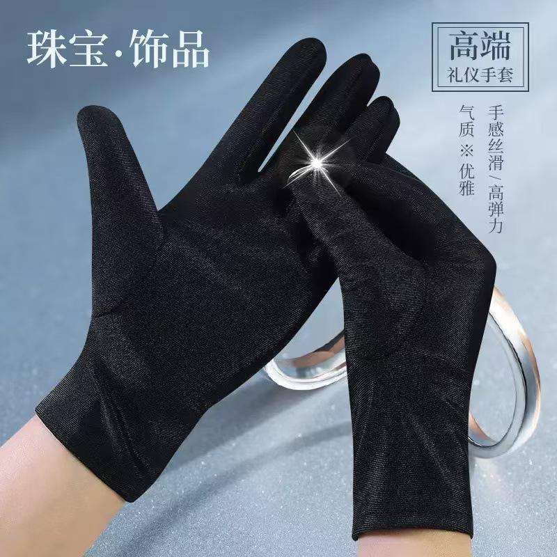 Black dust-free ceremonial jewelry gloves [nylon lycra fabric], Black polyester double-sided gloves