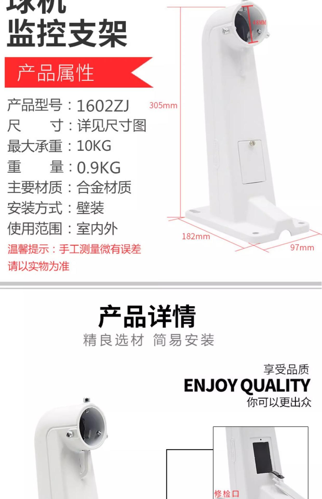 Soporte universal para máquina de bolas de vigilancia para cámara Haikang Dahua con elevación de aro para exteriores DS-1602ZJ montado en la pared