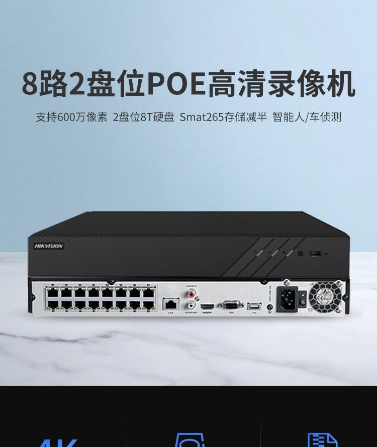Grabador de video en red Hikvision con disco duro, 8 y 16 canales, NVR, host de monitoreo doméstico DS-7808N-Q2/8P